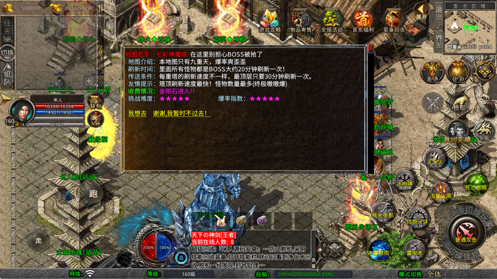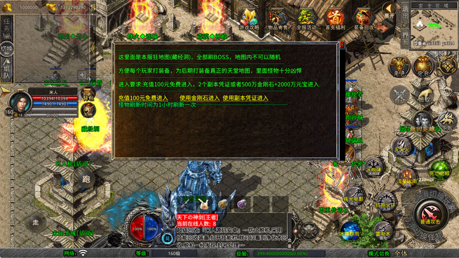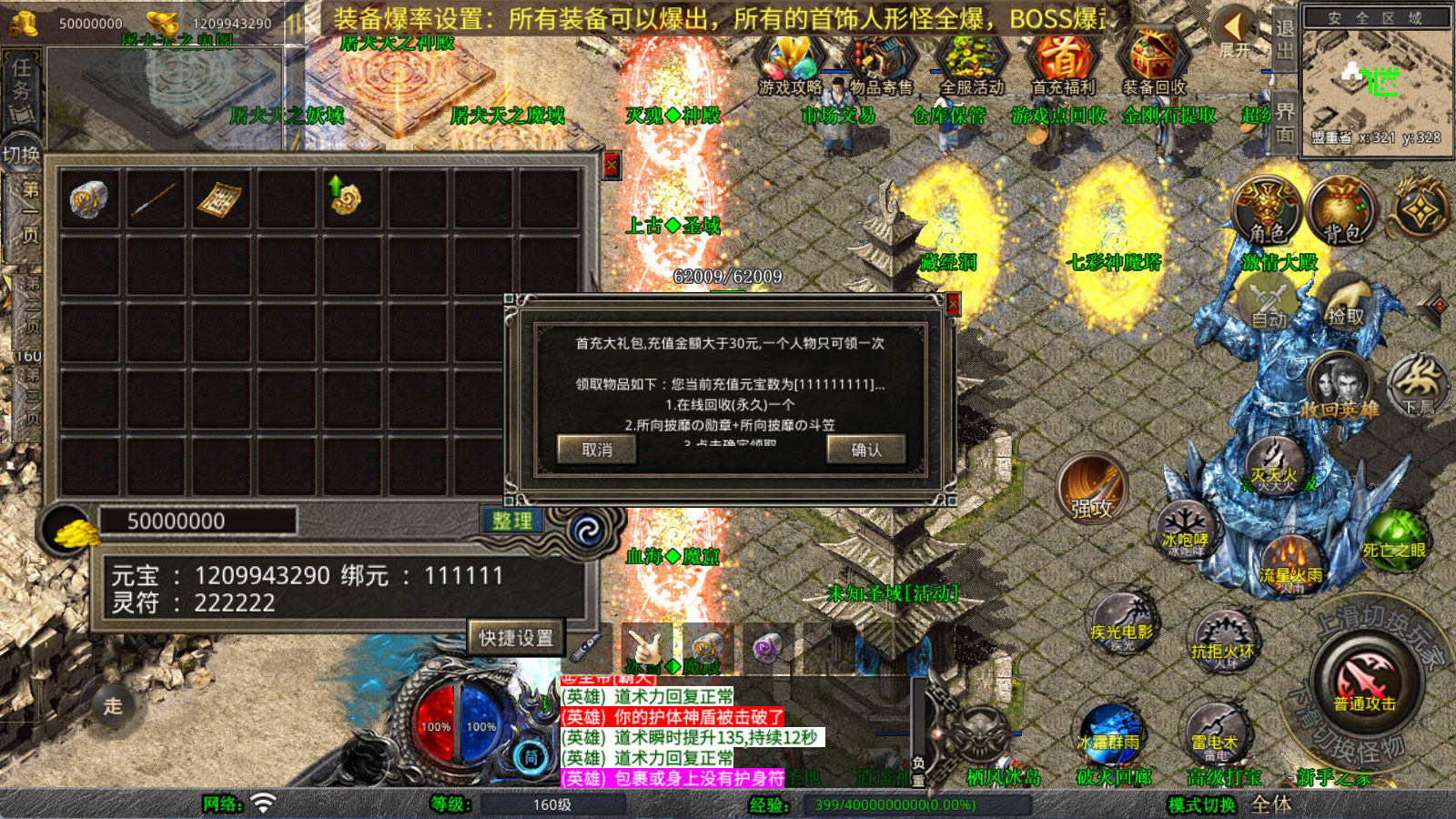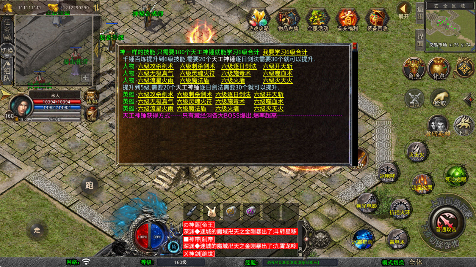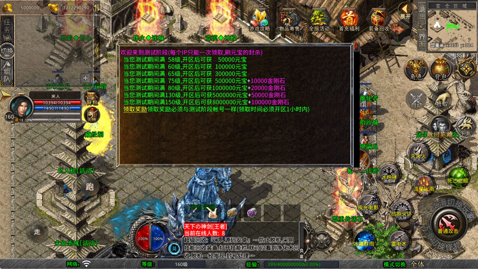下面我们来测试下游戏里的功能看看。好了,其他功能就自行测试吧。更多的游戏资源可以访问www.MiR6.com下载,我们每款游戏资源均单独制作了独立的视频架设教程,让小白也可以快速上手游戏架设,快来体验自己做GM的乐趣吧!