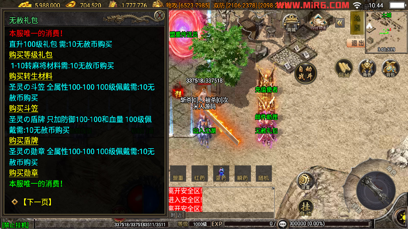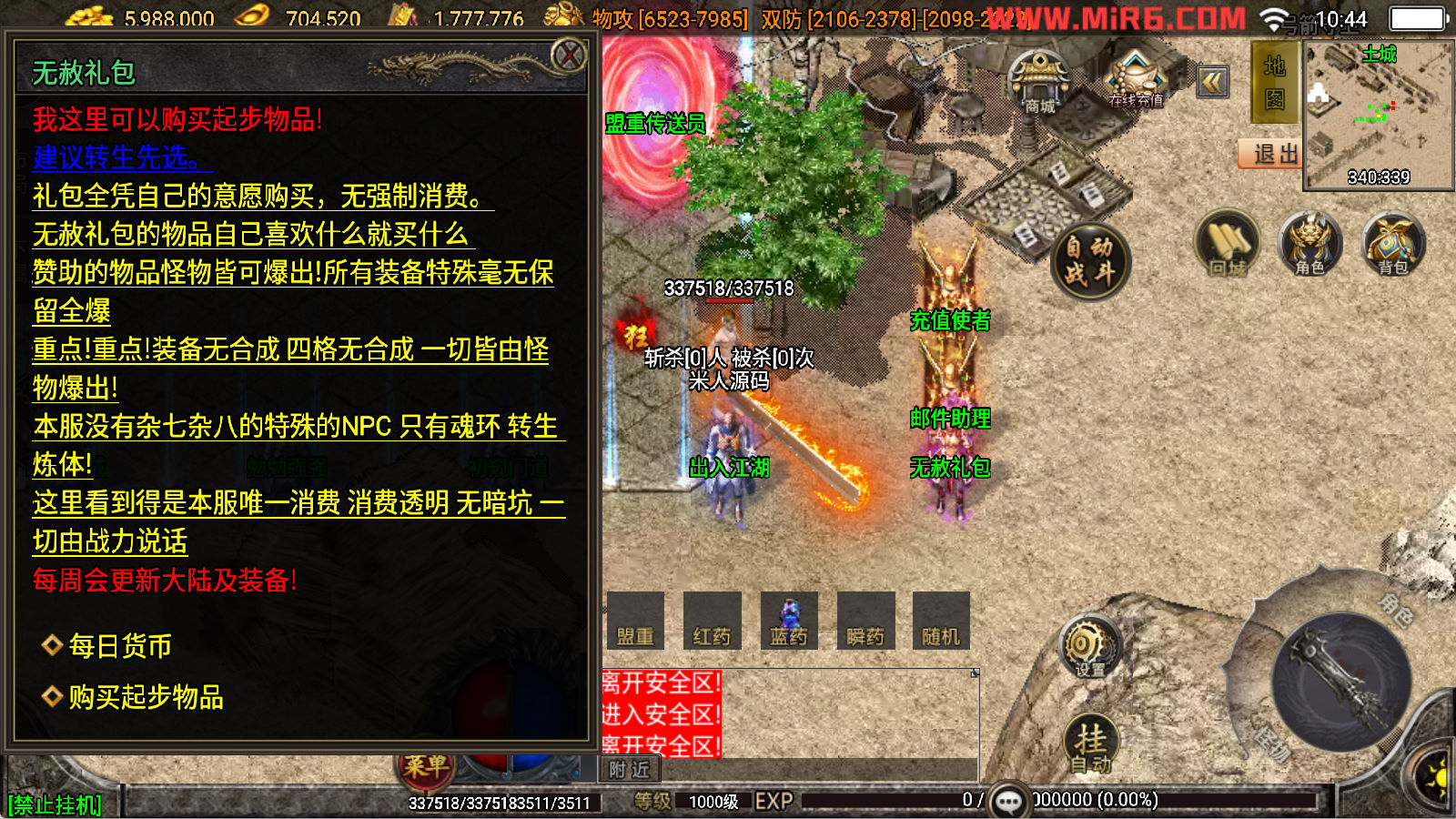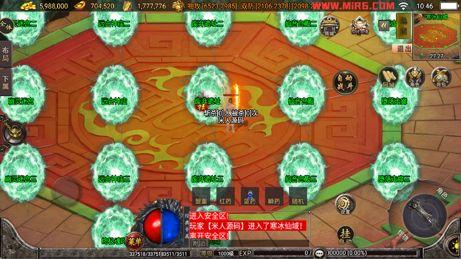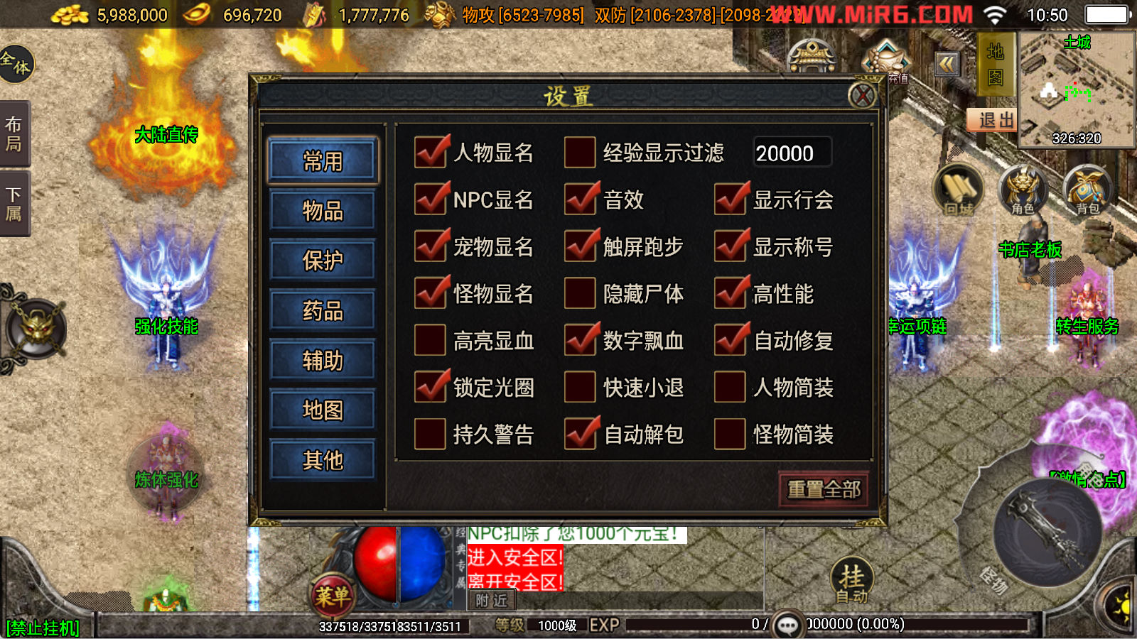 下面我们测试下游戏里的功能看看。好了,其他功能就自行测试吧。更多的游戏资源可以访问www.MiR6.com下载,我们每款游戏资源均单独制作了独立的视频架设教程,让小白也可以快速上手游戏架设,快来体验自己做GM的乐趣吧!
