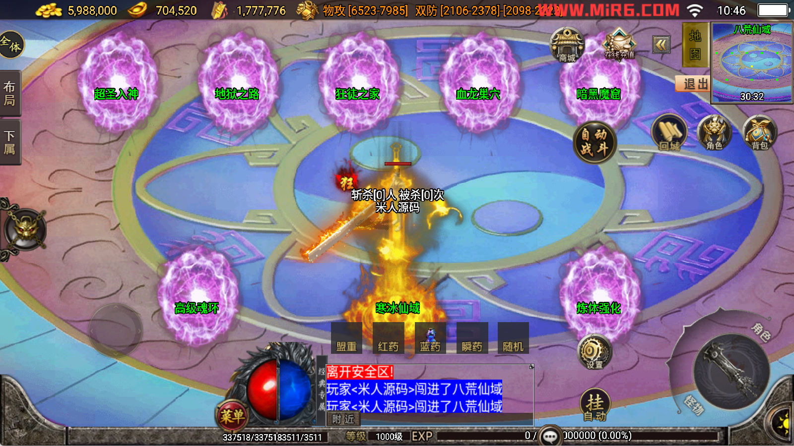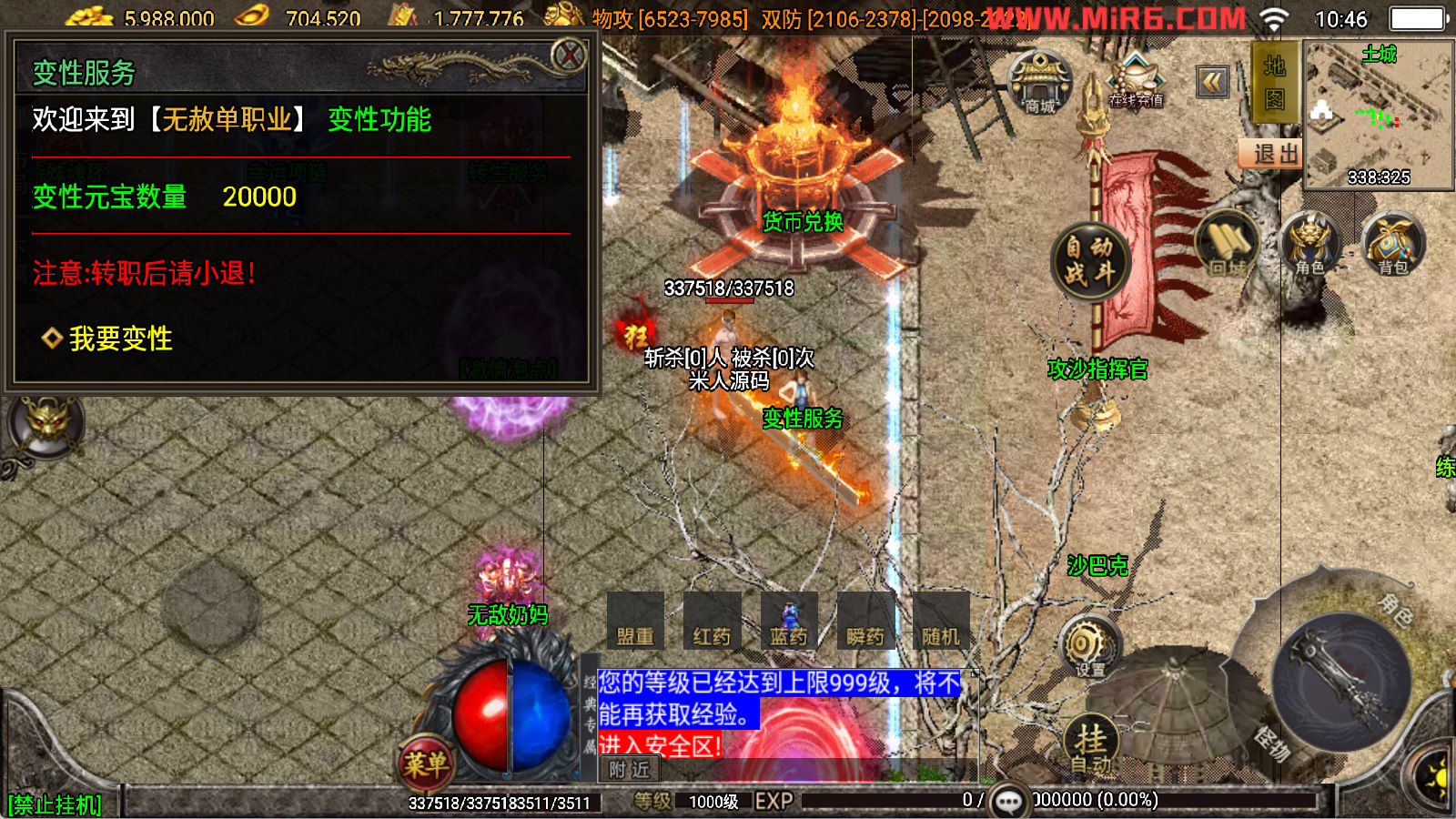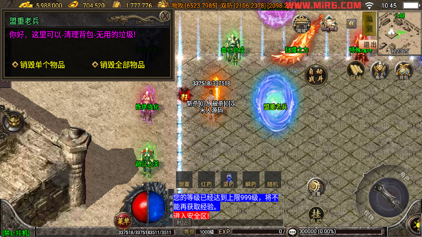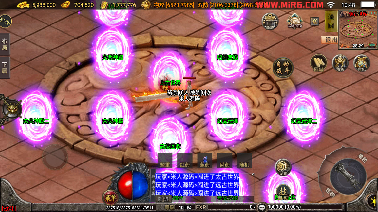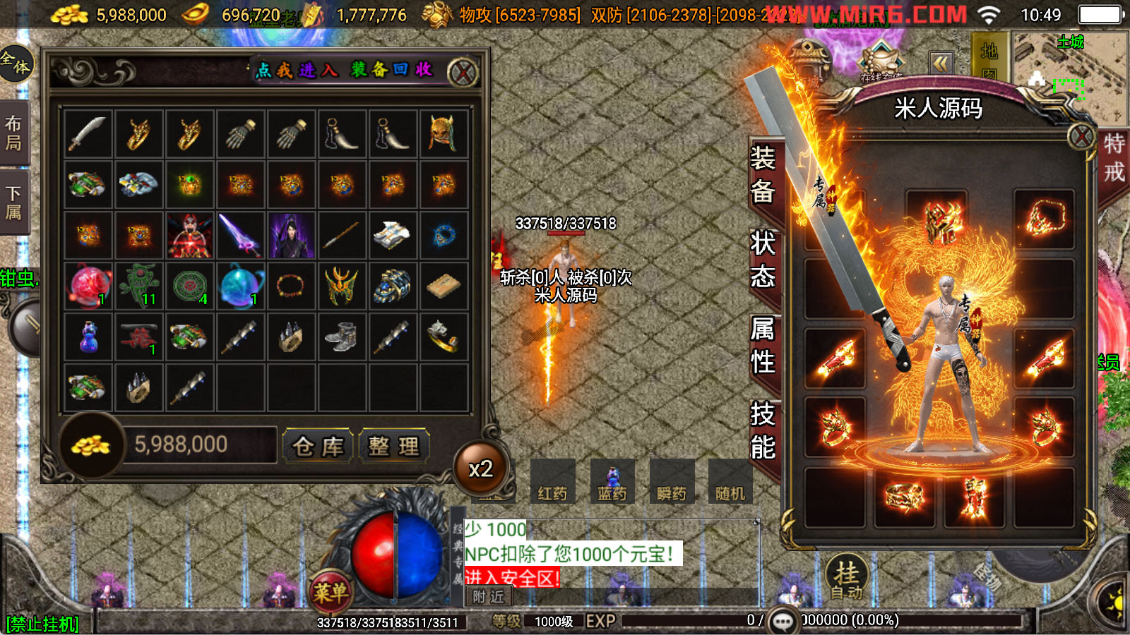 下面我们测试下游戏里的功能看看。好了,其他功能就自行测试吧。更多的游戏资源可以访问www.MiR6.com下载,我们每款游戏资源均单独制作了独立的视频架设教程,让小白也可以快速上手游戏架设,快来体验自己做GM的乐趣吧!