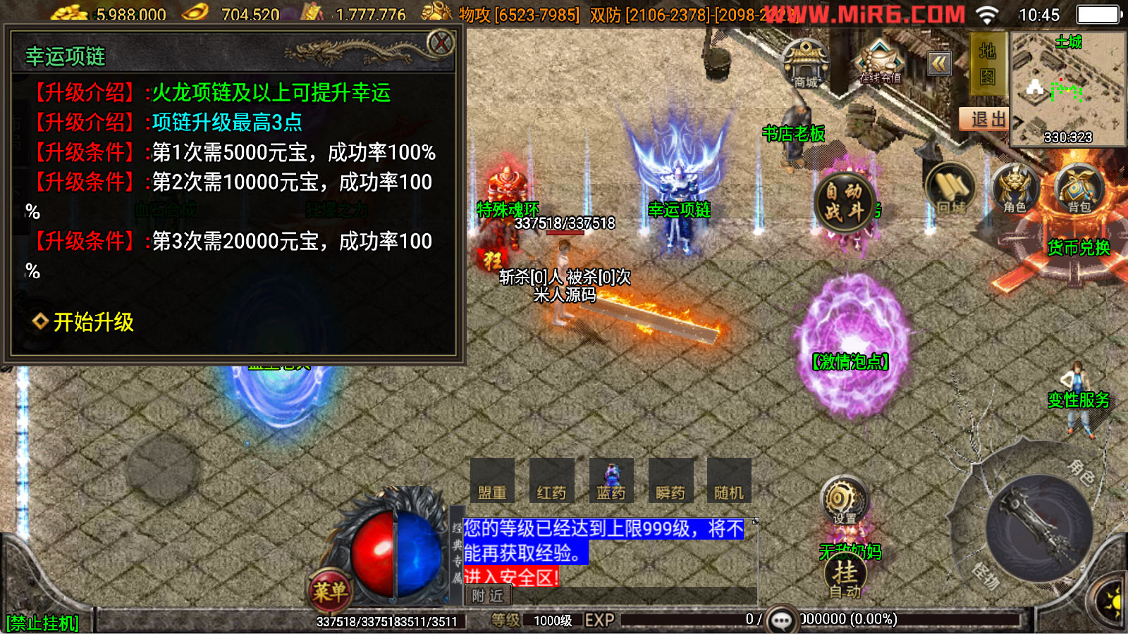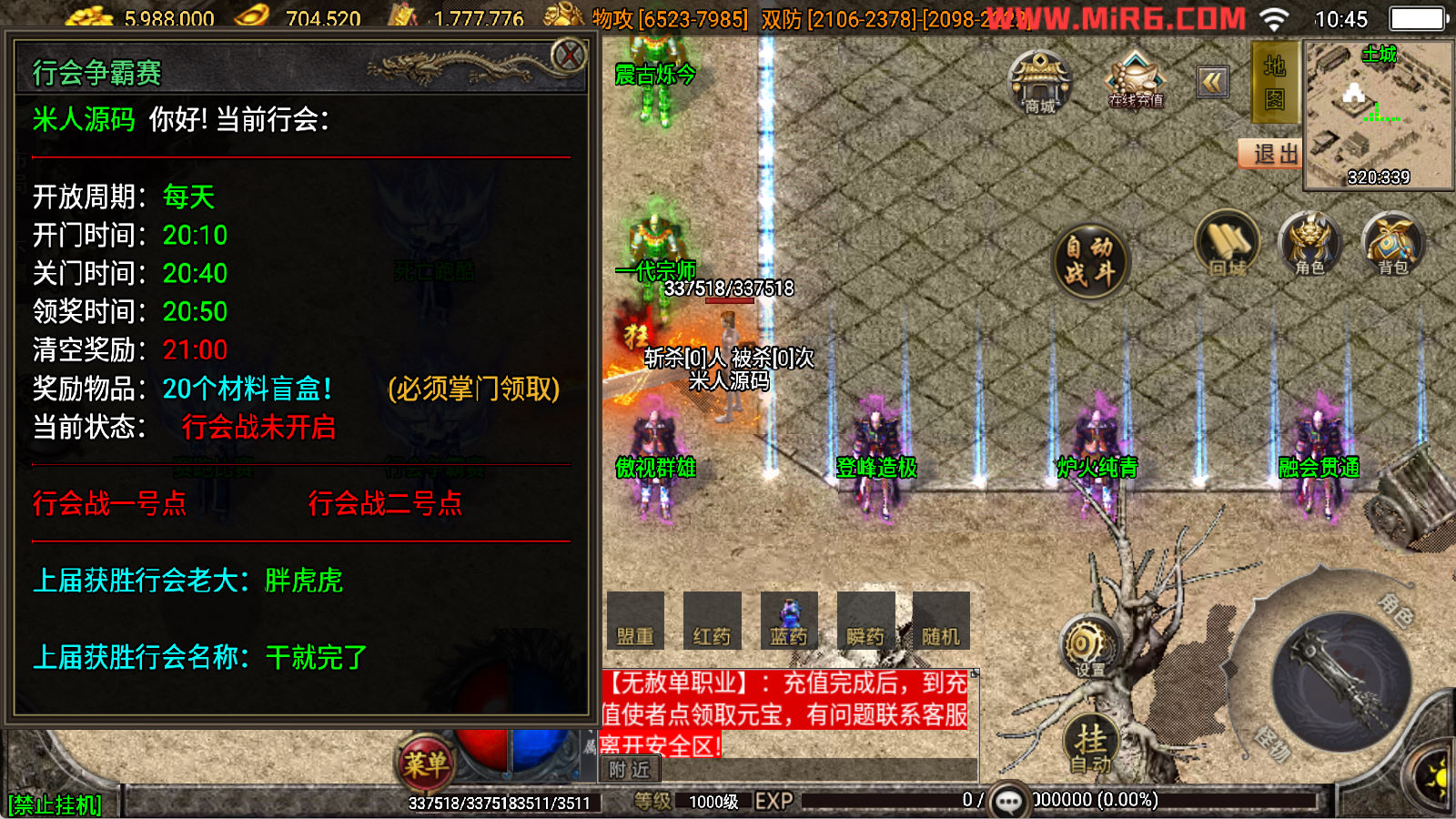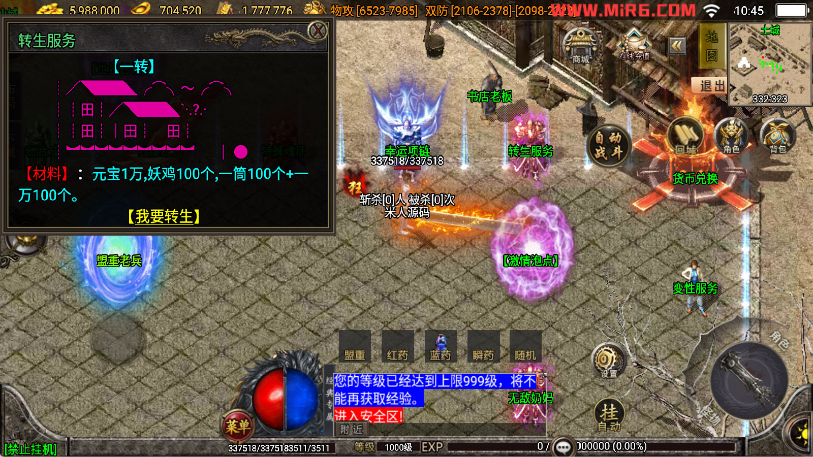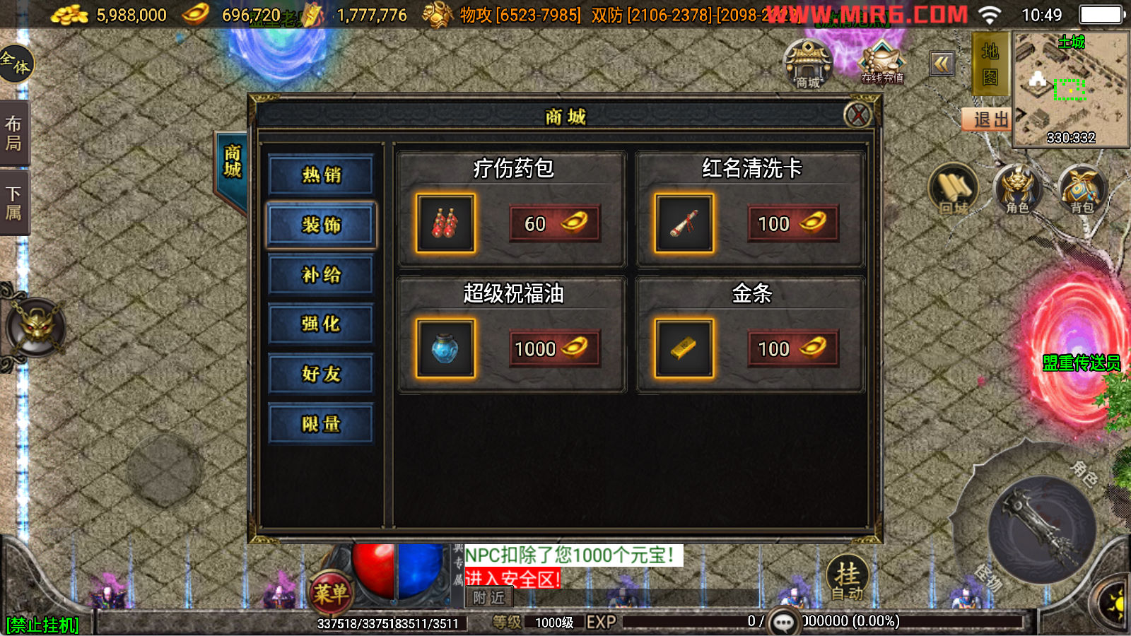 下面我们测试下游戏里的功能看看。好了,其他功能就自行测试吧。更多的游戏资源可以访问www.MiR6.com下载,我们每款游戏资源均单独制作了独立的视频架设教程,让小白也可以快速上手游戏架设,快来体验自己做GM的乐趣吧!