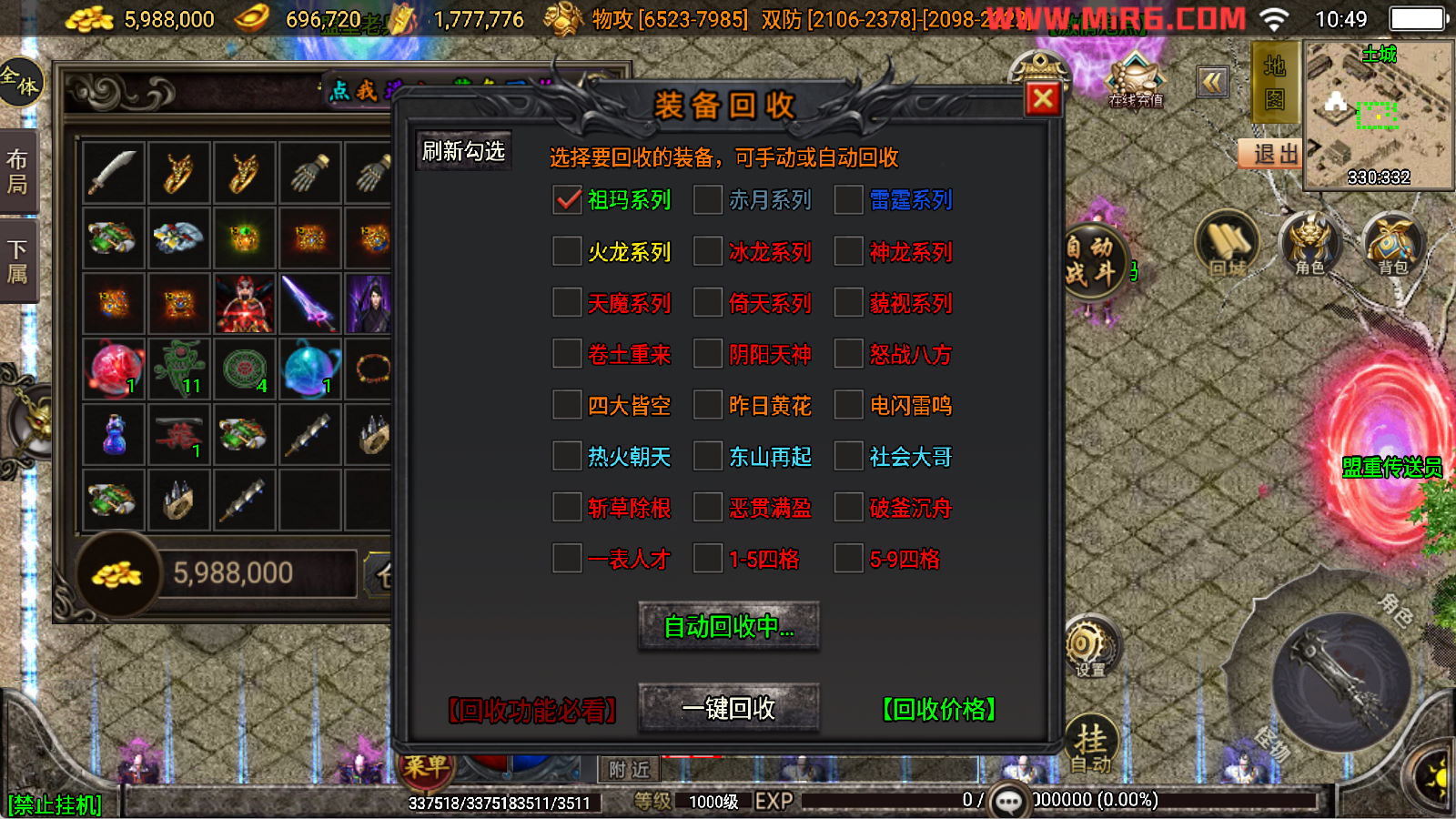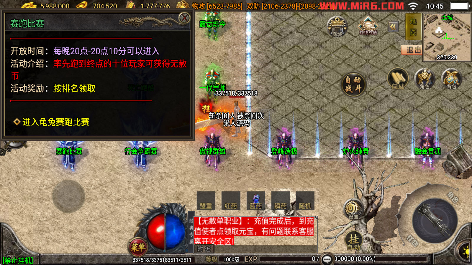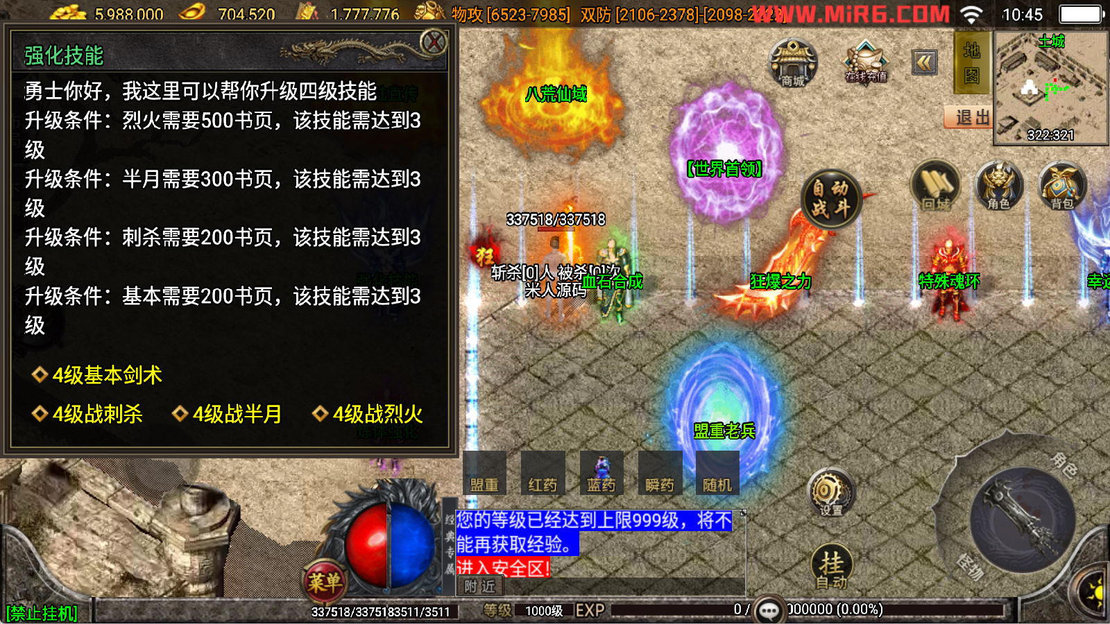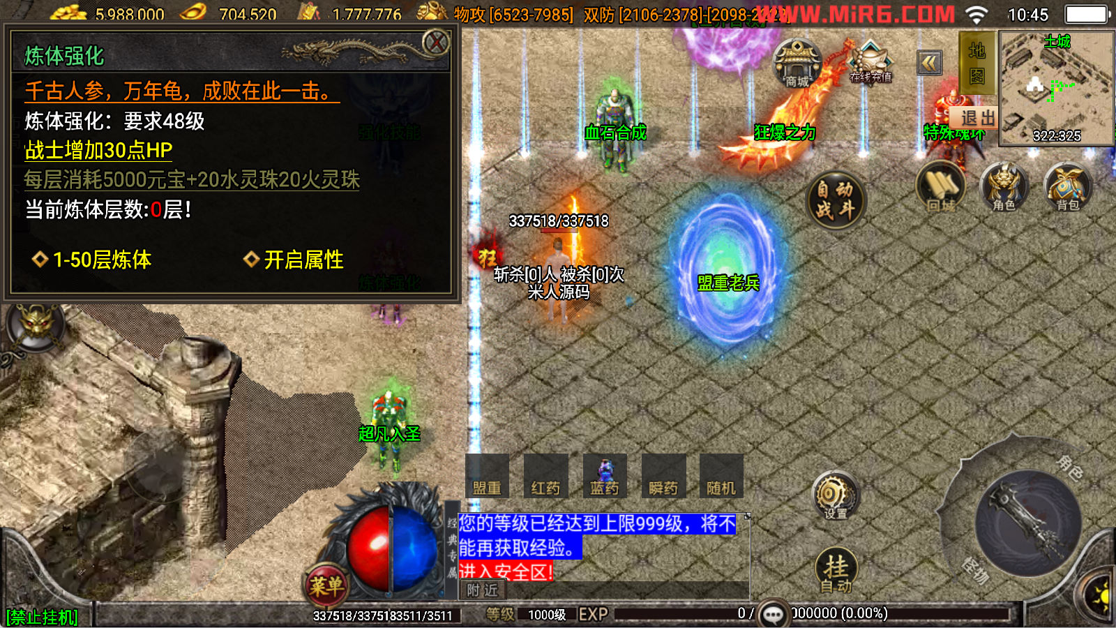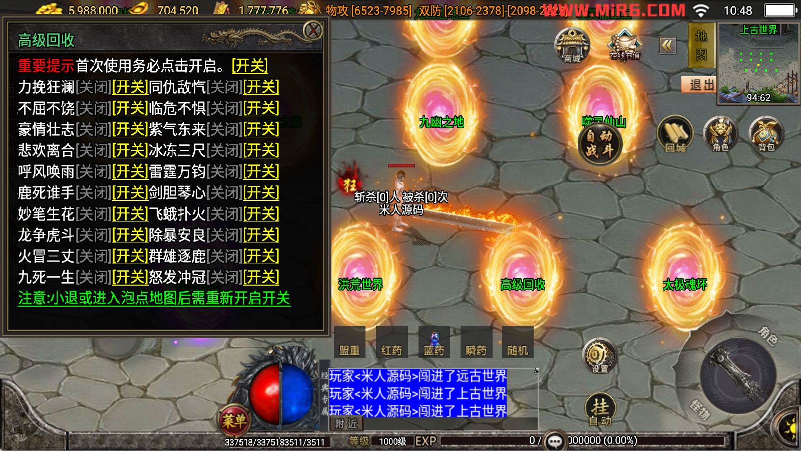 下面我们测试下游戏里的功能看看。好了,其他功能就自行测试吧。更多的游戏资源可以访问www.MiR6.com下载,我们每款游戏资源均单独制作了独立的视频架设教程,让小白也可以快速上手游戏架设,快来体验自己做GM的乐趣吧!