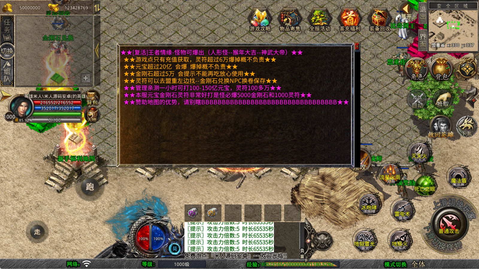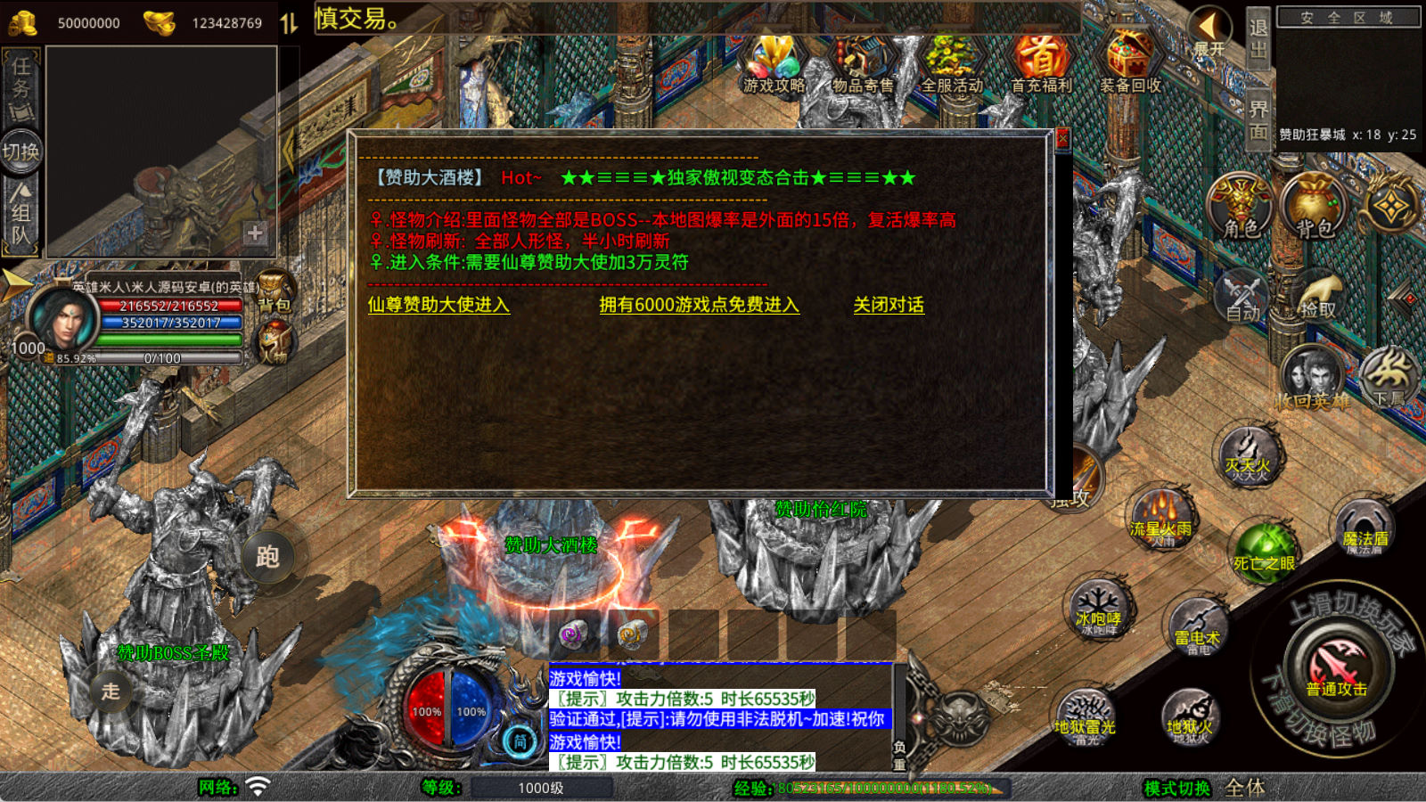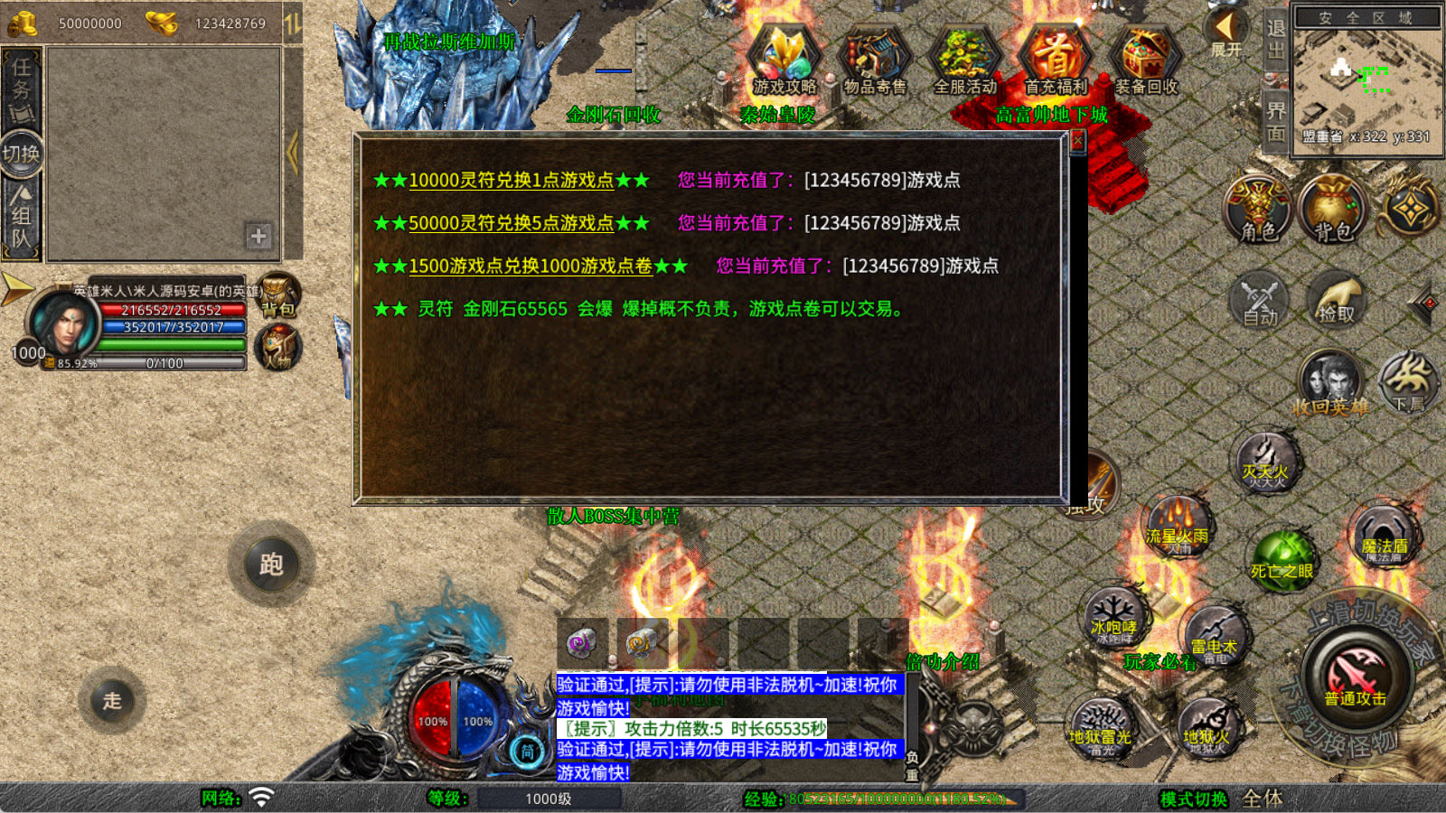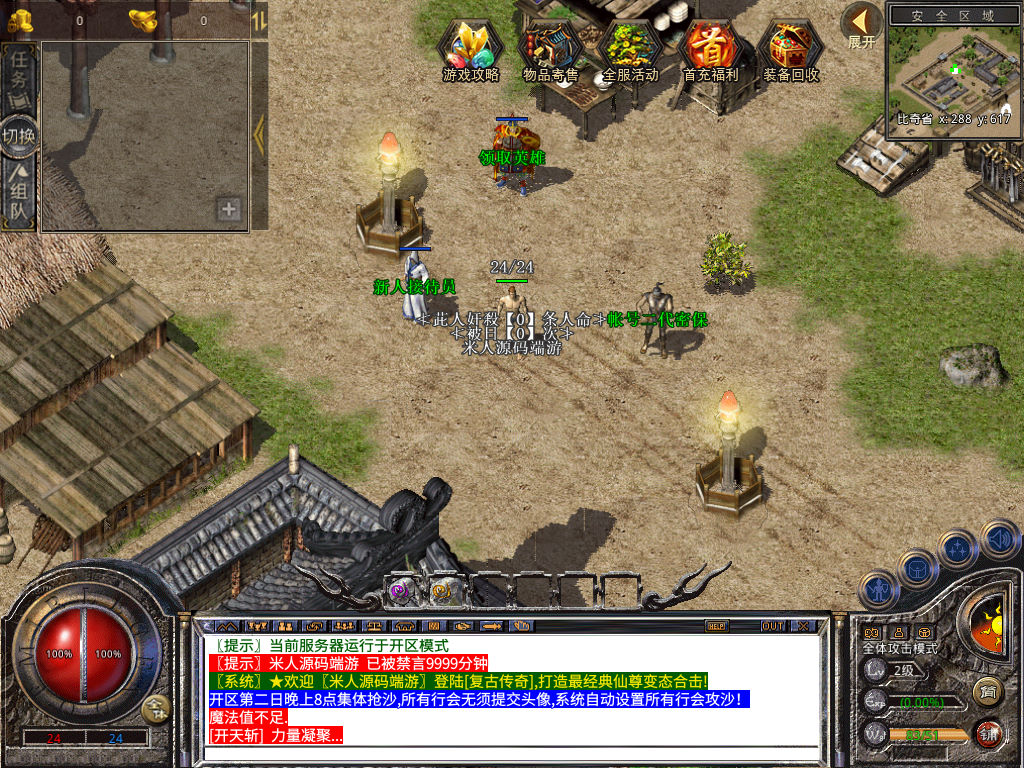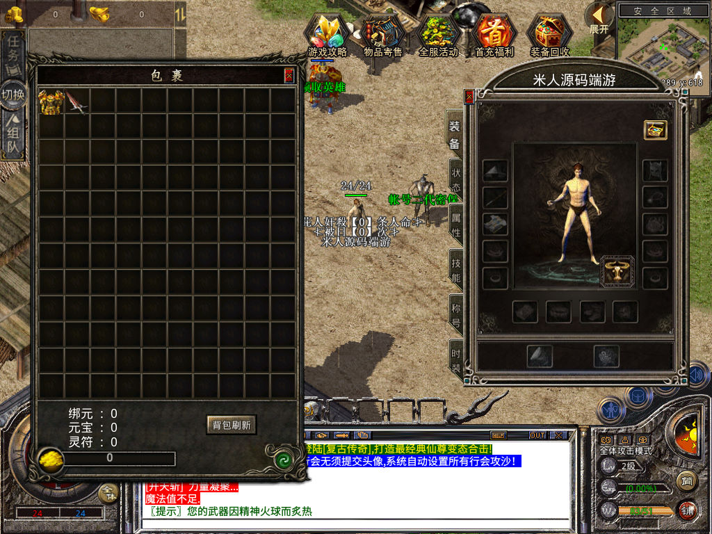 下面我们来测试下游戏里的功能看看。好了,其他功能就自行测试吧。更多的游戏资源可以访问www.MiR6.com下载,我们每款游戏资源均单独制作了独立的视频架设教程,让小白也可以快速上手游戏架设,快来体验自己做GM的乐趣吧!