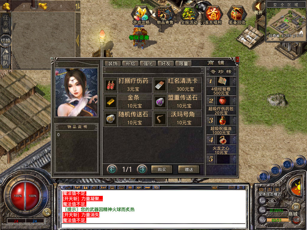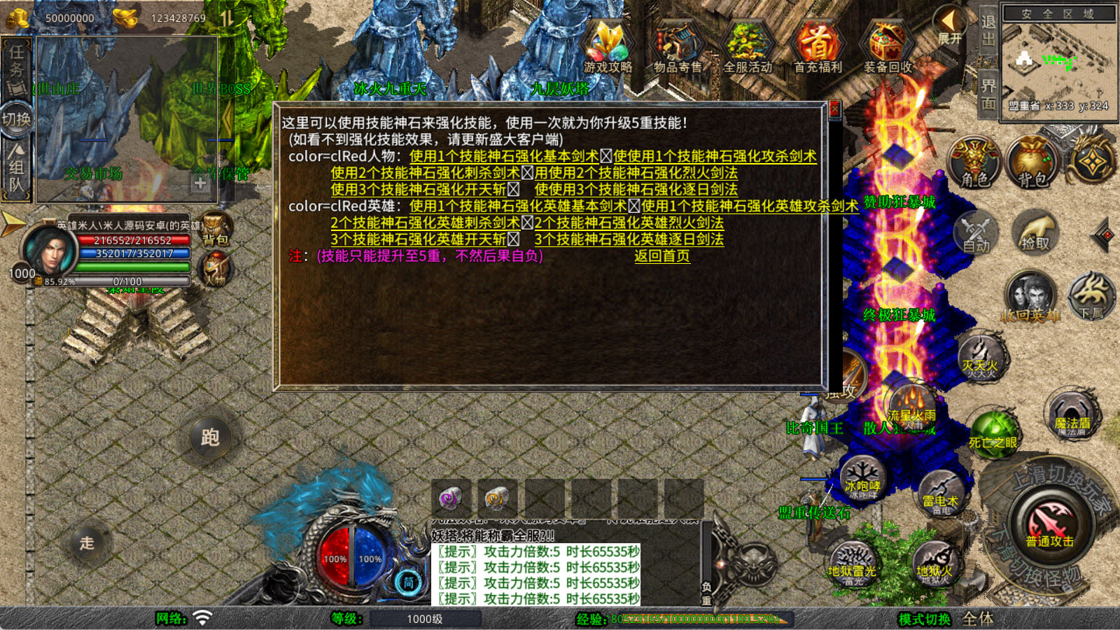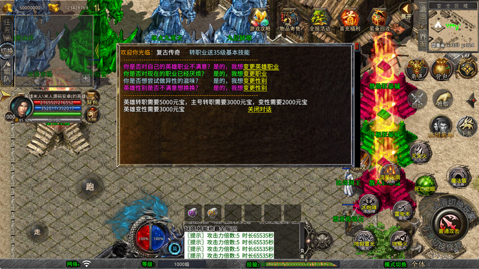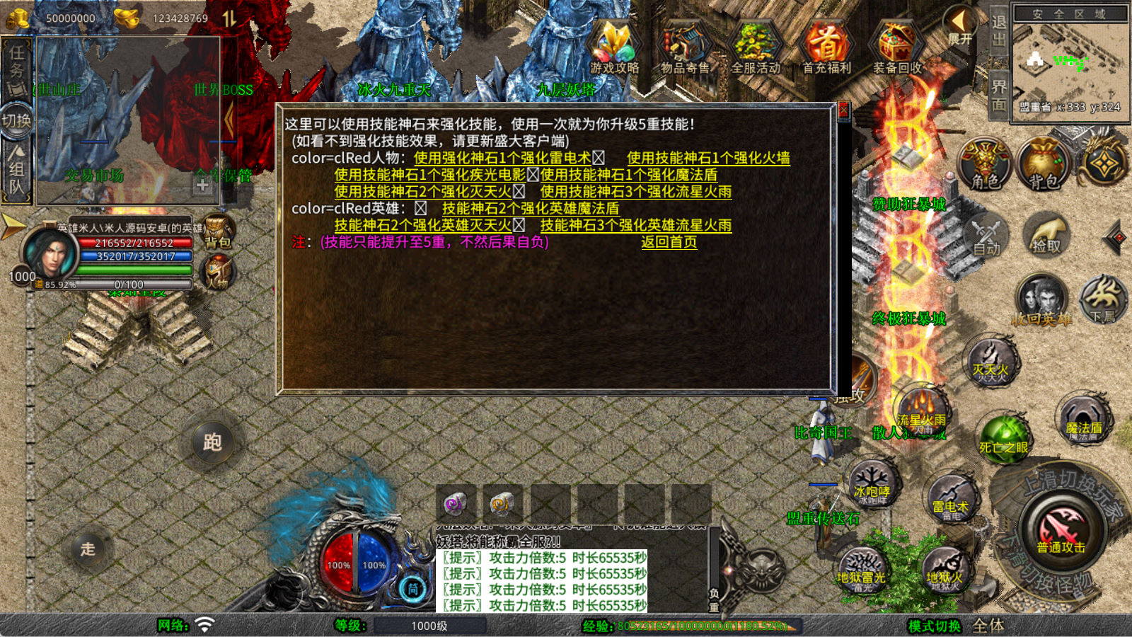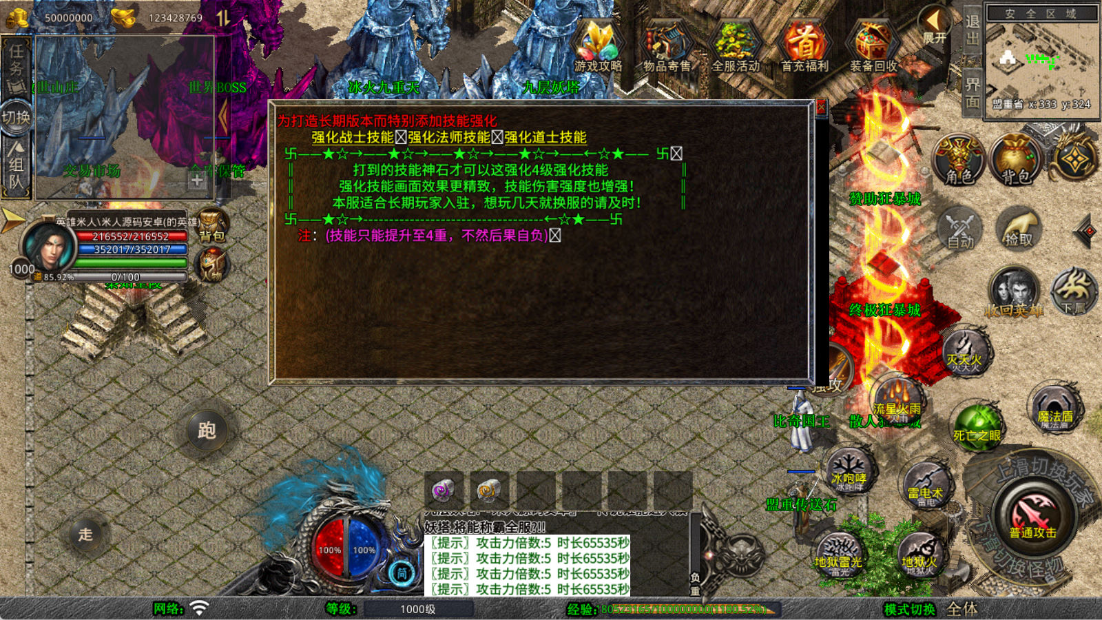 下面我们来测试下游戏里的功能看看。好了,其他功能就自行测试吧。更多的游戏资源可以访问www.MiR6.com下载,我们每款游戏资源均单独制作了独立的视频架设教程,让小白也可以快速上手游戏架设,快来体验自己做GM的乐趣吧!