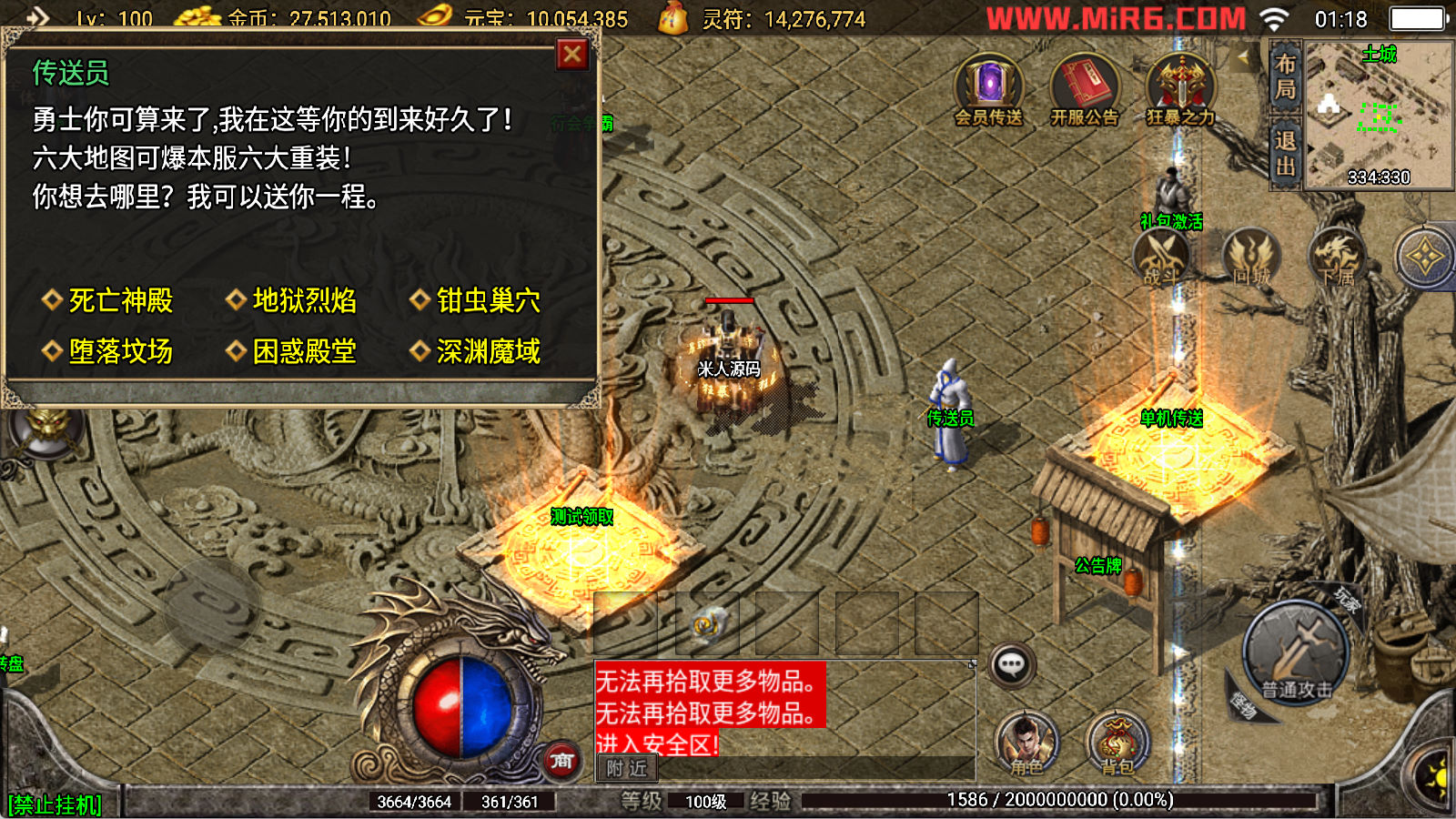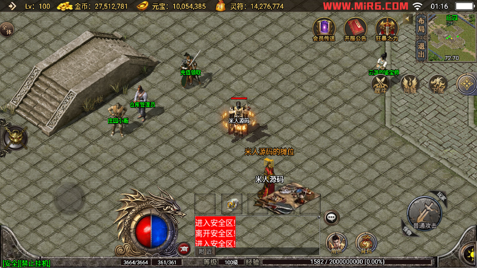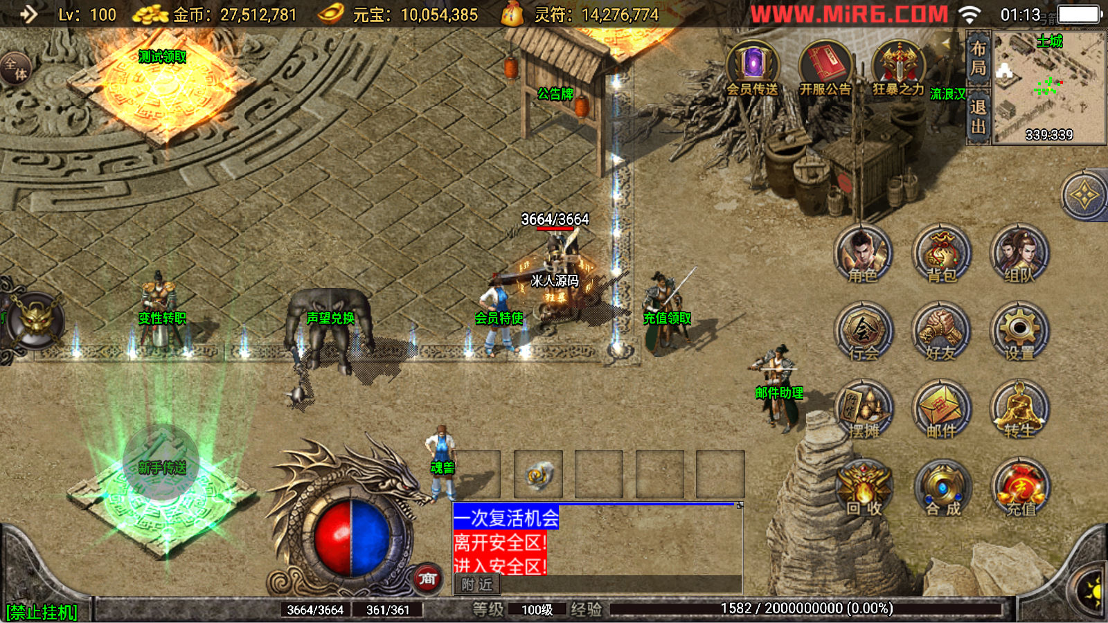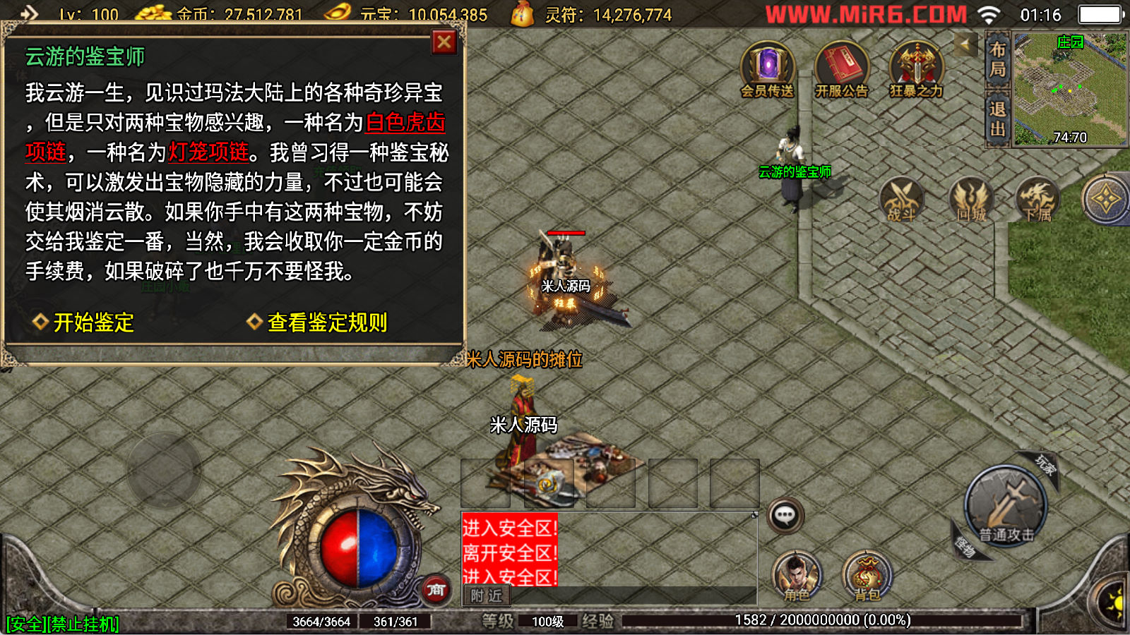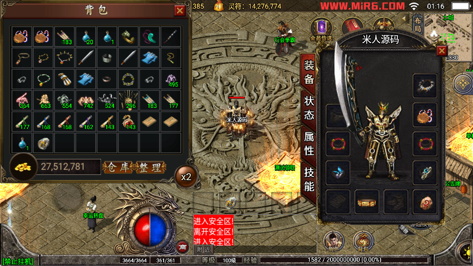 下面我们来测试下游戏里的功能看看。好了,其他功能就自行测试吧。更多的游戏资源可以访问www.MiR6.com下载,我们每款游戏资源均单独制作了独立的视频架设教程,让小白也可以快速上手游戏架设,快来体验自己做GM的乐趣吧!