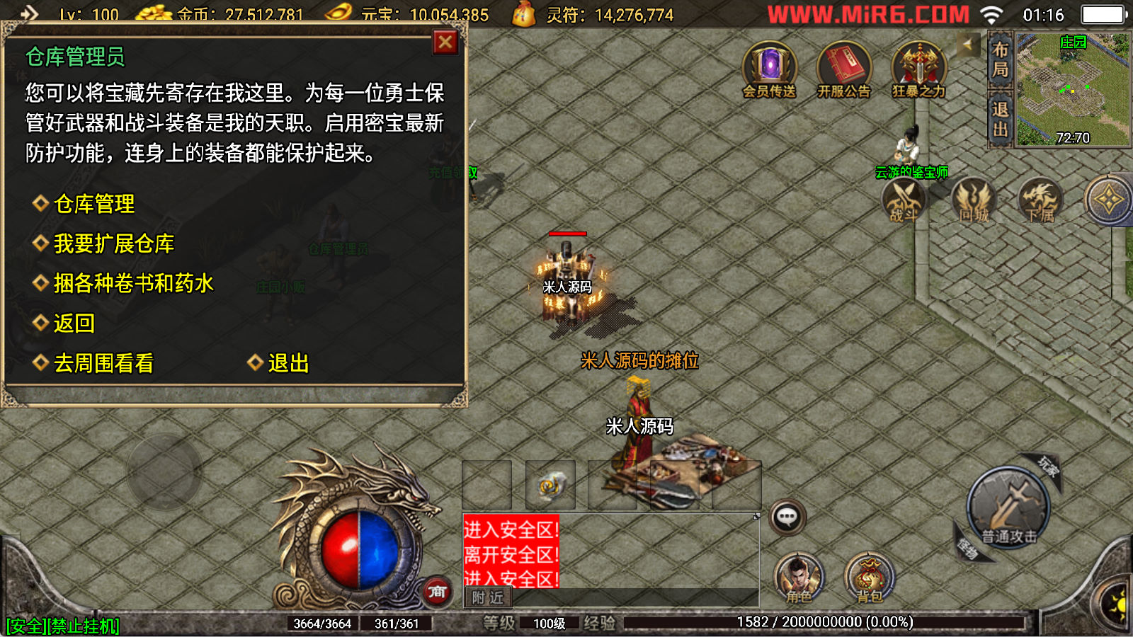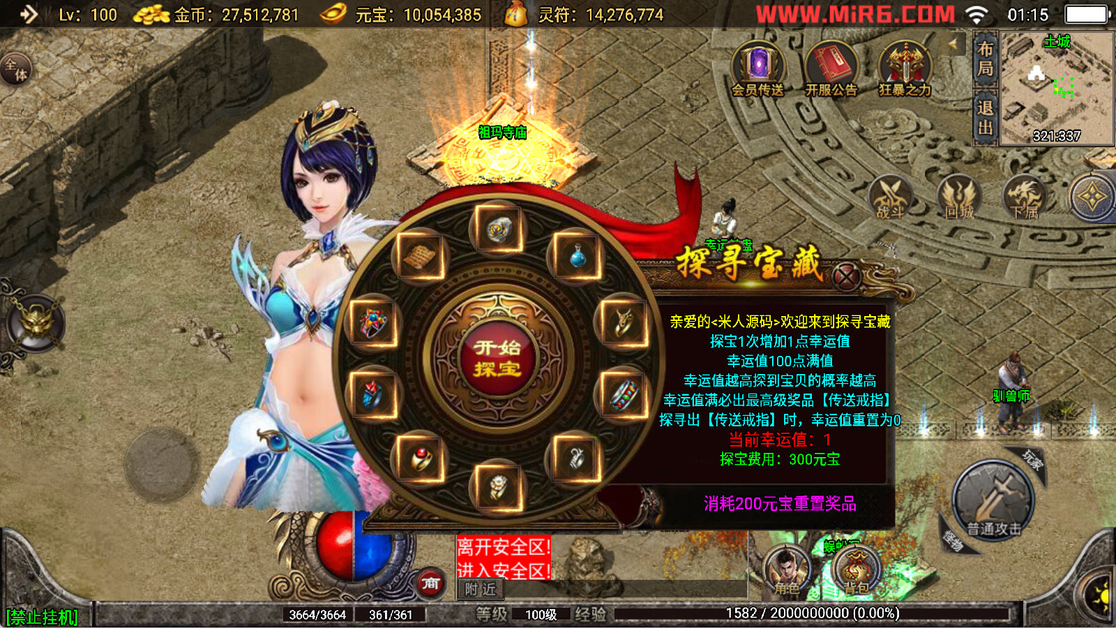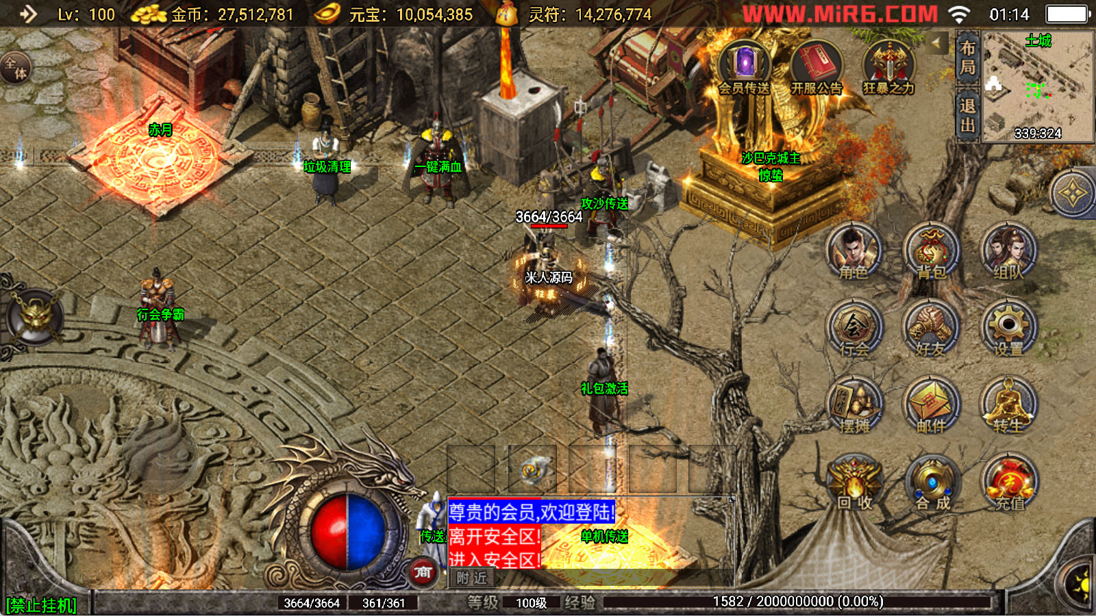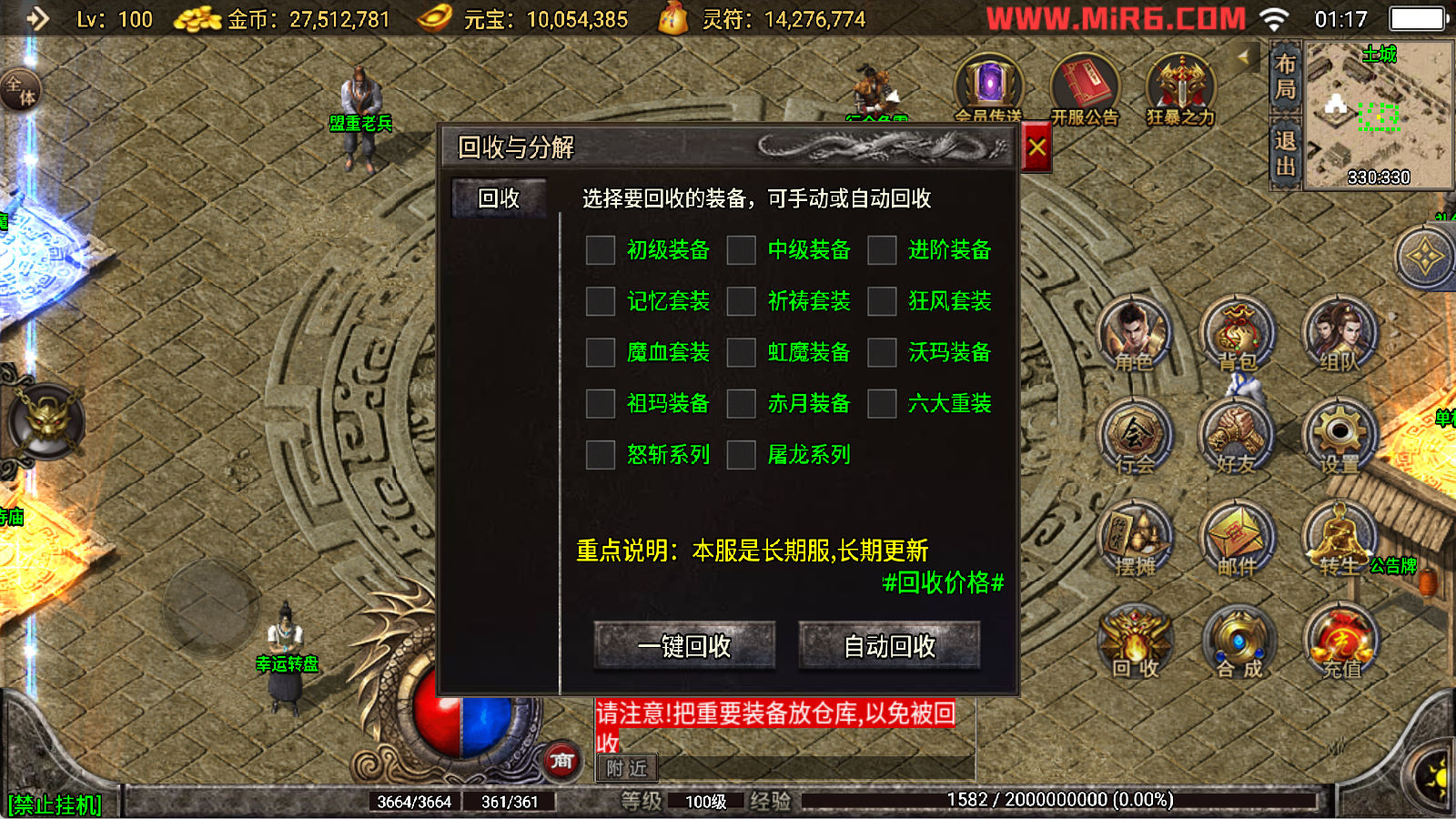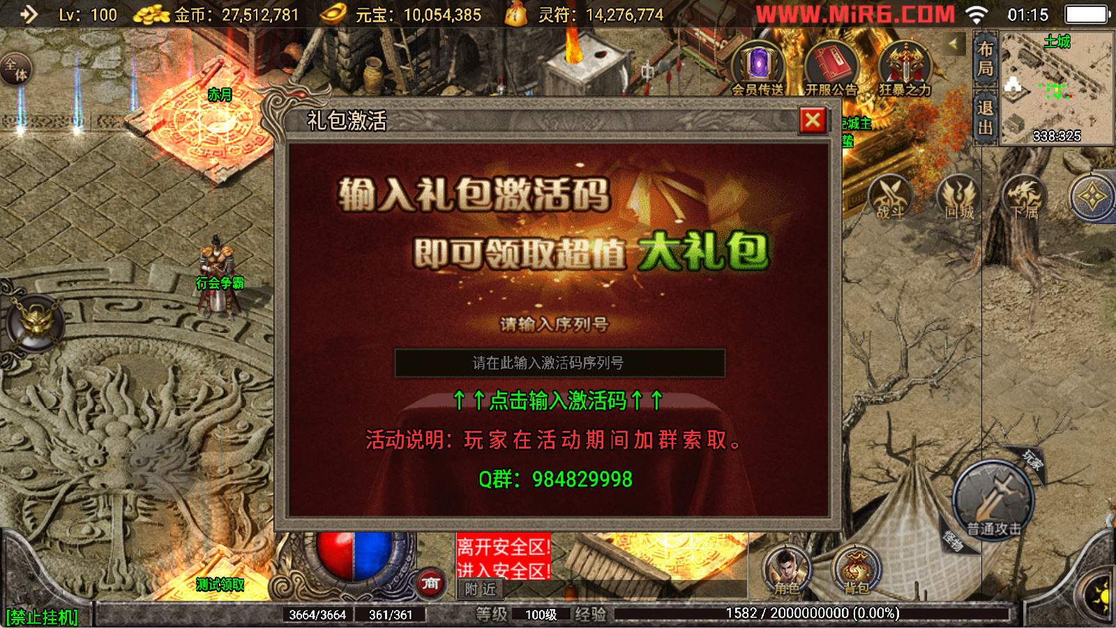 下面我们来测试下游戏里的功能看看。好了,其他功能就自行测试吧。更多的游戏资源可以访问www.MiR6.com下载,我们每款游戏资源均单独制作了独立的视频架设教程,让小白也可以快速上手游戏架设,快来体验自己做GM的乐趣吧!