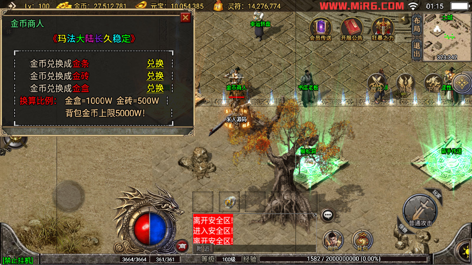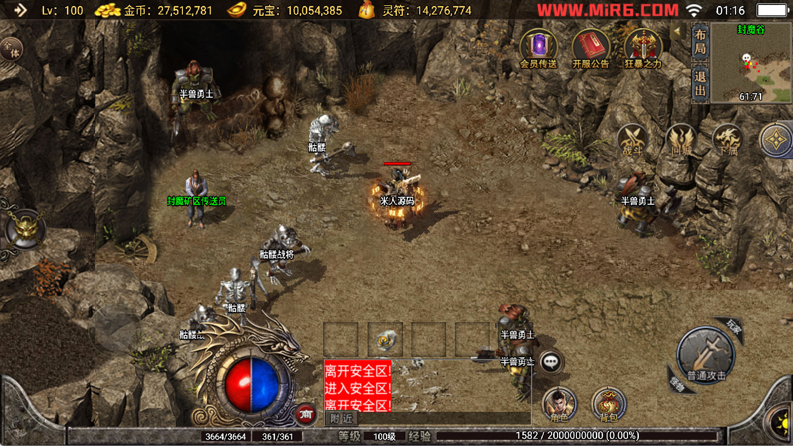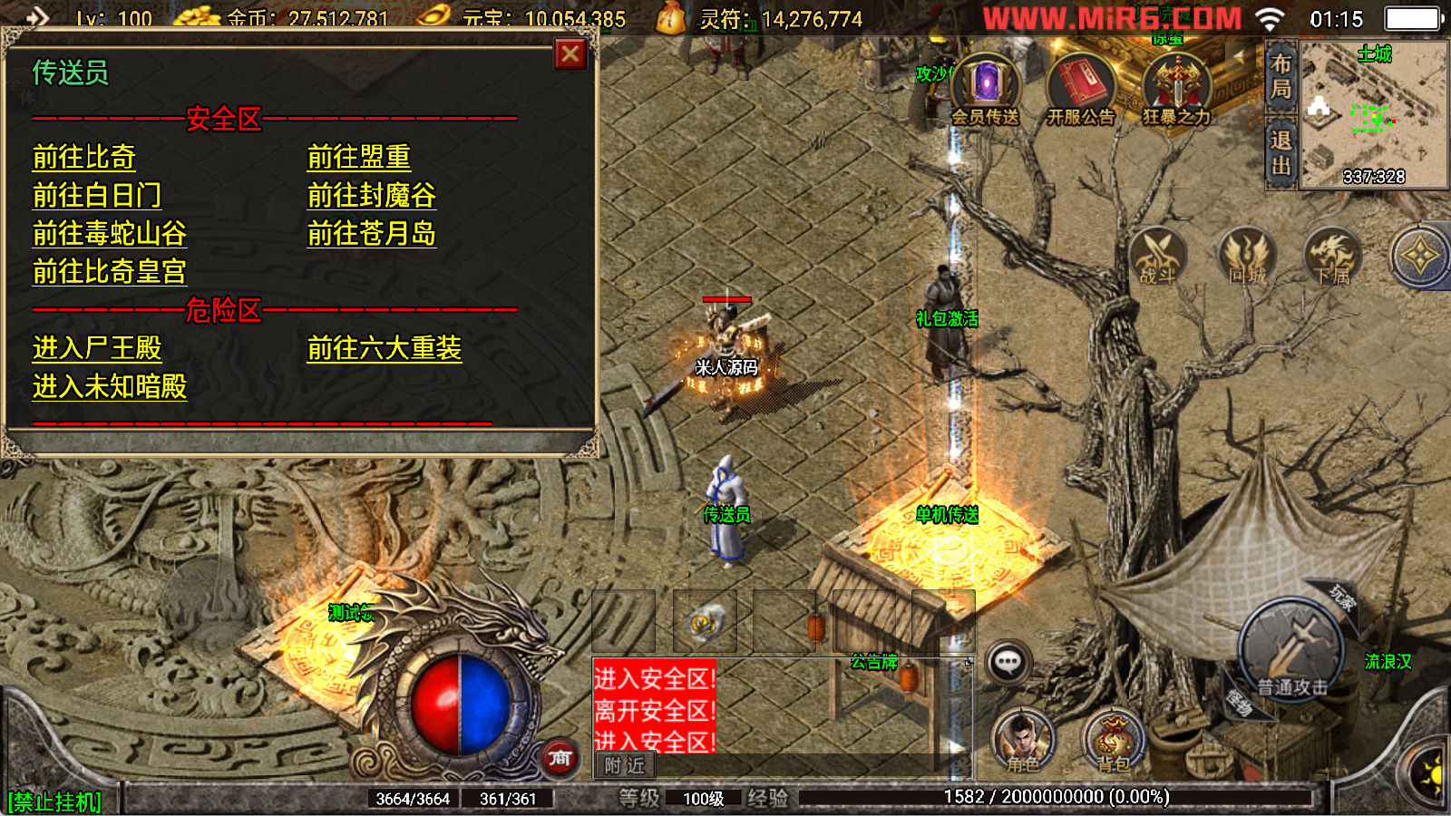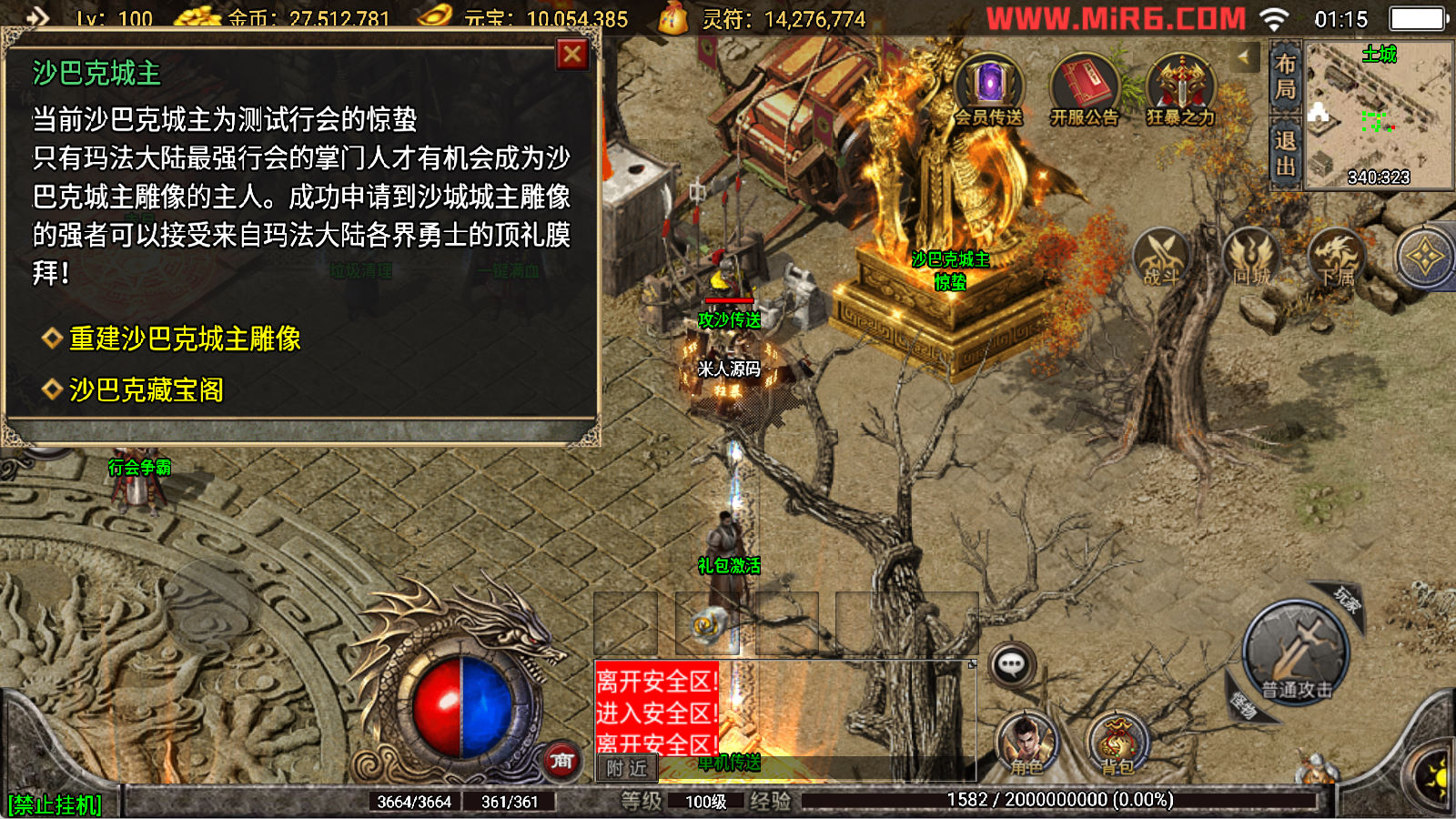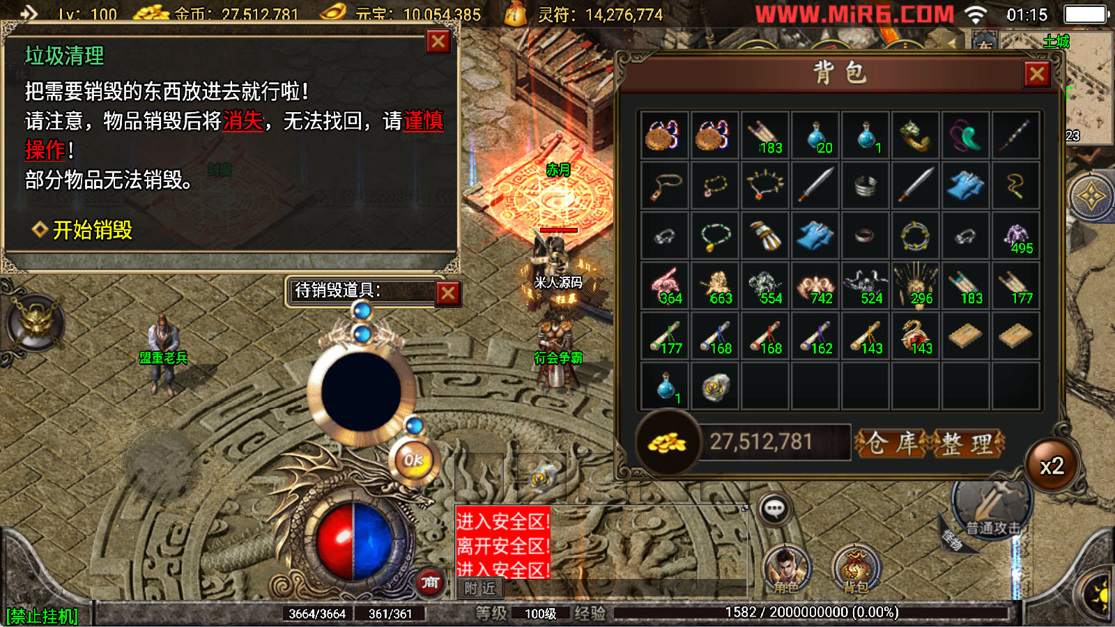 下面我们来测试下游戏里的功能看看。好了,其他功能就自行测试吧。更多的游戏资源可以访问www.MiR6.com下载,我们每款游戏资源均单独制作了独立的视频架设教程,让小白也可以快速上手游戏架设,快来体验自己做GM的乐趣吧!