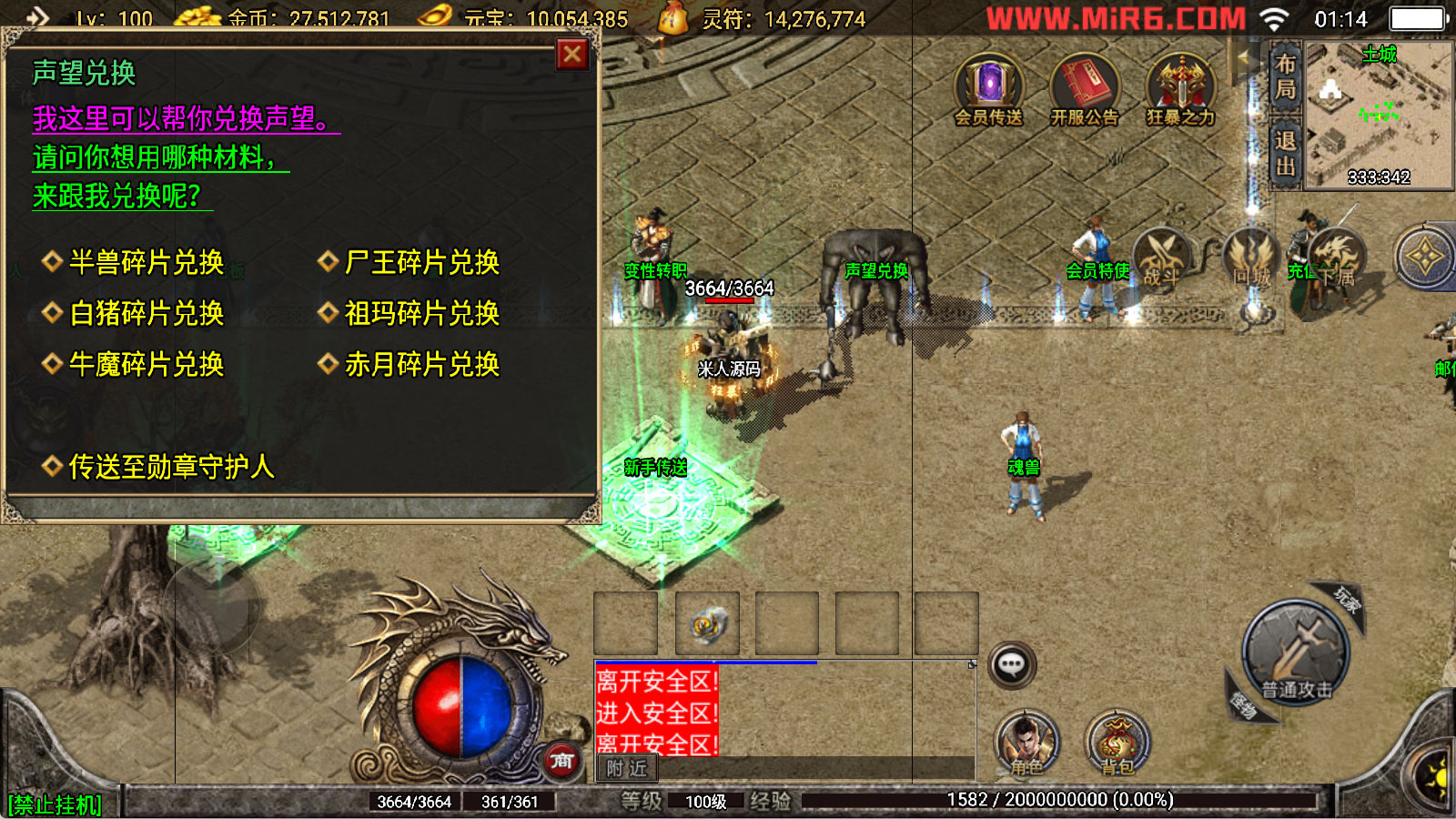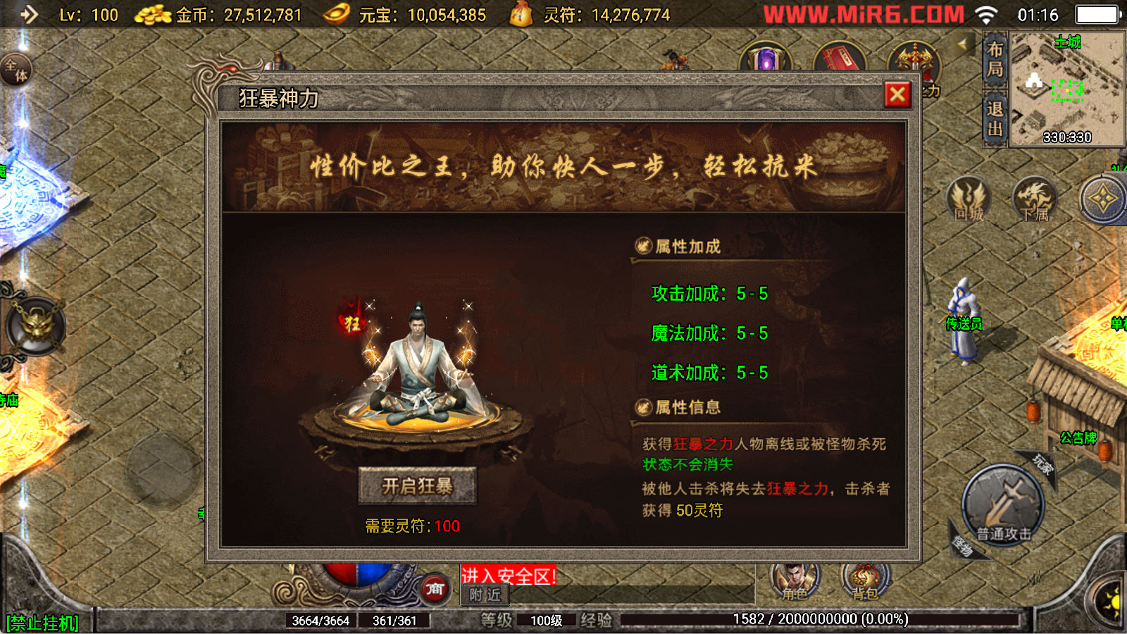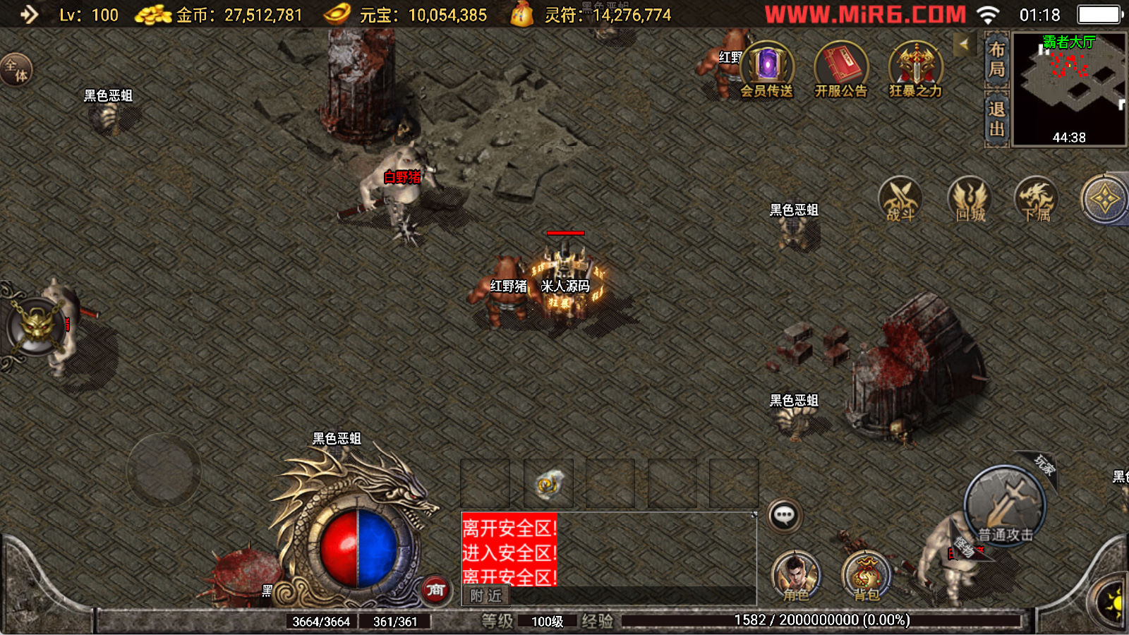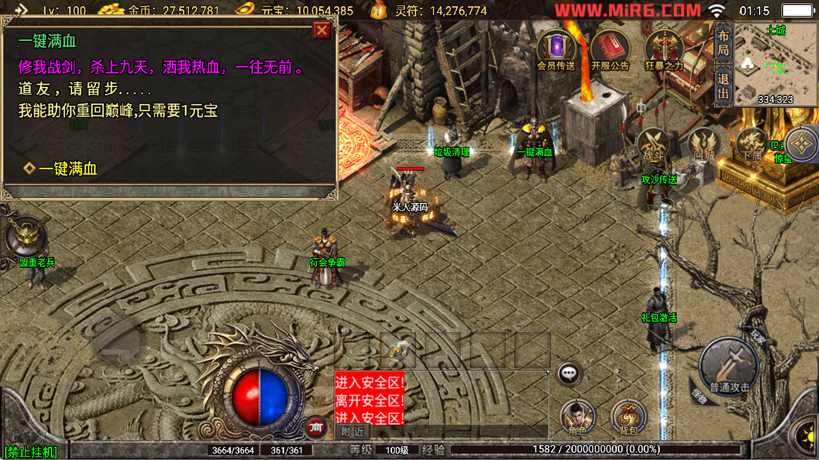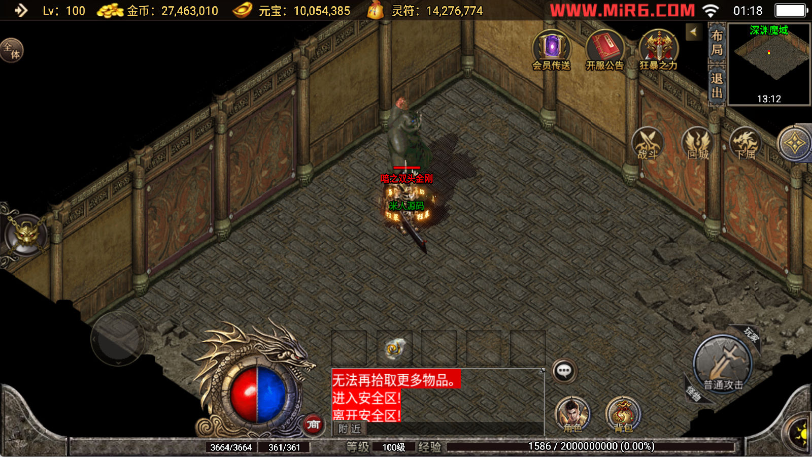 下面我们来测试下游戏里的功能看看。好了,其他功能就自行测试吧。更多的游戏资源可以访问www.MiR6.com下载,我们每款游戏资源均单独制作了独立的视频架设教程,让小白也可以快速上手游戏架设,快来体验自己做GM的乐趣吧!