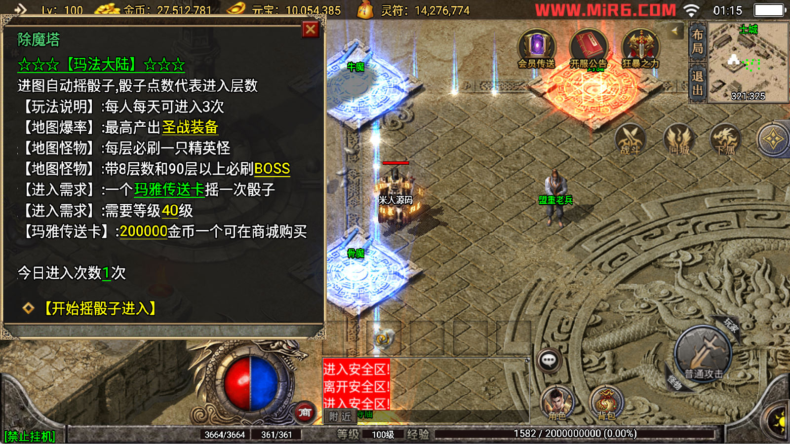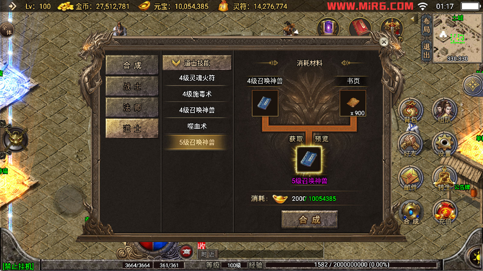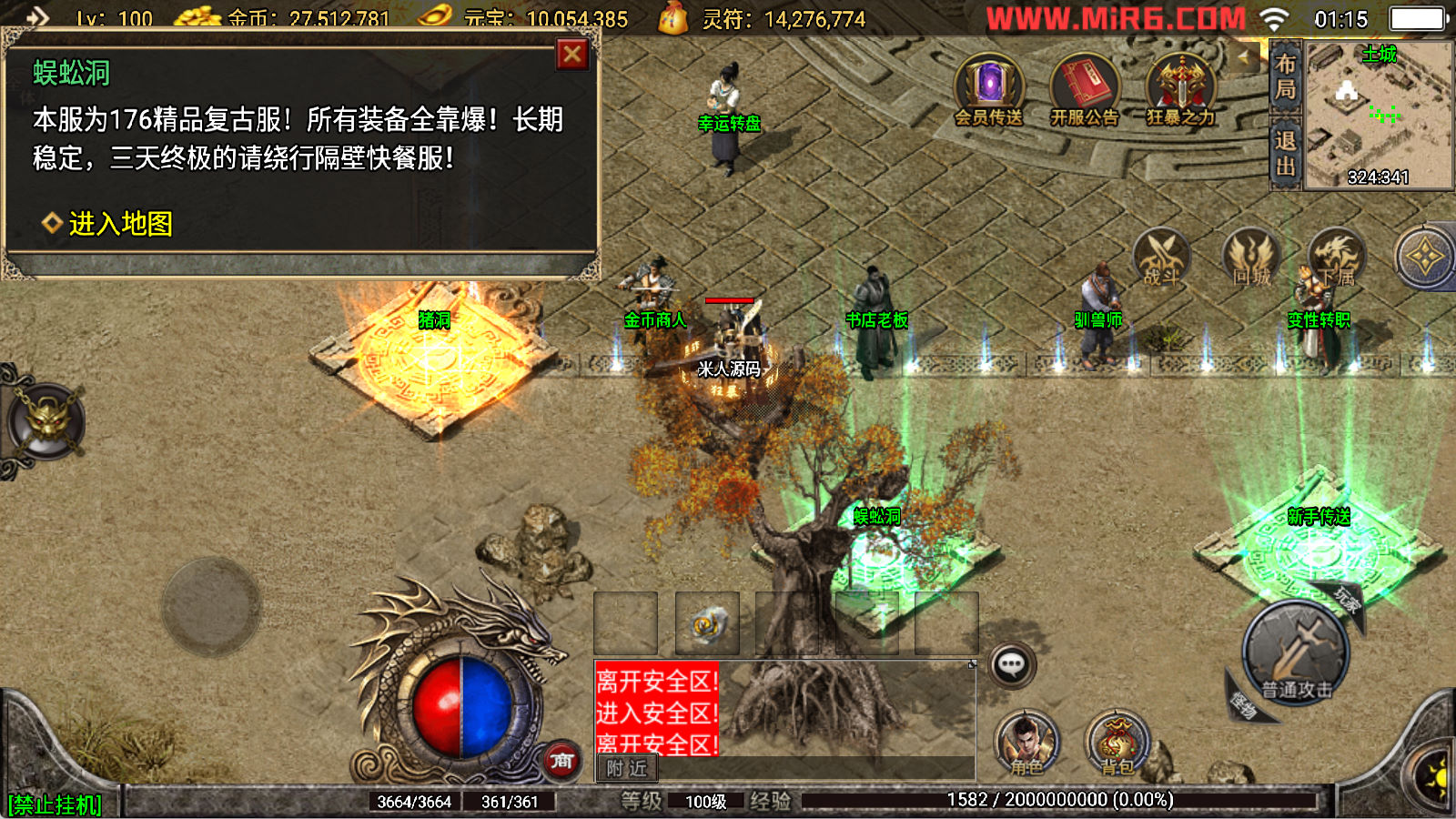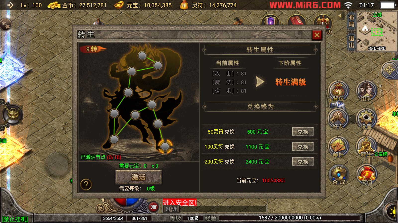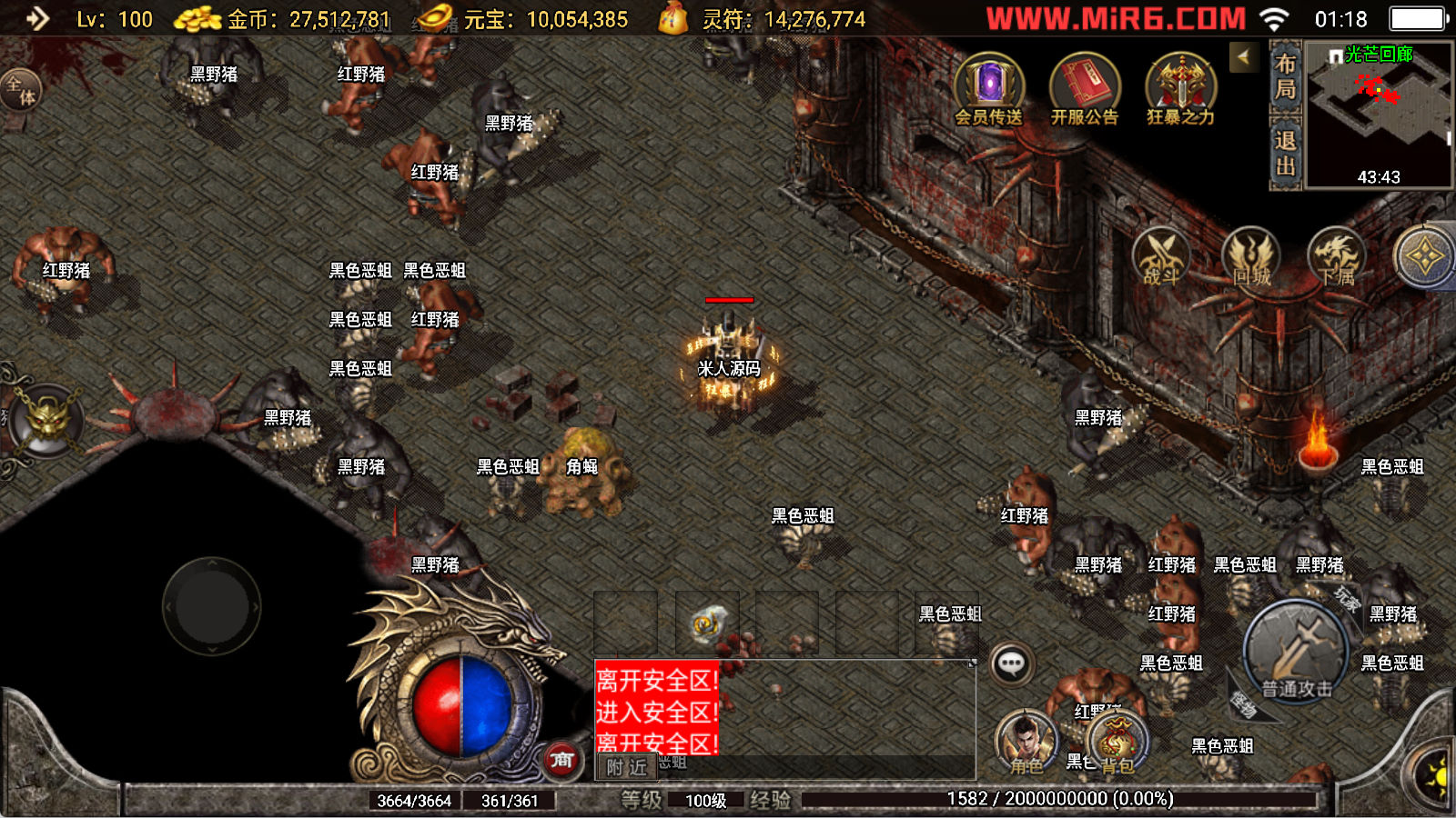 下面我们来测试下游戏里的功能看看。好了,其他功能就自行测试吧。更多的游戏资源可以访问www.MiR6.com下载,我们每款游戏资源均单独制作了独立的视频架设教程,让小白也可以快速上手游戏架设,快来体验自己做GM的乐趣吧!