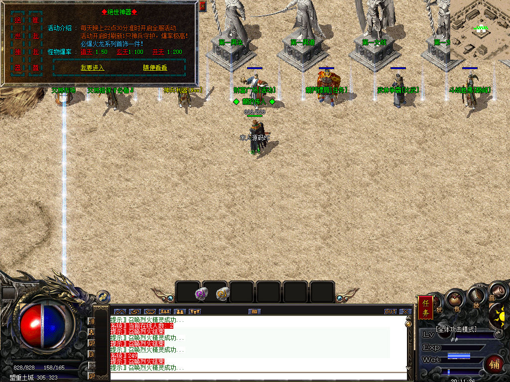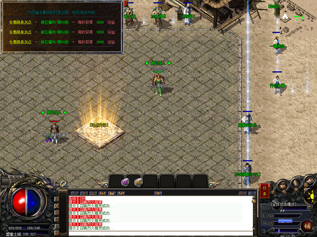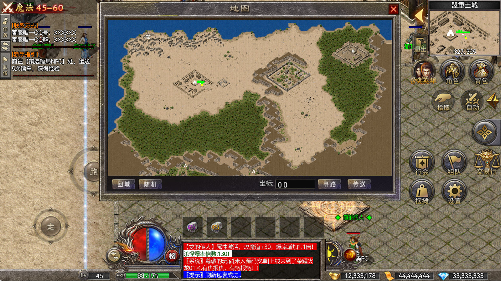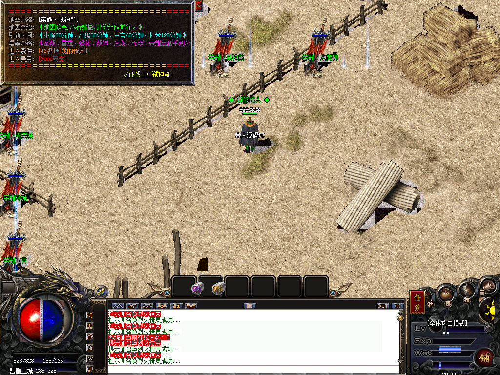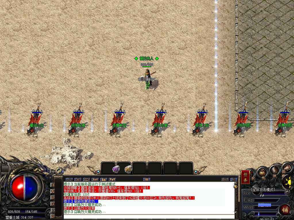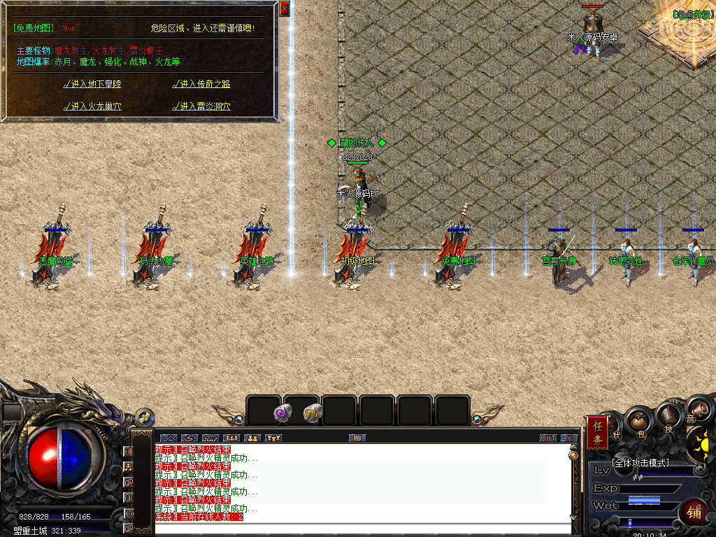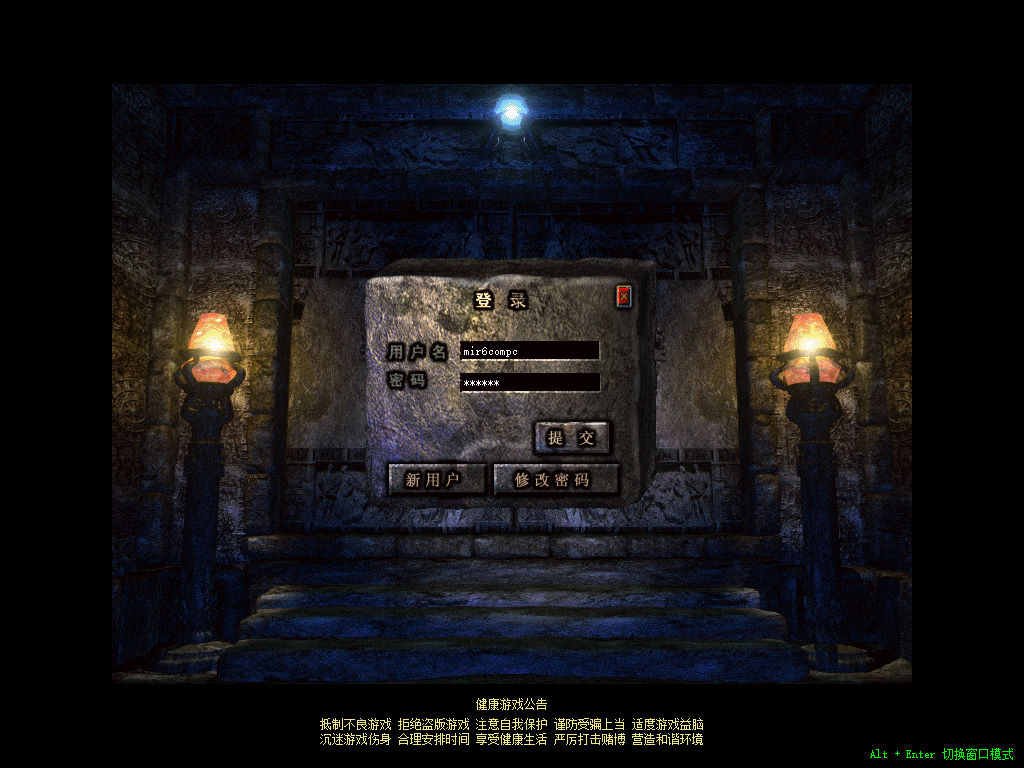 另外我这里的登陆器界面第一次进入界面显示是歪的,关闭后重新在进入即可正常了。我们先进入一次游戏。另外推荐,把盟重地图文件mp3\3.map替换到你的PC客户端里获的更好的游戏显示效果,其他补丁如果你看看有需要,可以从服务端里复制到PC客户端里完整替换一次获得更好的显示效果。