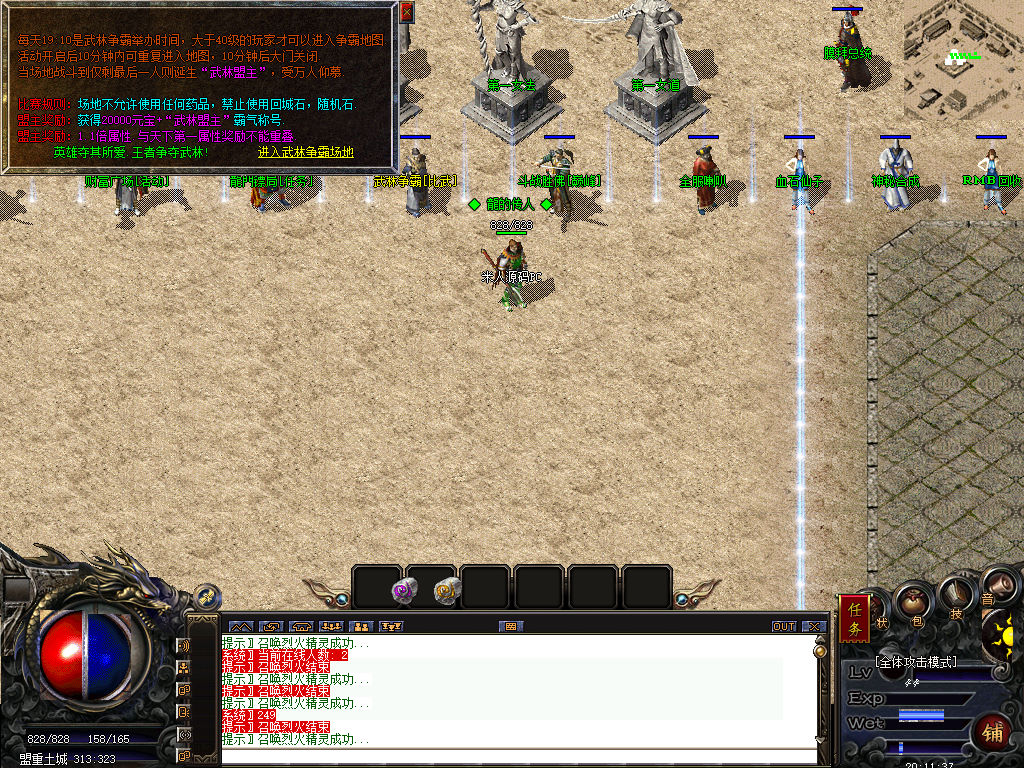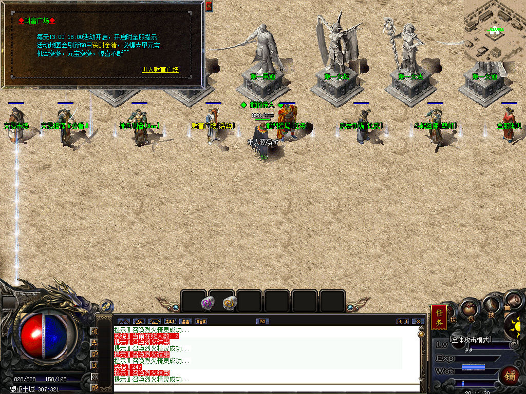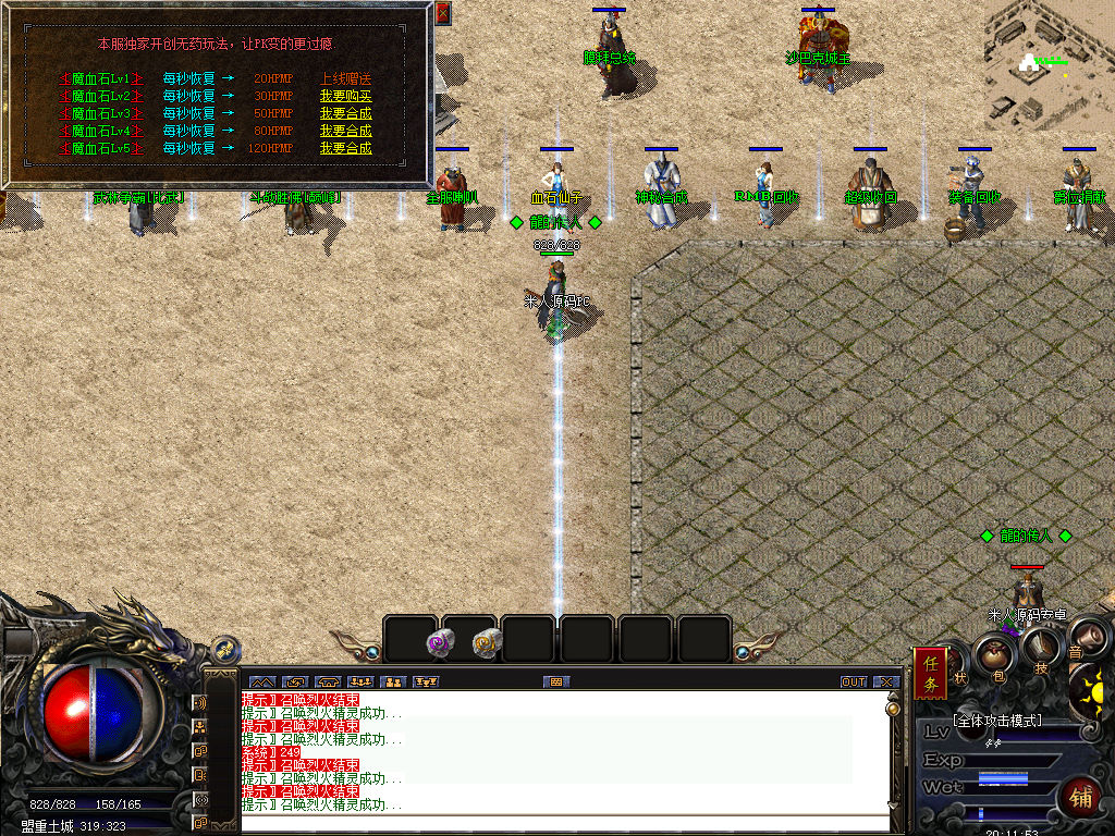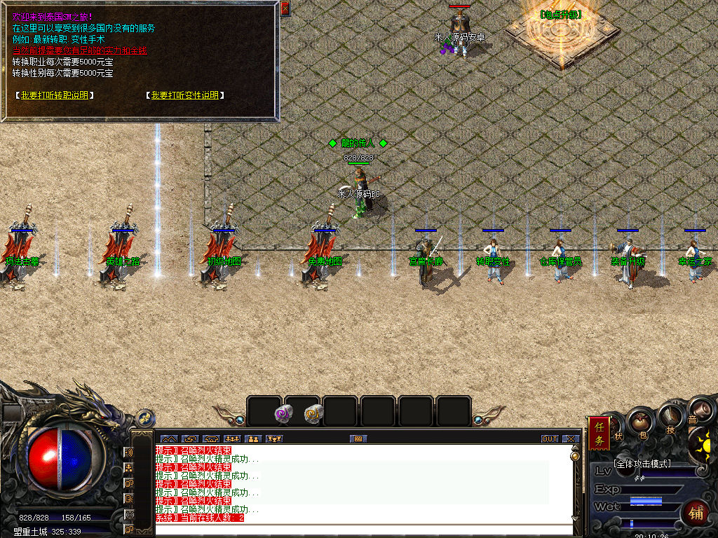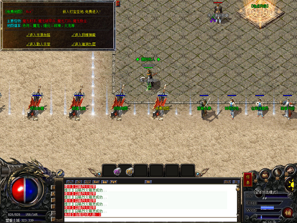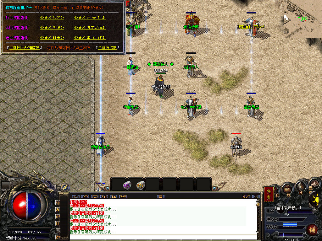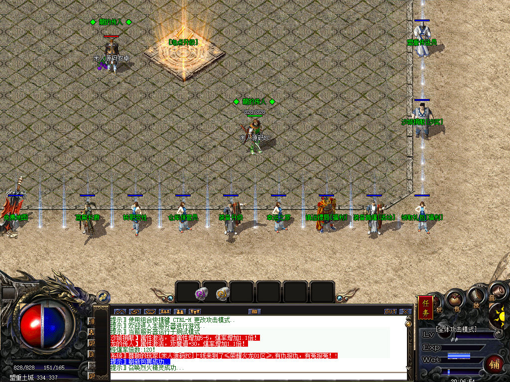另外我这里的登陆器界面第一次进入界面显示是歪的,关闭后重新在进入即可正常了。我们先进入一次游戏。另外推荐,把盟重地图文件mp3\3.map替换到你的PC客户端里获的更好的游戏显示效果,其他补丁如果你看看有需要,可以从服务端里复制到PC客户端里完整替换一次获得更好的显示效果。