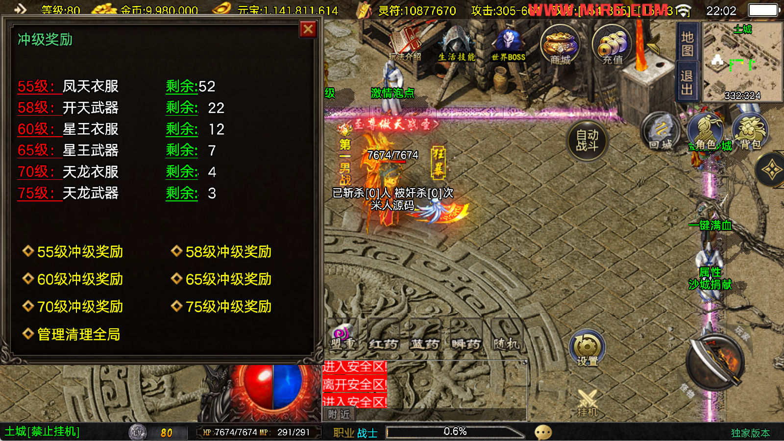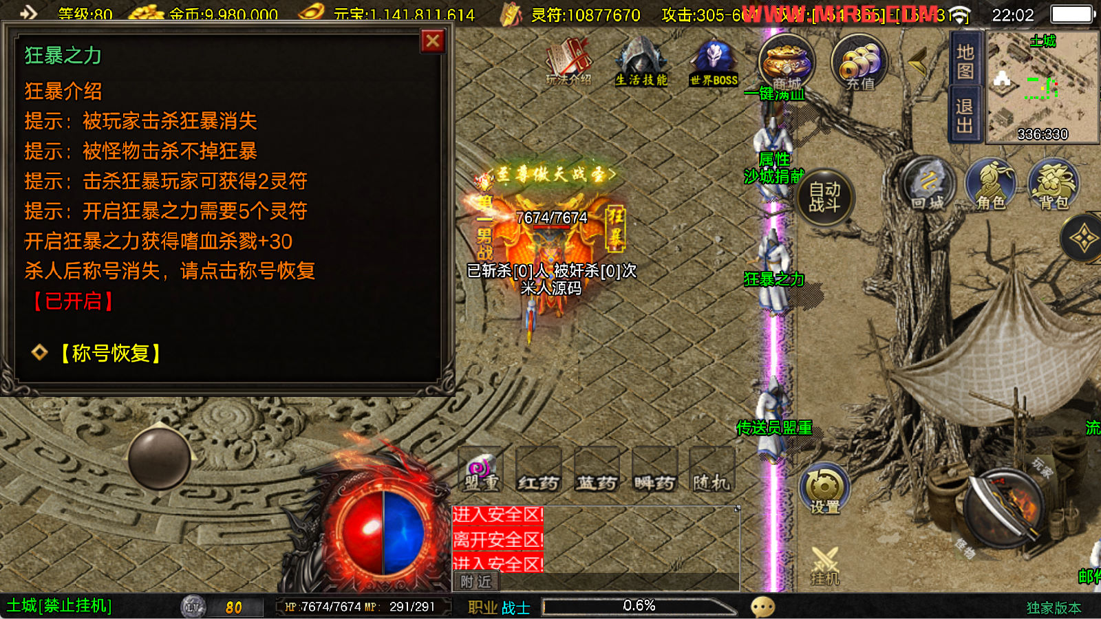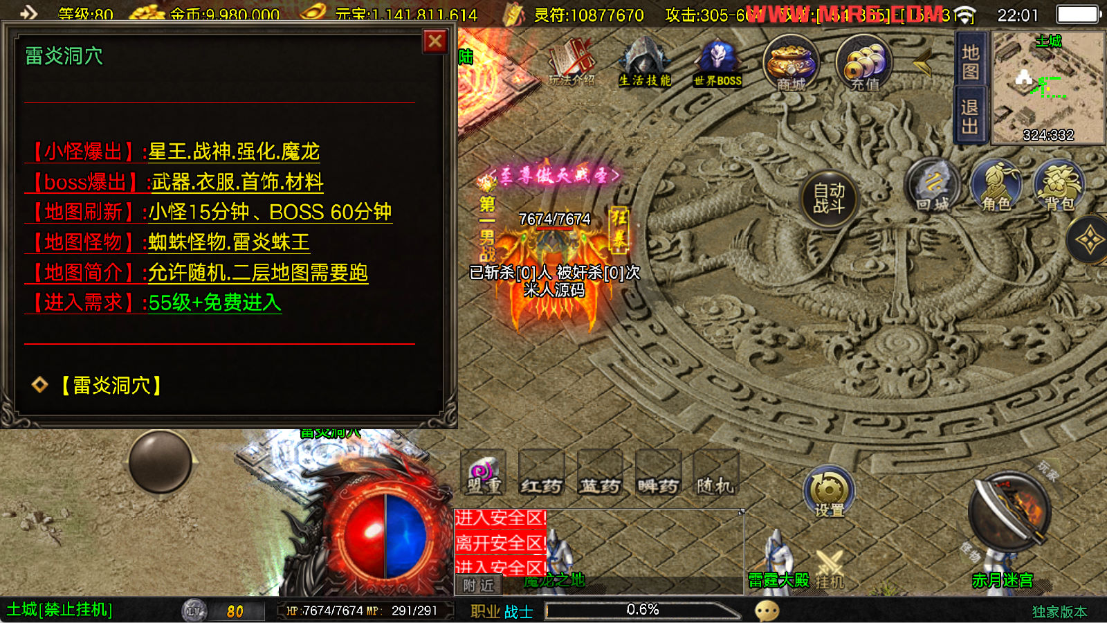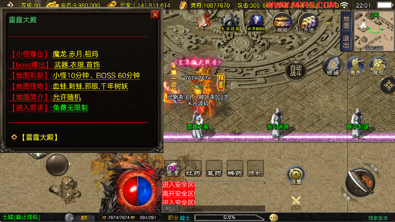 下面我们来测试下游戏里的功能看看。好了,其他功能就自行测试吧。更多的游戏资源可以访问www.MiR6.com下载,我们每款游戏资源均单独制作了独立的视频架设教程,让小白也可以快速上手游戏架设,快来体验自己做GM的乐趣吧!