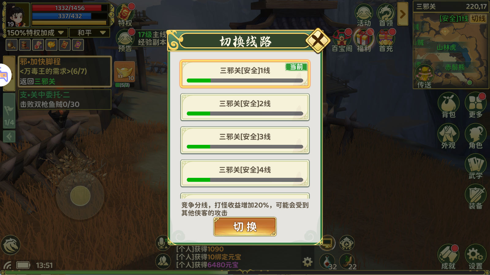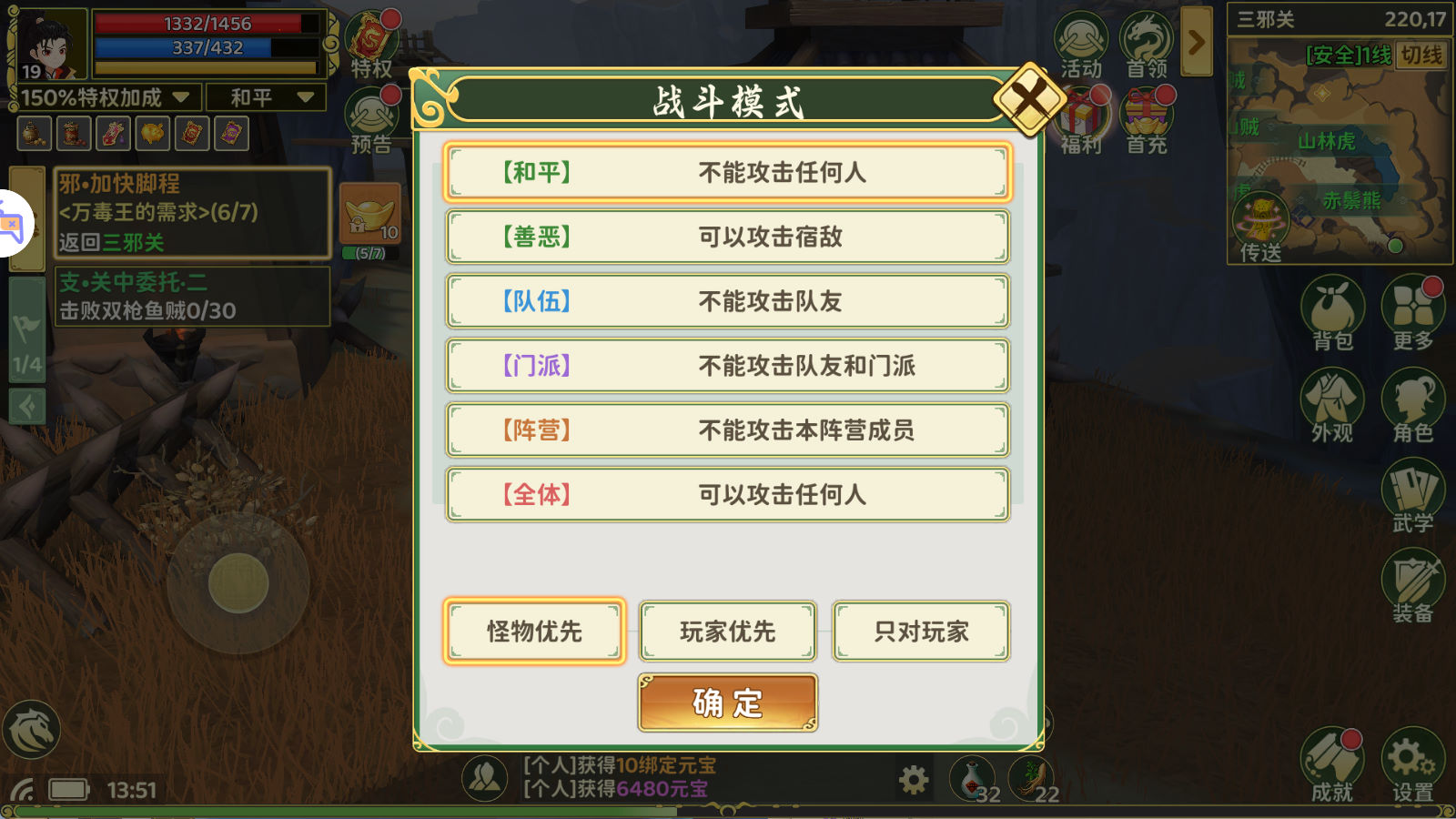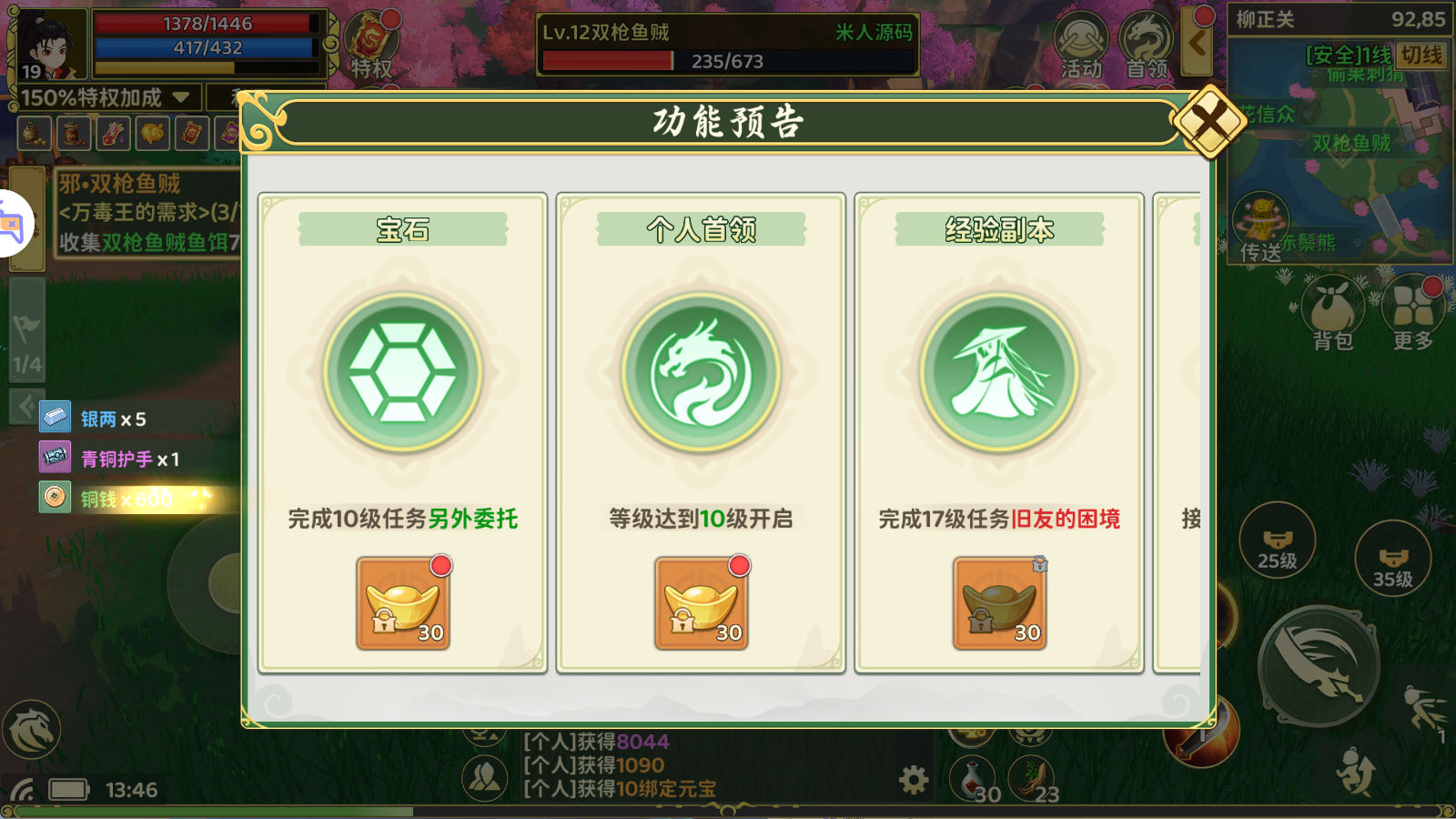 PS:这款游戏 后台经验不要发送太多,后台发送经验升级等级高了会导致不掉落任务物品,会导致一些功能异常。自己慢慢玩上去就没问题。