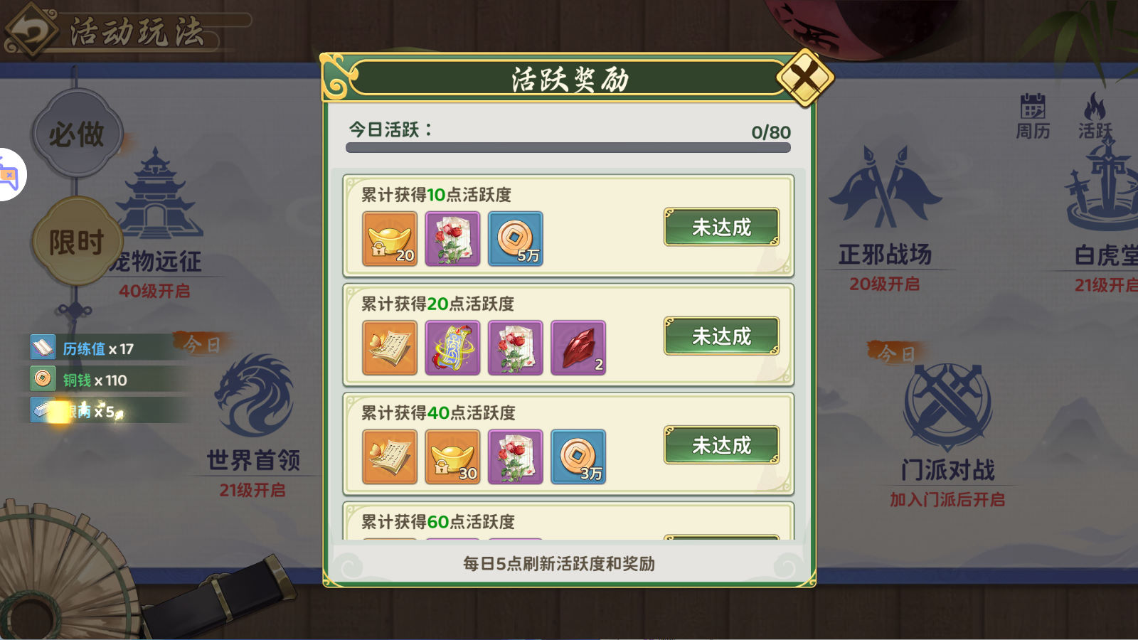 刚进入游戏看不到邮件,我们可以做一下任务,升几级就能看到好友、邮件了。到5级这里就可以看到邮件了。