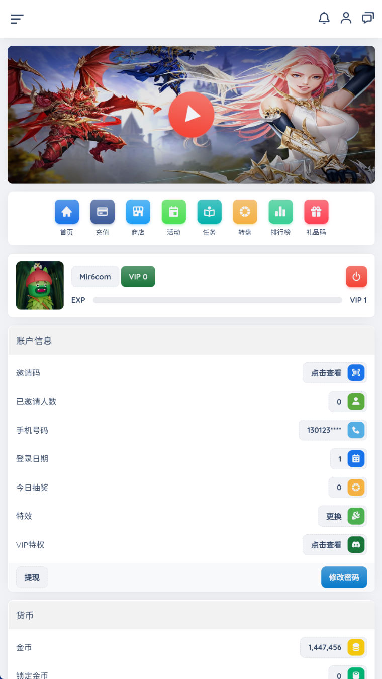 三网H5游戏【奇迹H5之混沌多区平台币内购跨服版】Linux手工服务端+商城官网+代理后台+GM加币授权后台+简易安卓客户端+视频架设教程