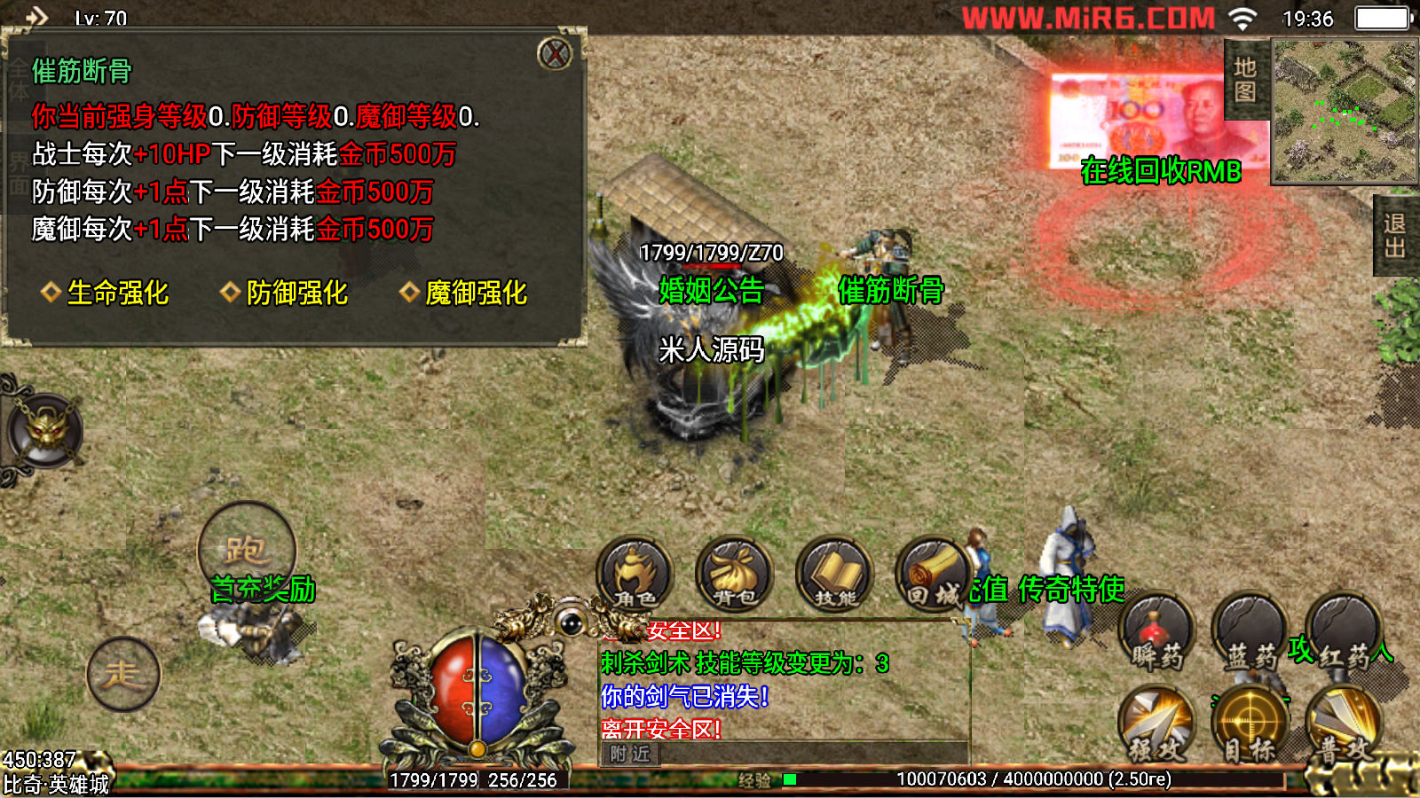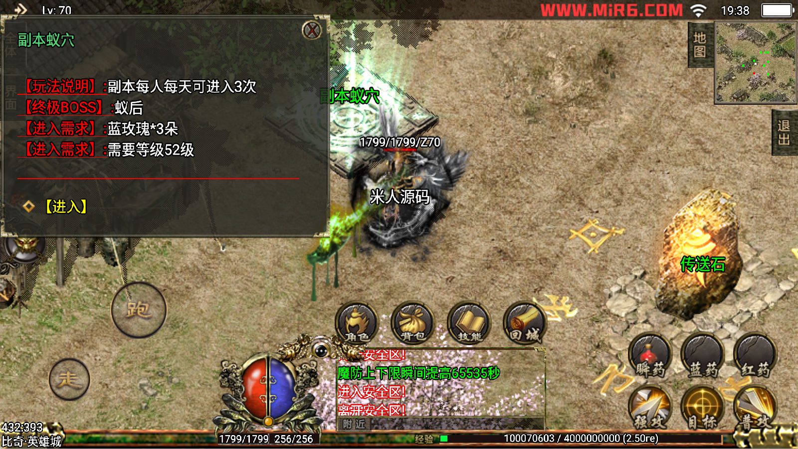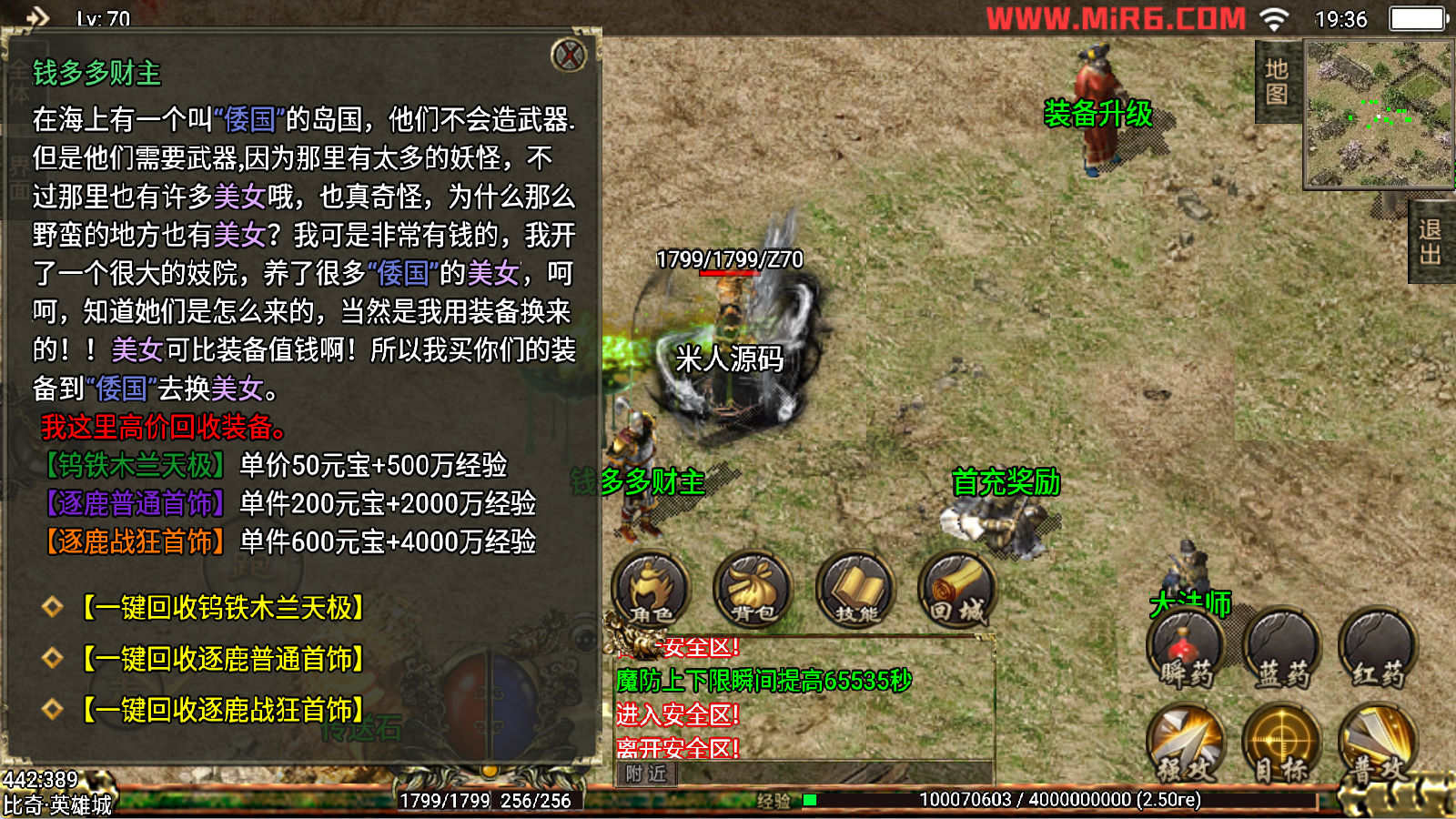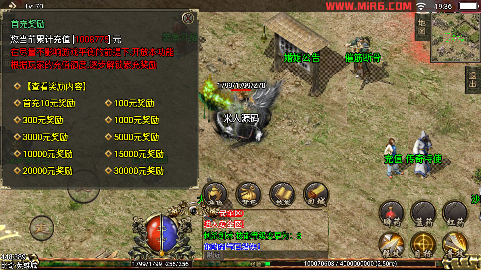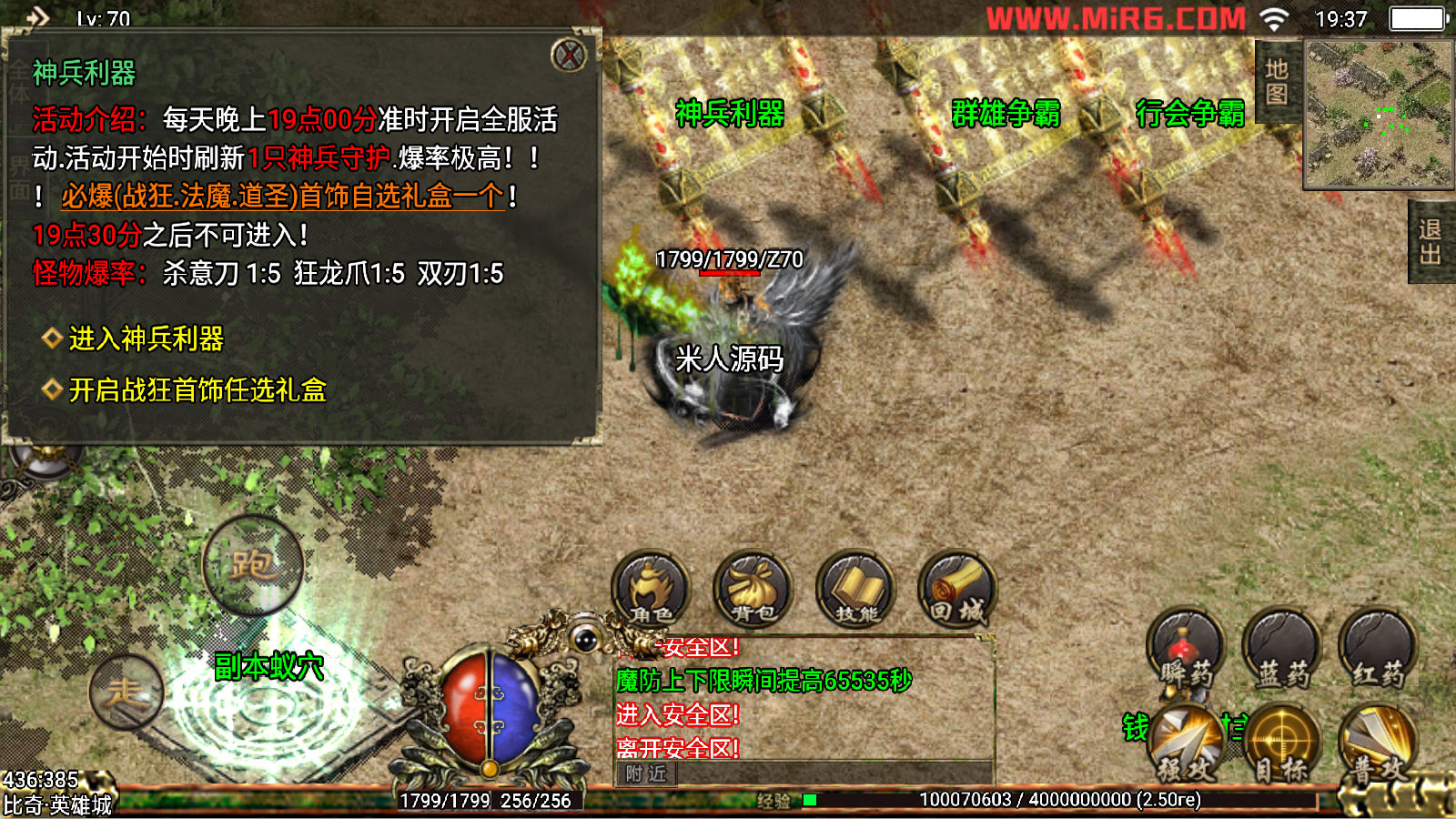 下面我们来测试下游戏里的功能看看。好了,其他功能就自行测试吧。更多的游戏资源可以访问www.MiR6.com下载,我们每款游戏资源均单独制作了独立的视频架设教程,让小白也可以快速上手游戏架设,快来体验自己做GM的乐趣吧!