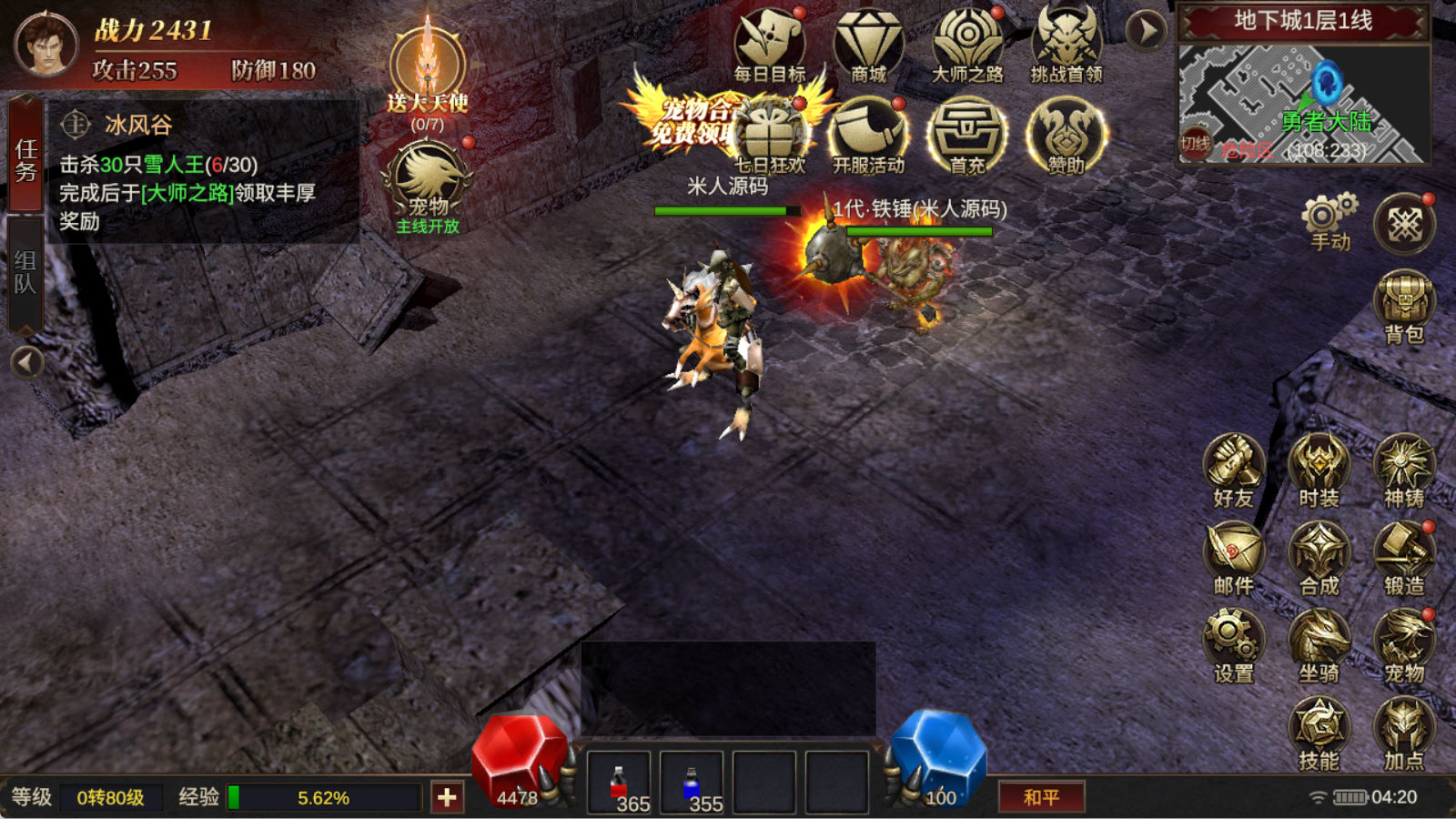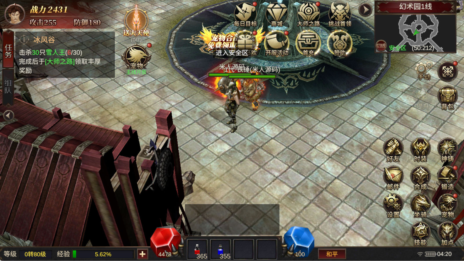 下面我们来测试下游戏里的功能看看吧。好了,其他功能就自行测试吧。更多的游戏资源可以访问www.MiR6.com下载,我们每款游戏资源均单独制作了独立的视频架设教程,让小白也可以快速上手游戏架设,快来体验自己做GM的乐趣吧!