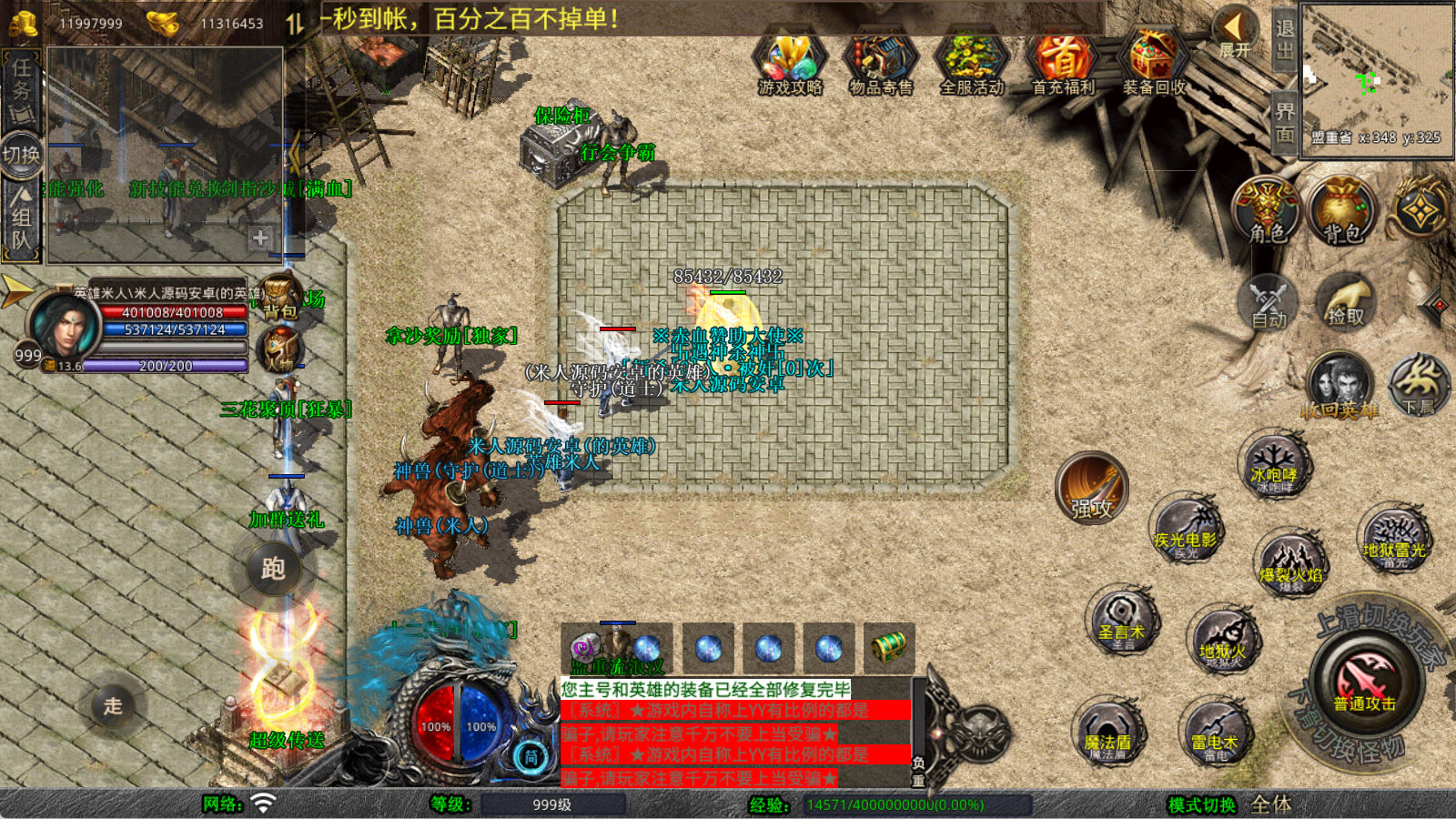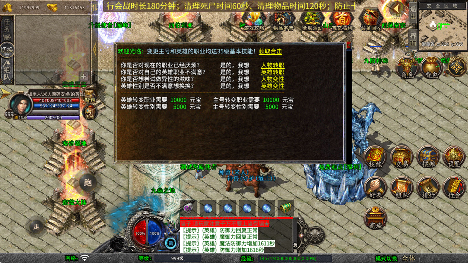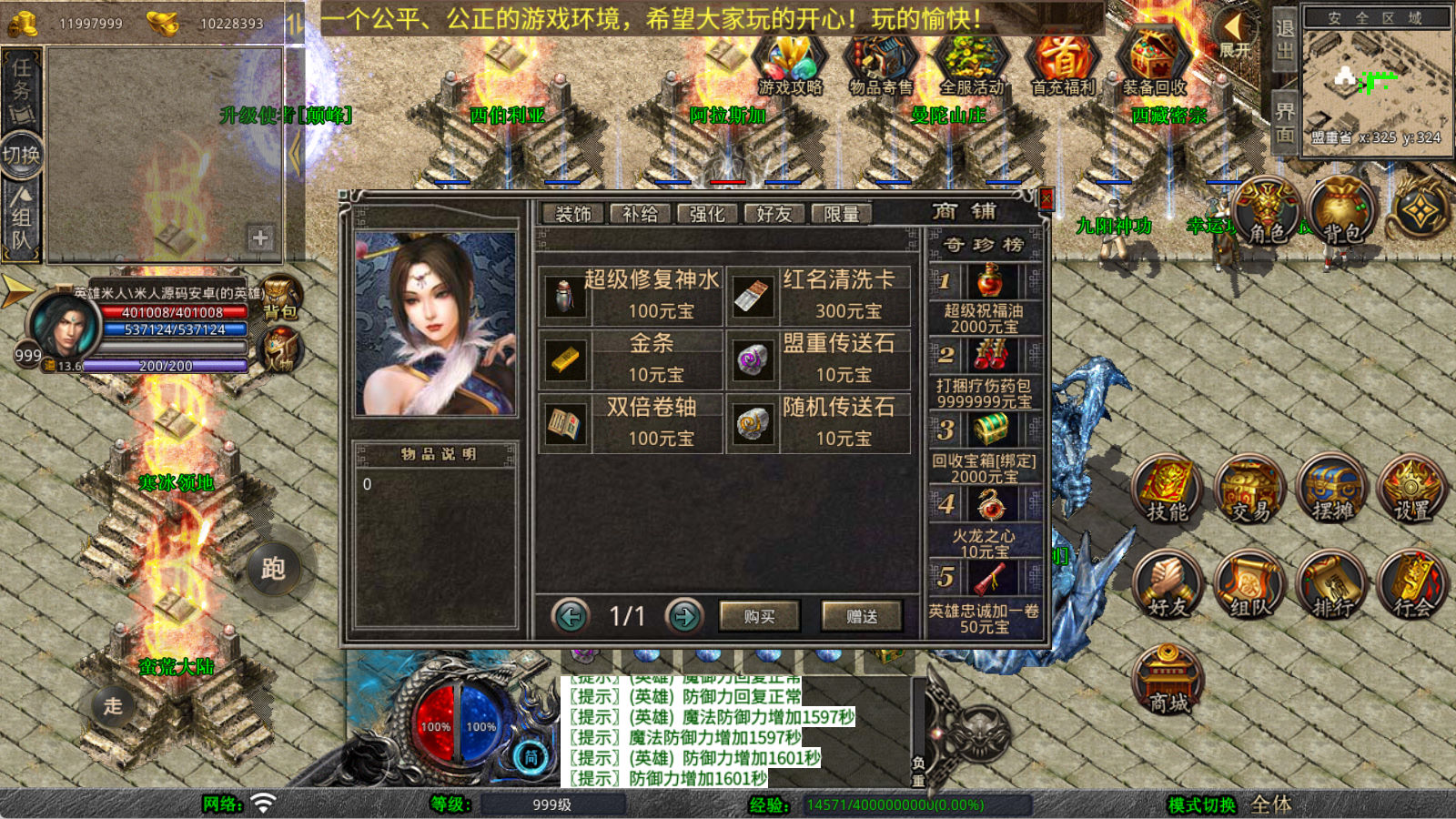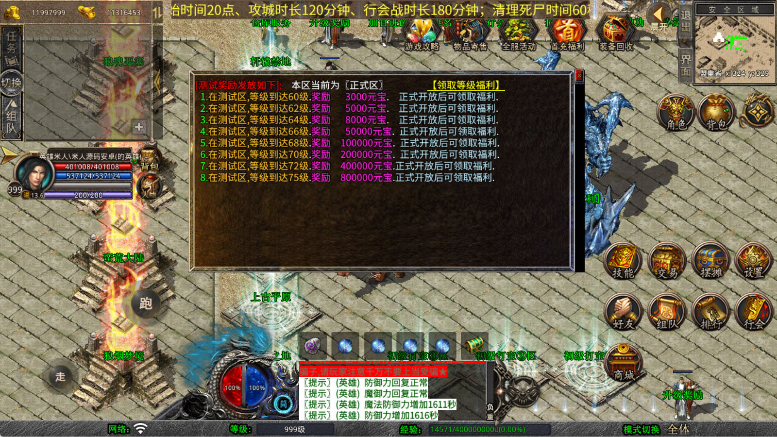 下面我们来测试下游戏里的功能看看。好了,其他功能就自行测试吧。更多的游戏资源可以访问www.MiR6.com下载,我们每款游戏资源均单独制作了独立的视频架设教程,让小白也可以快速上手游戏架设,快来体验自己做GM的乐趣吧!