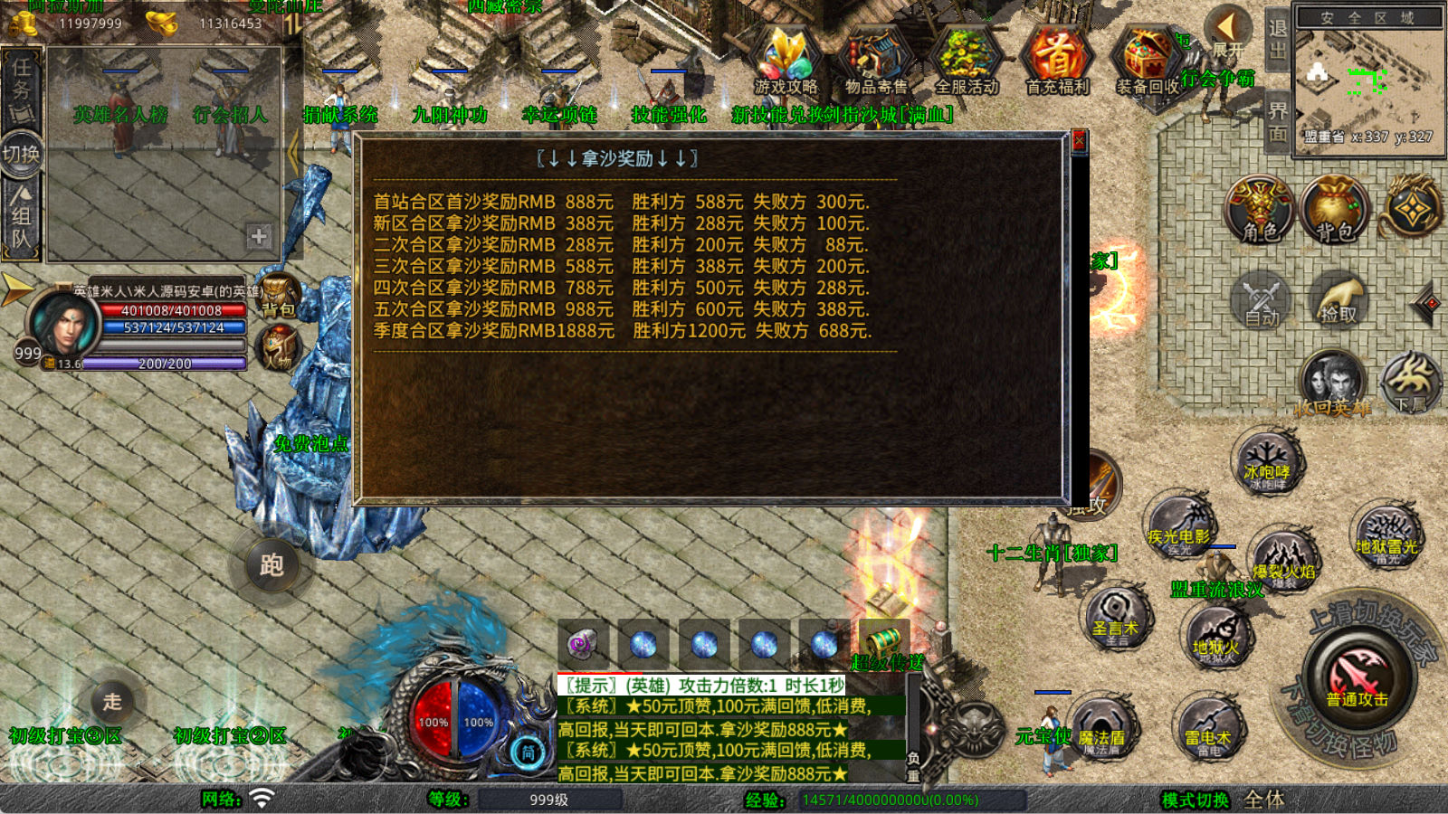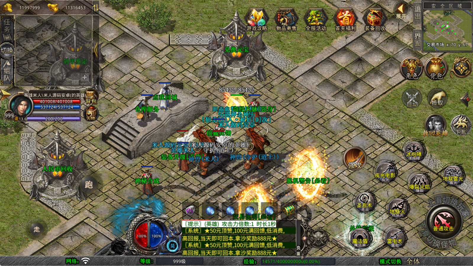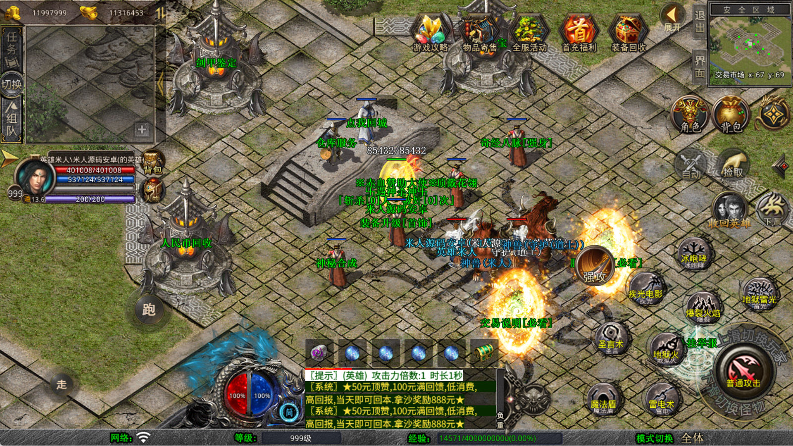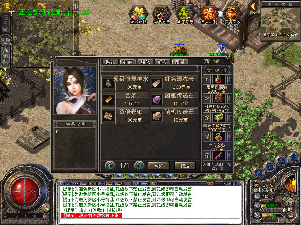 下面我们来测试下游戏里的功能看看。好了,其他功能就自行测试吧。更多的游戏资源可以访问www.MiR6.com下载,我们每款游戏资源均单独制作了独立的视频架设教程,让小白也可以快速上手游戏架设,快来体验自己做GM的乐趣吧!