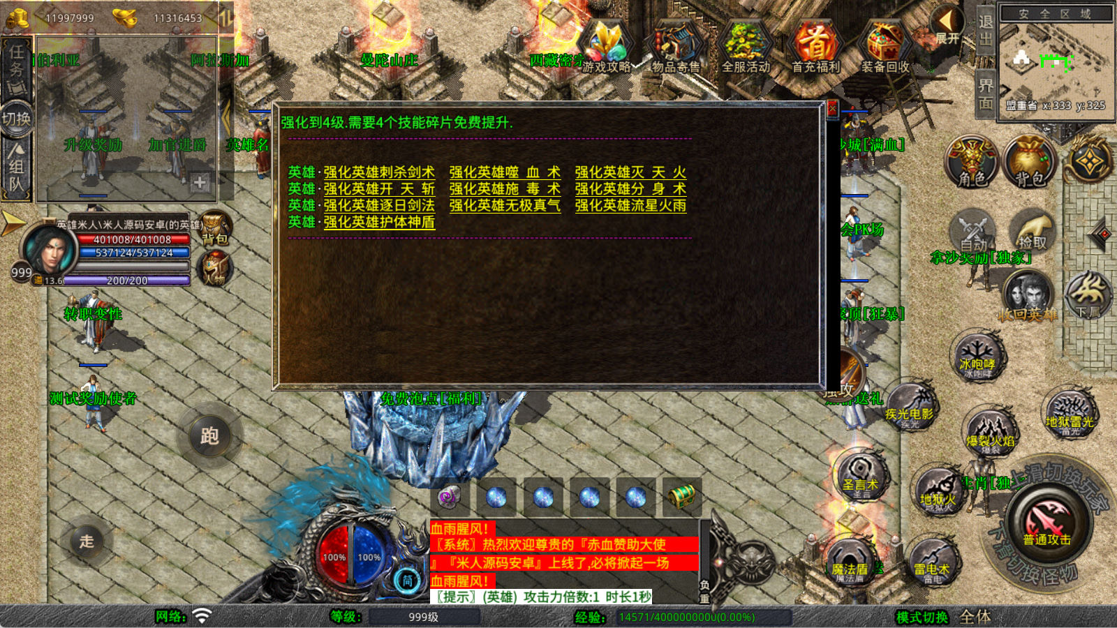 这样安卓客户端就修改完成了,然后我们在回编译+签名生成新的安卓APK客户端。编译完成。我们把桌面上新生成的安卓客户端安装到安卓模拟器里进入游戏试试看。