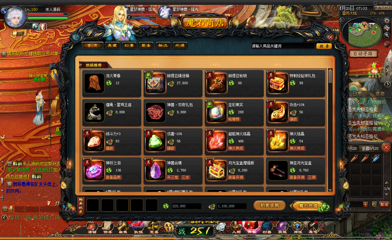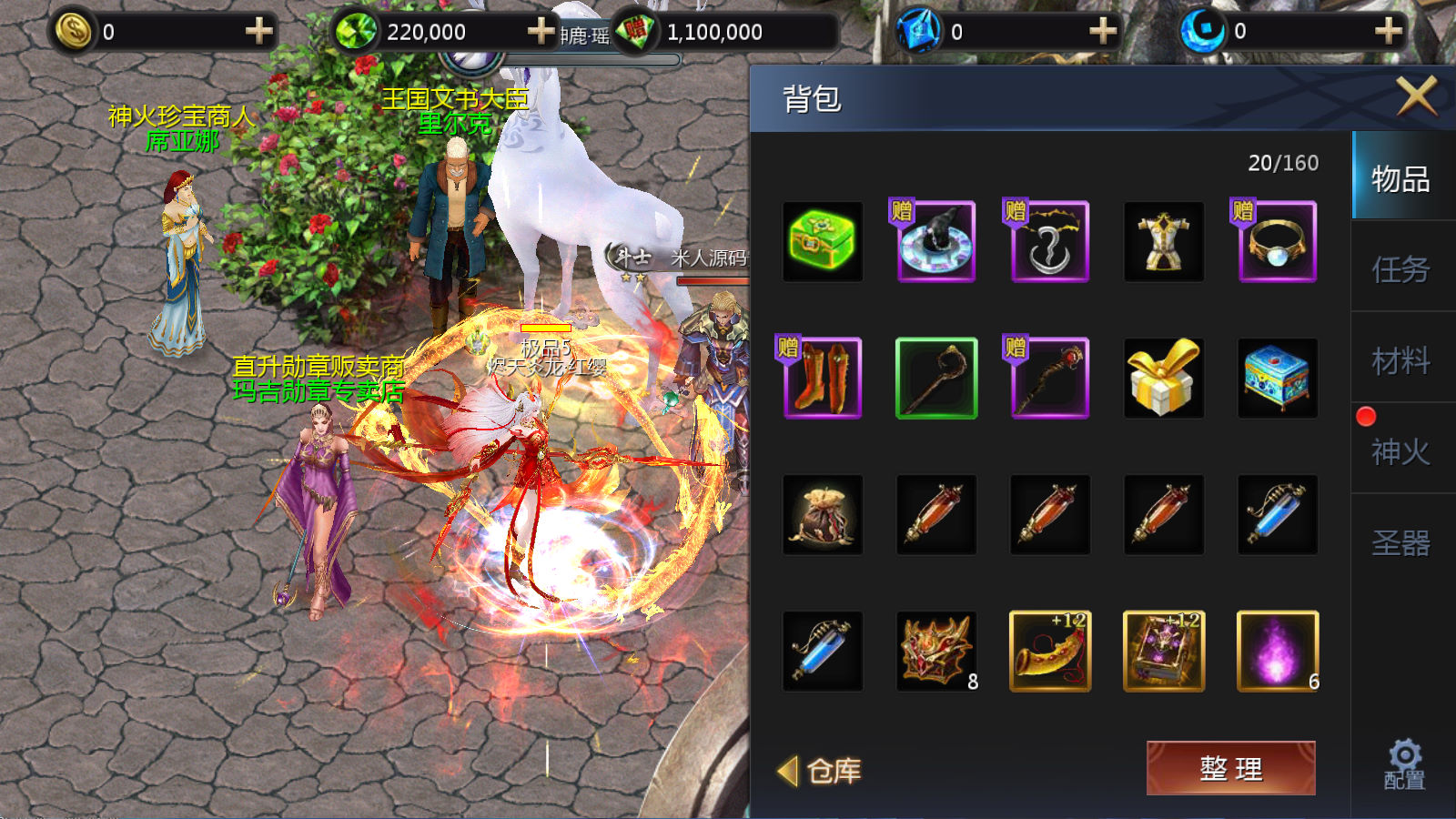 1、100级神火副本,包含4种100级神火。