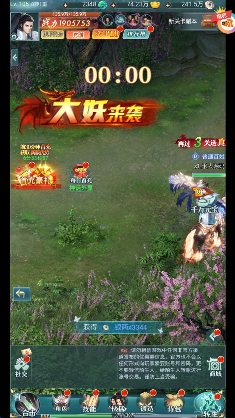 跨服服务器id:10001 开始