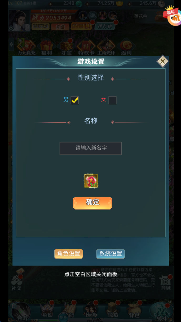 服务器名称:跨服1区