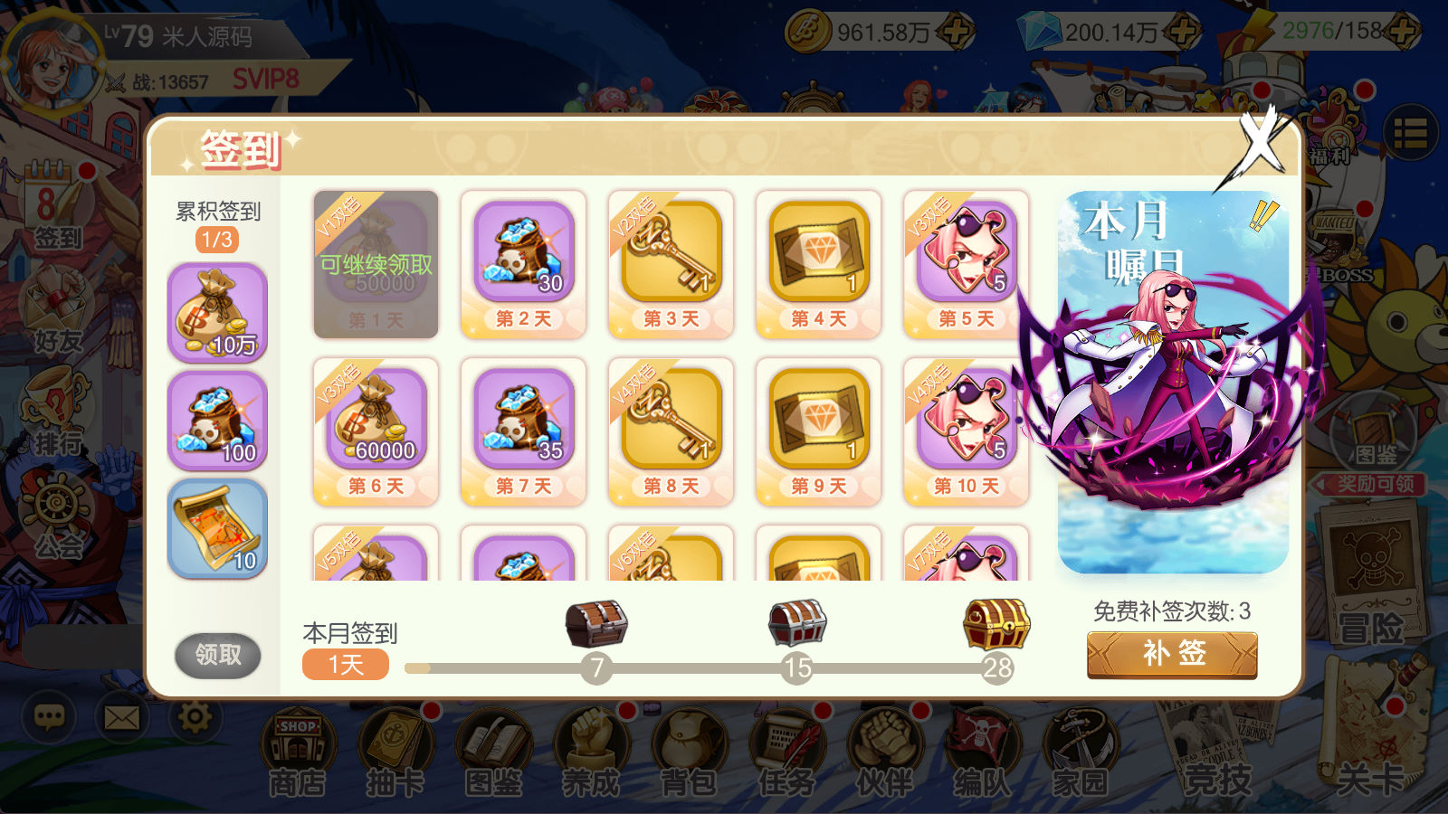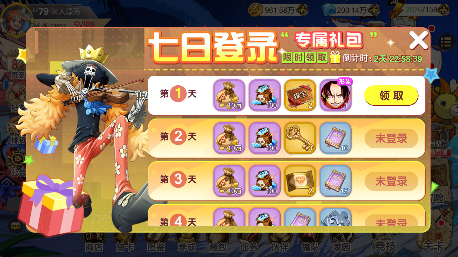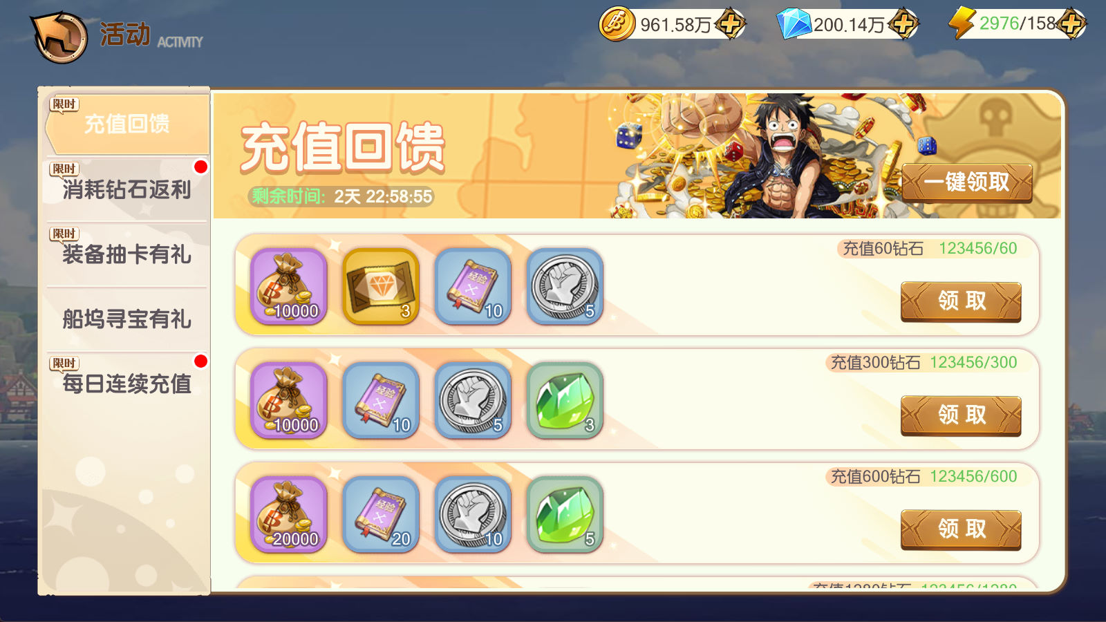 PS:金狮子和年轻·蒙奇d卡普激活的时候弹窗报错不用管,是没海报素材导致的,重上游戏就行!