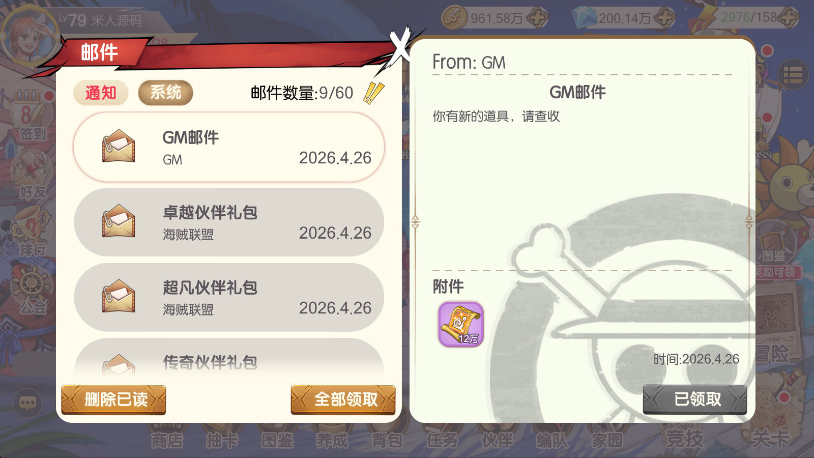卡牌回合手游【新口袋航海王平台币内购版】Linux手工服务端+管理后台+代理后台+GM授权后台+安卓+视频架设教程