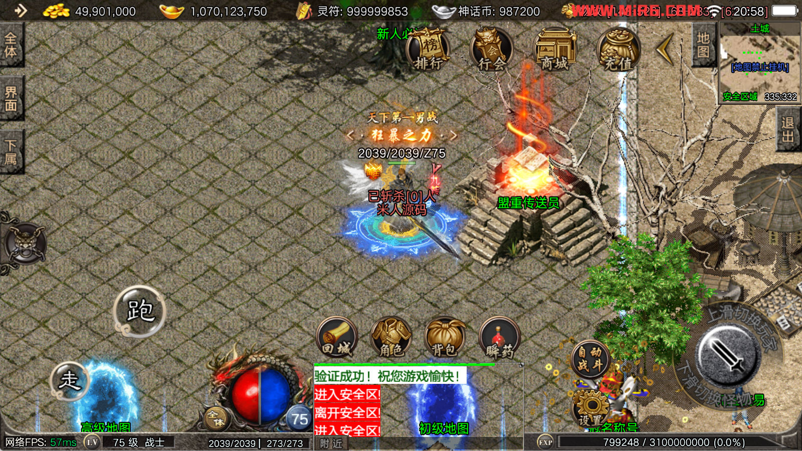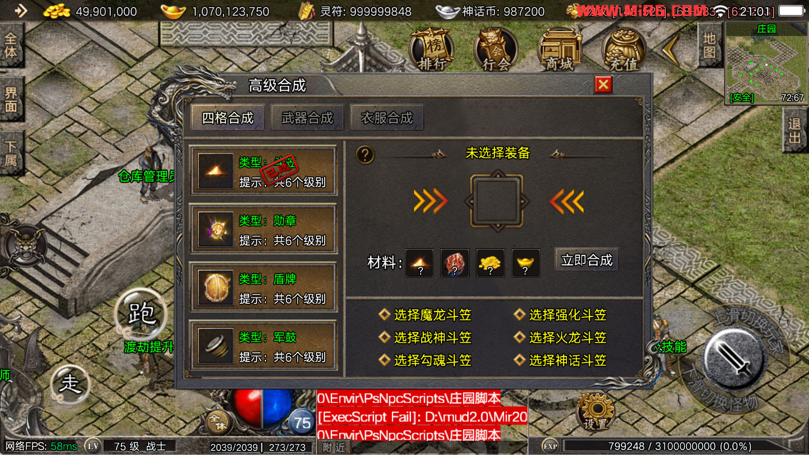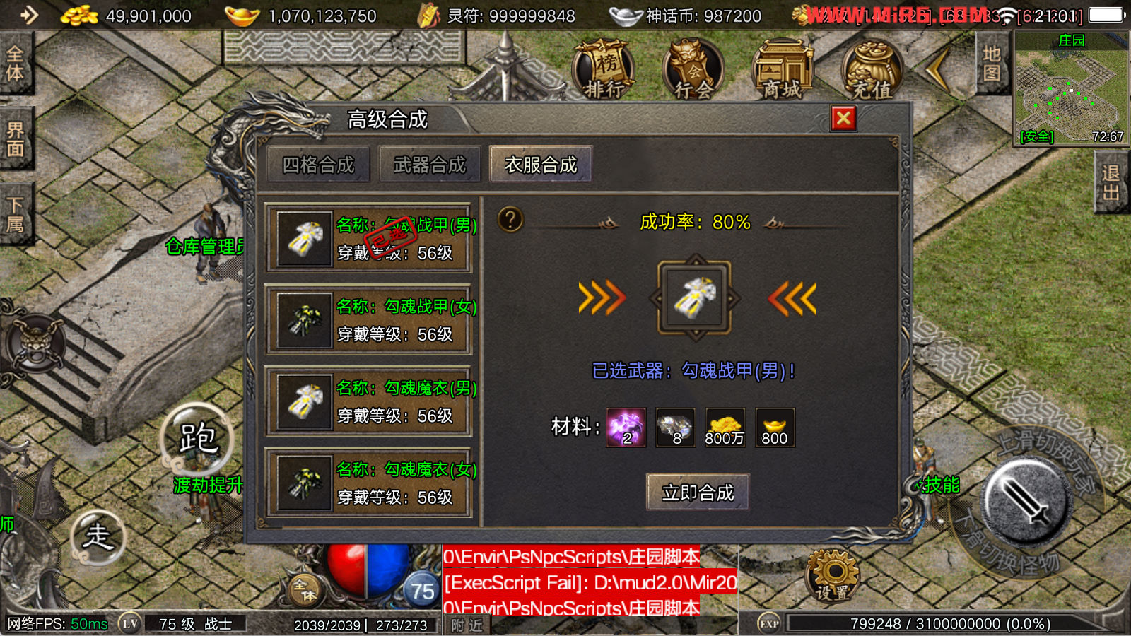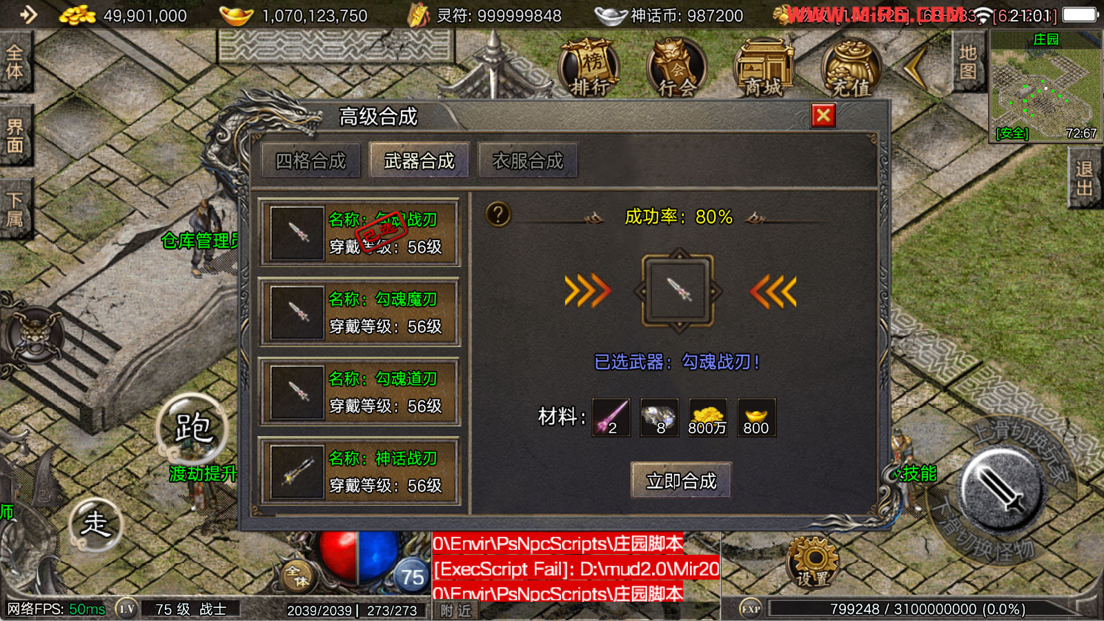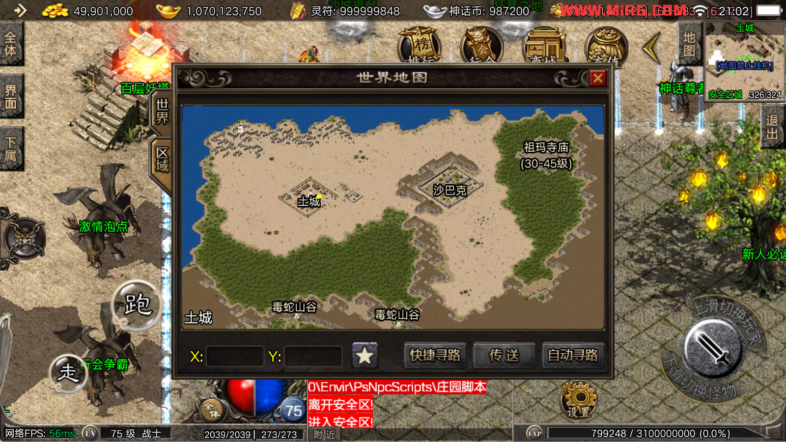 看到有很多眼神插件的NPC脚本命令会报错,功能无法使用,需要正版眼神授权才可以使用,介意请勿下载此端。我们设置GM账号,刷一个回城卷到盟重测试下其他功能。