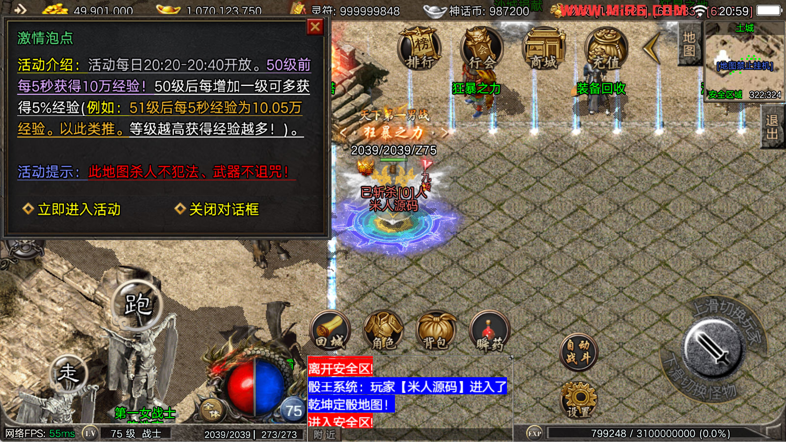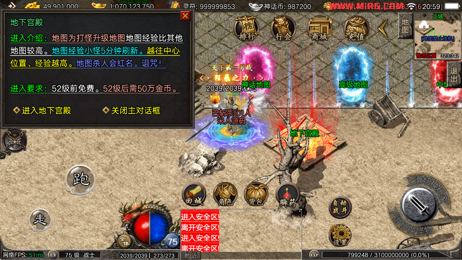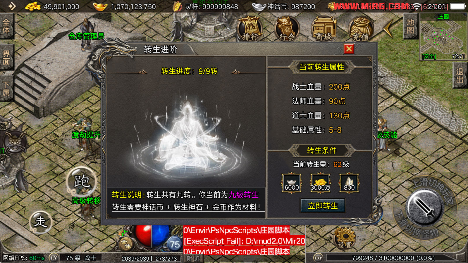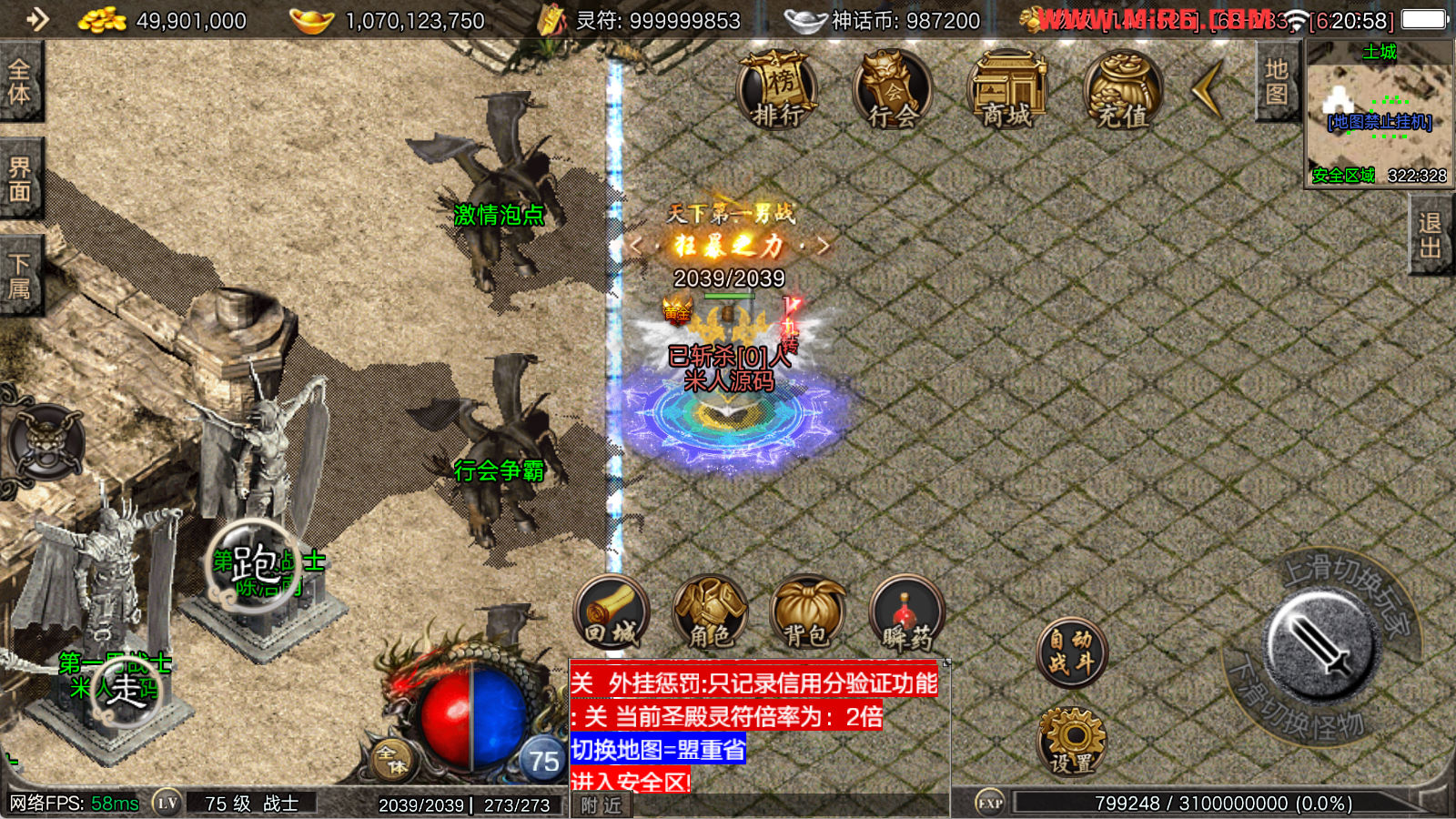 看到有很多眼神插件的NPC脚本命令会报错,功能无法使用,需要正版眼神授权才可以使用,介意请勿下载此端。我们设置GM账号,刷一个回城卷到盟重测试下其他功能。