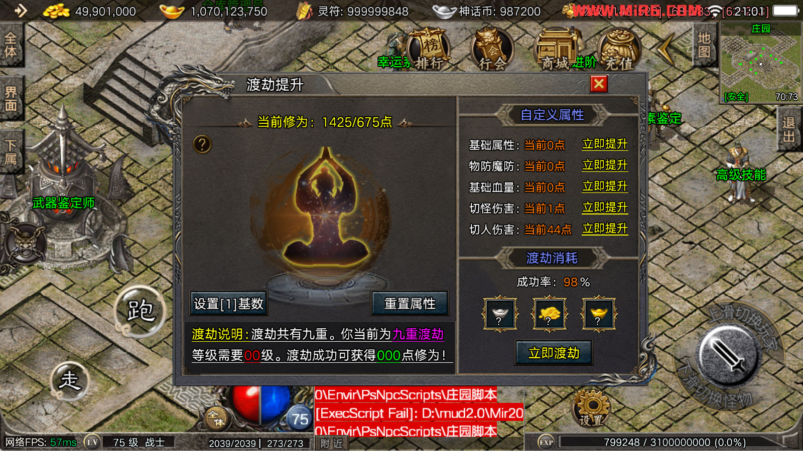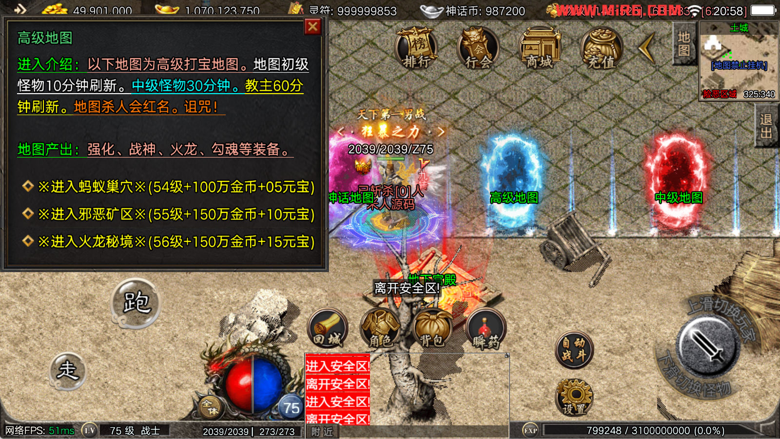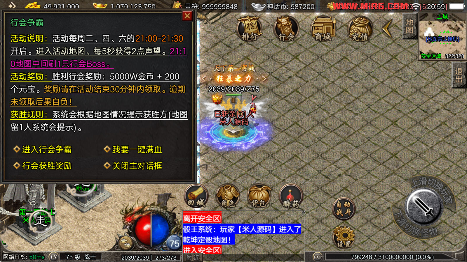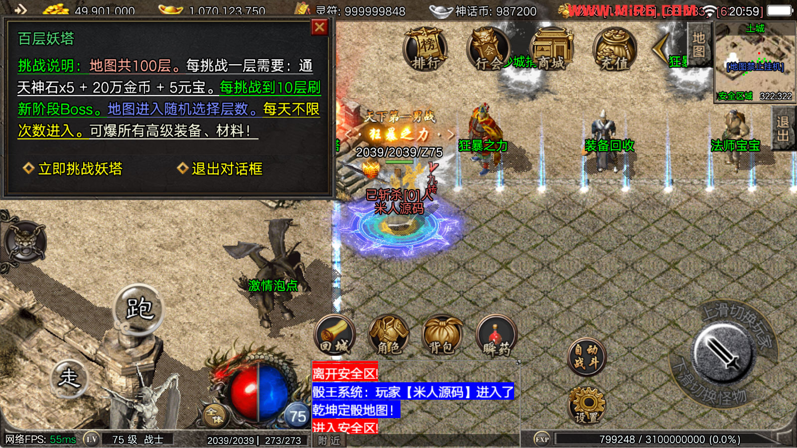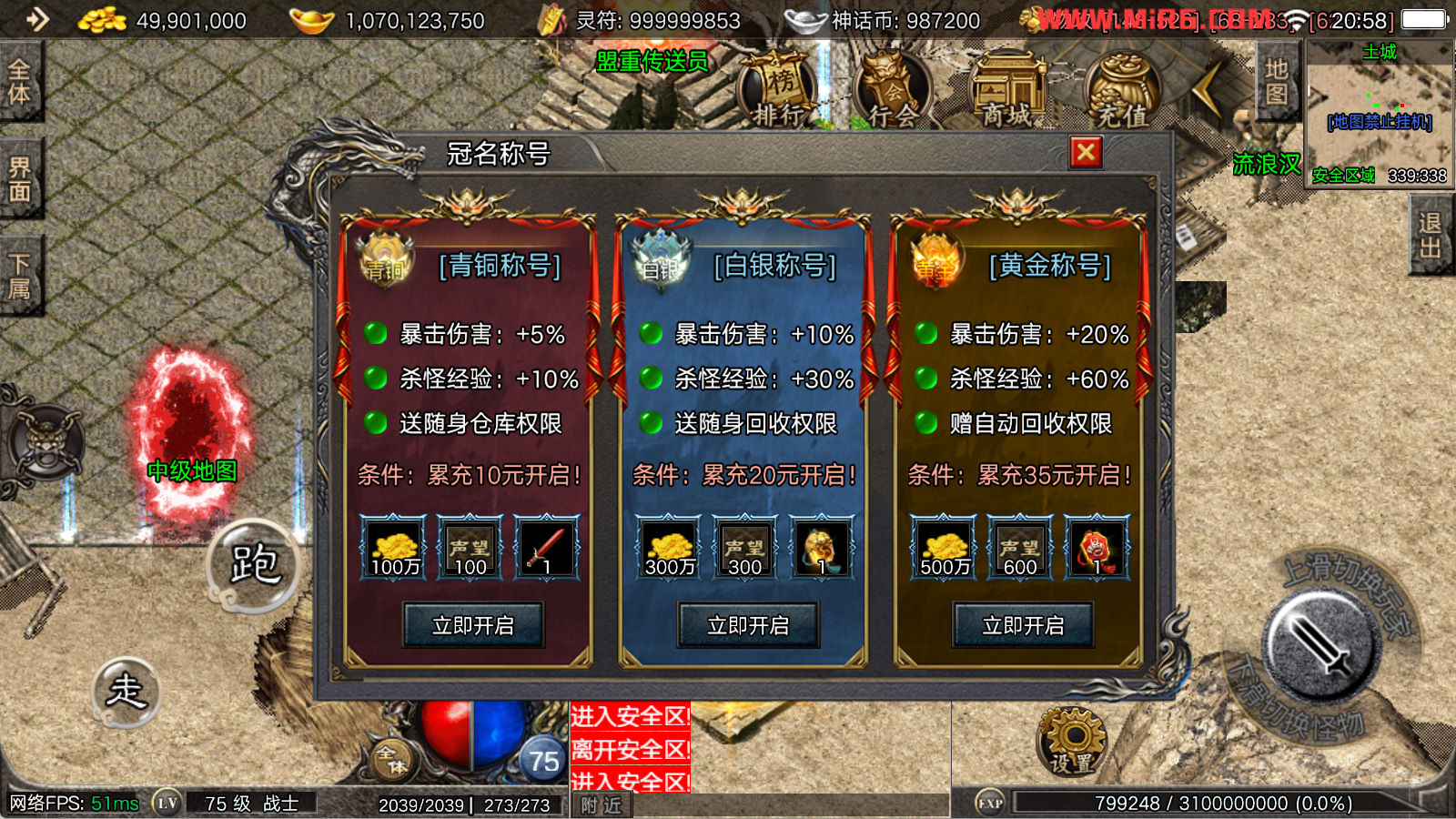 看到有很多眼神插件的NPC脚本命令会报错,功能无法使用,需要正版眼神授权才可以使用,介意请勿下载此端。我们设置GM账号,刷一个回城卷到盟重测试下其他功能。