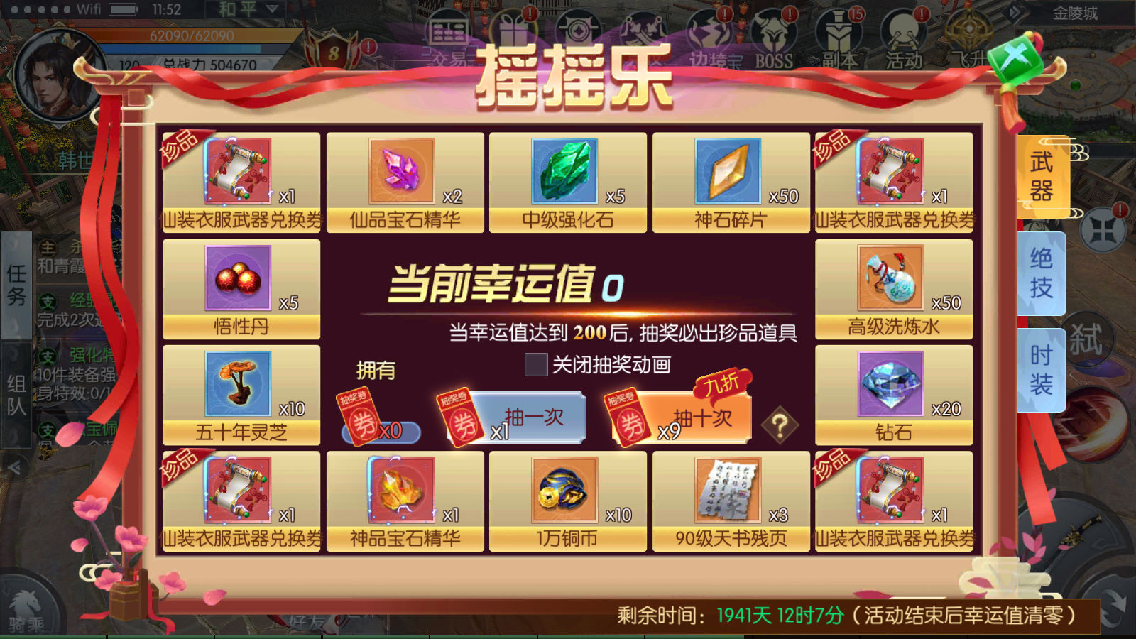 14.更新所有boss掉落648真冲卡,仙装衣服武器兑换券等