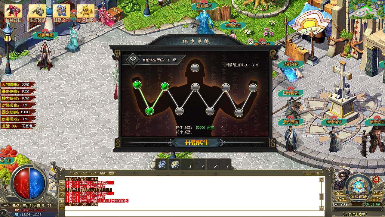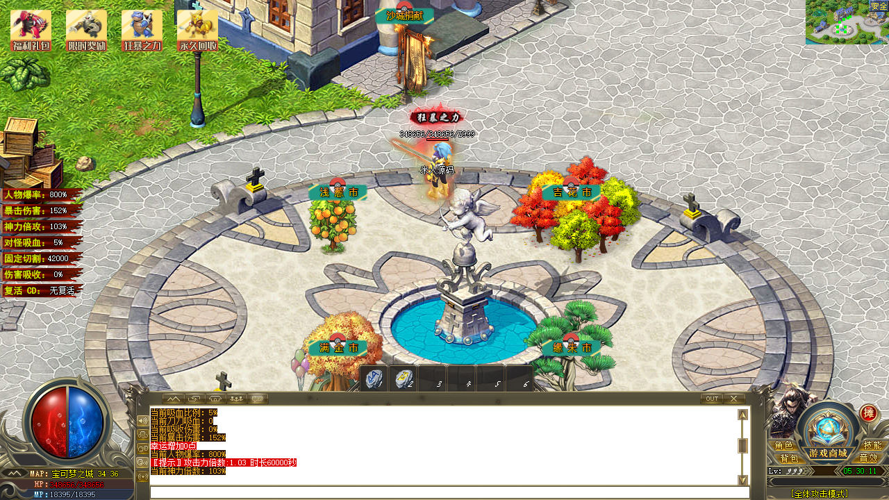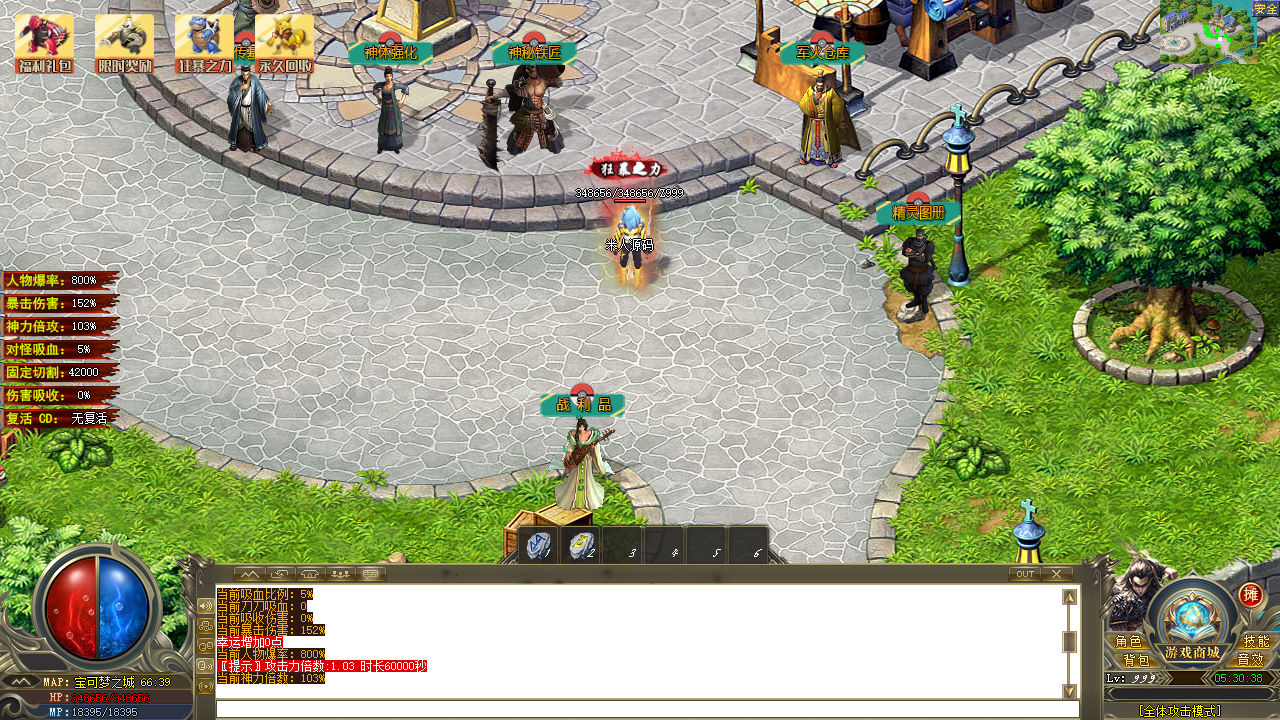 下面我们测试下游戏里的功能看看。好了,其他功能自行测试吧。更多的游戏资源可以访问www.MiR6.com下载,我们每款游戏资源均单独制作了独立的视频架设教程,让小白也可以快速上手游戏架设,快来体验自己做GM的乐趣吧!