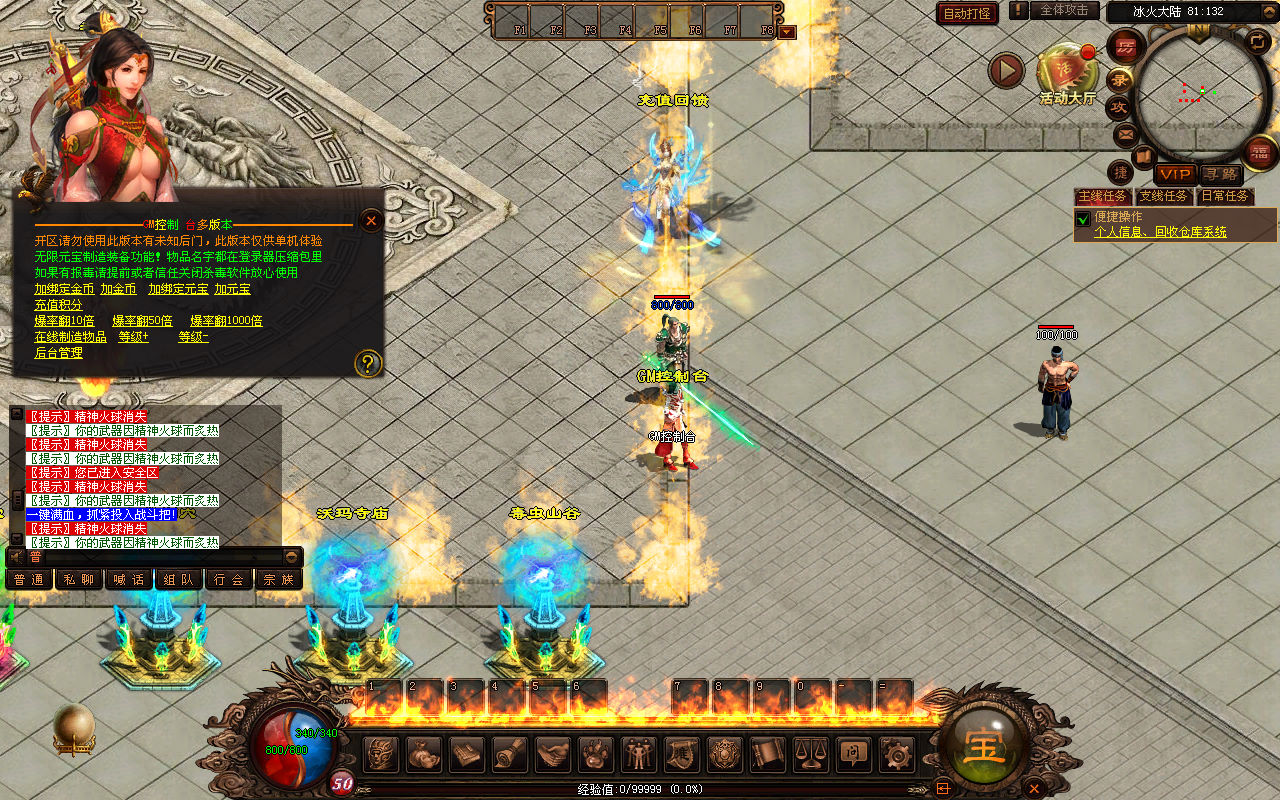 下面我们来测试下游戏里的功能看看。好了,其他功能就自行测试吧。更多的游戏资源可以访问www.MiR6.com下载,我们每款游戏资源均单独制作了独立的视频架设教程,让小白也可以快速上手游戏架设,快来体验自己做GM的乐趣吧!