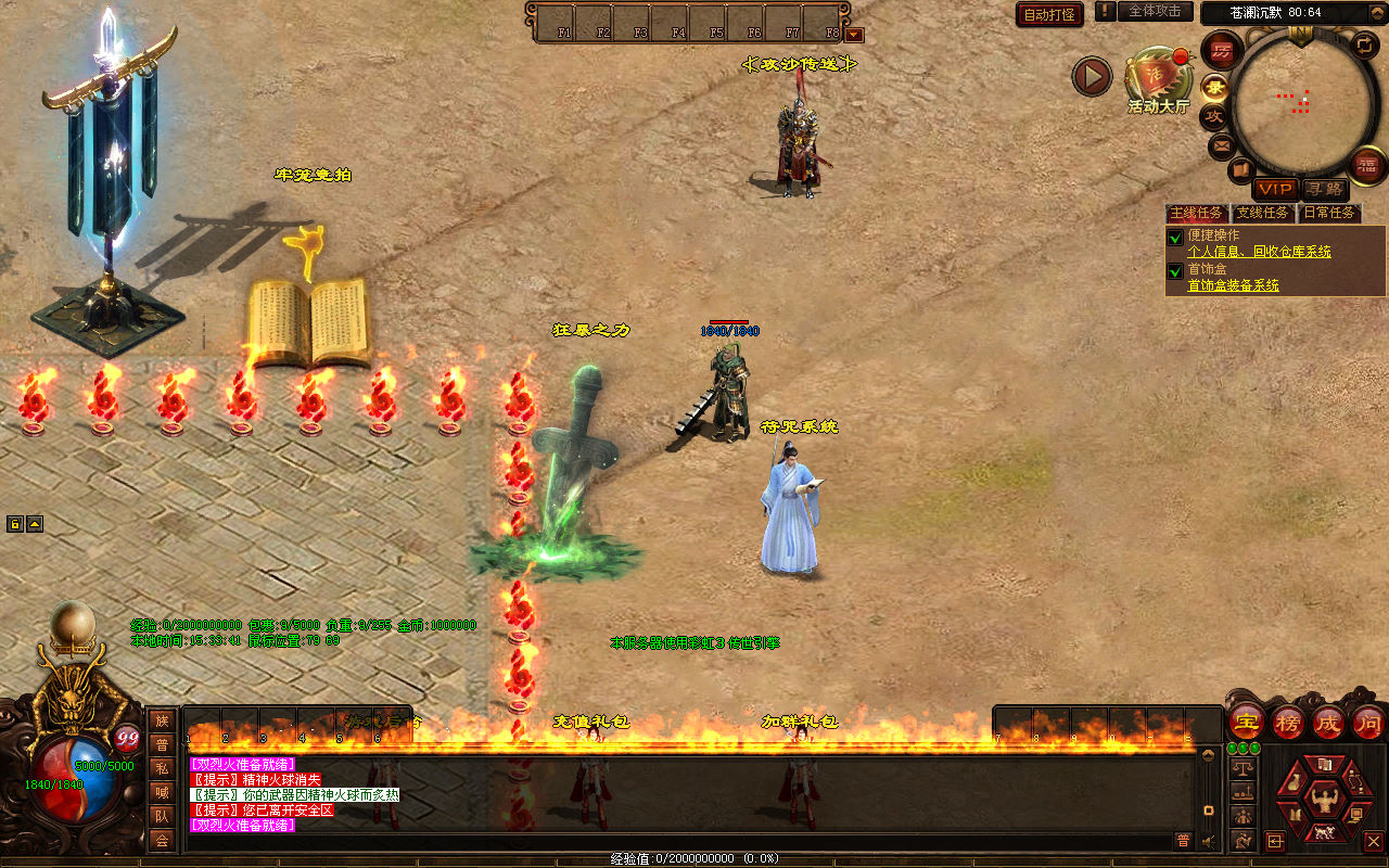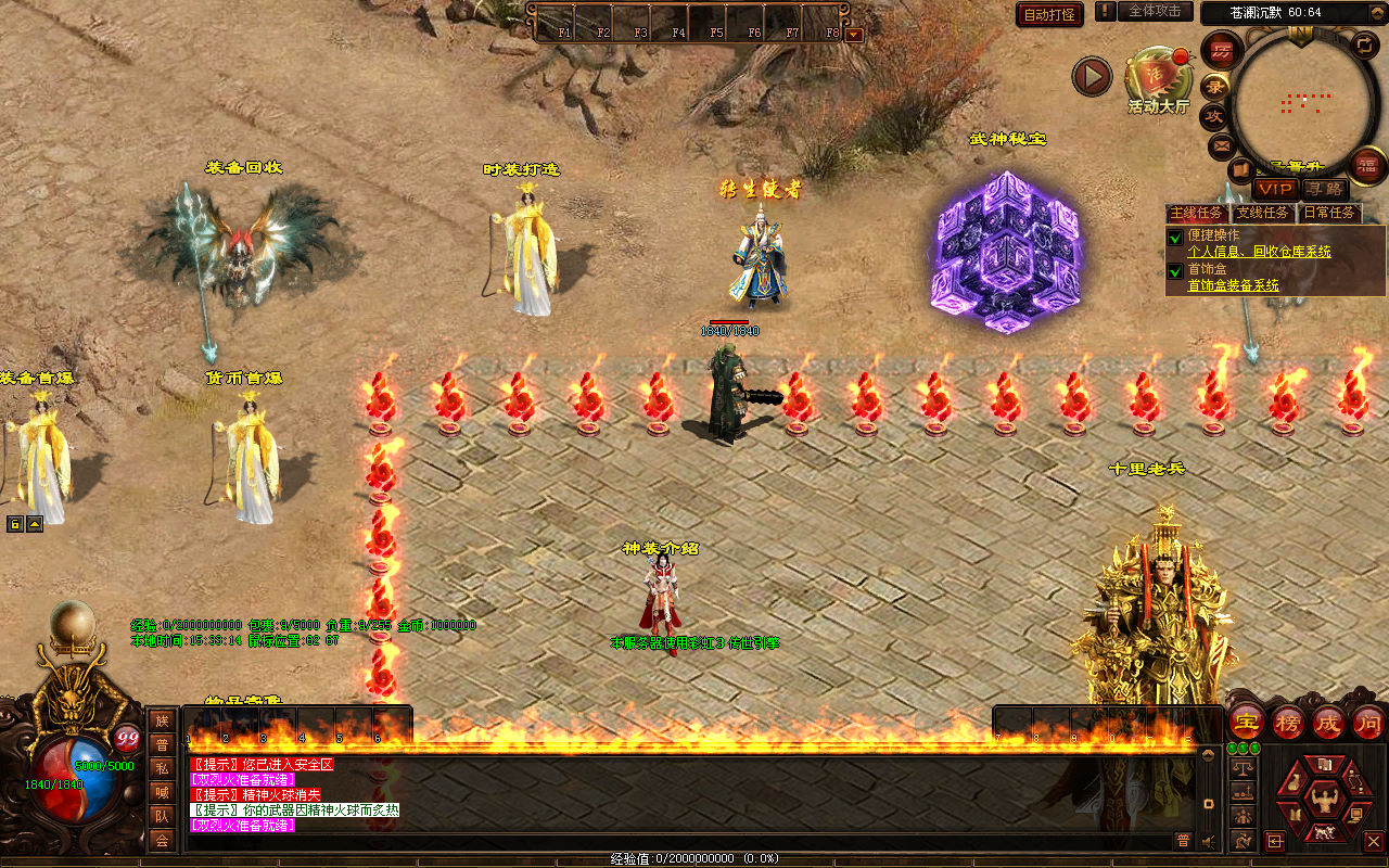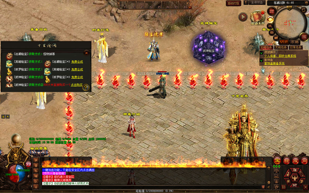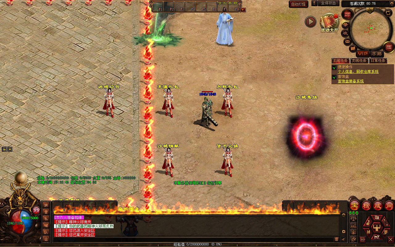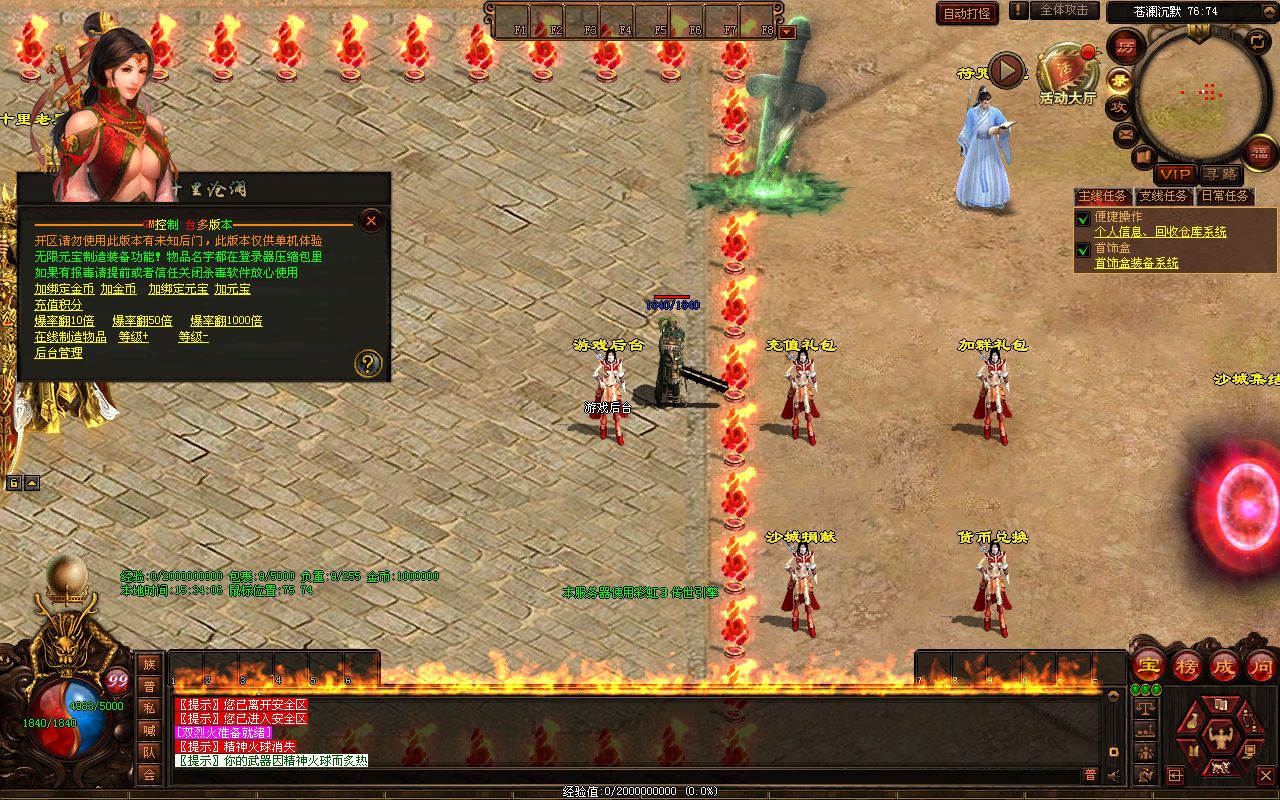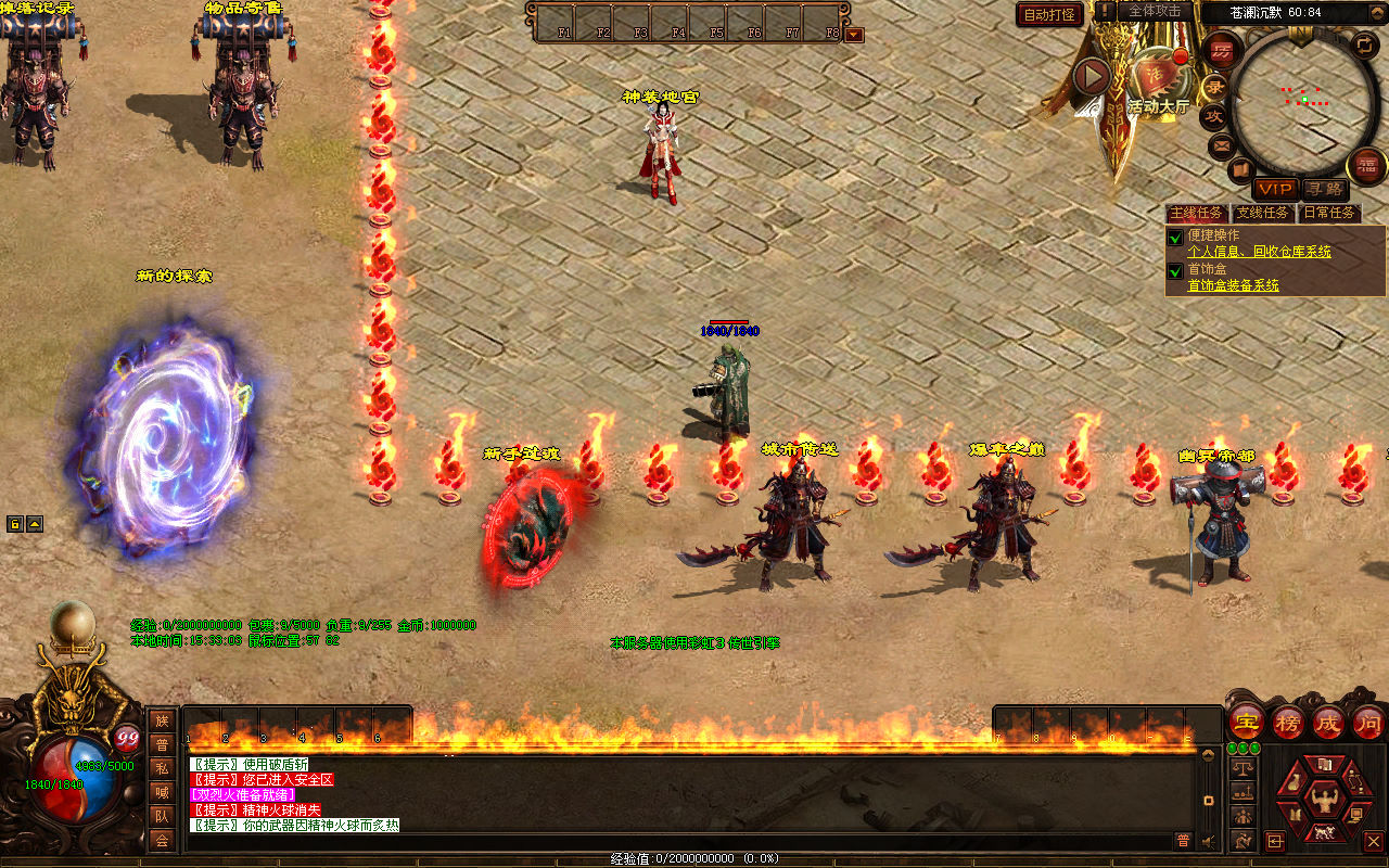 下面我们来测试下游戏里的功能看看。好了,其他功能就自行测试吧。更多的游戏资源可以访问www.MiR6.com下载,我们每款游戏资源均单独制作了独立的视频架设教程,让小白也可以快速上手游戏架设,快来体验自己做GM的乐趣吧!