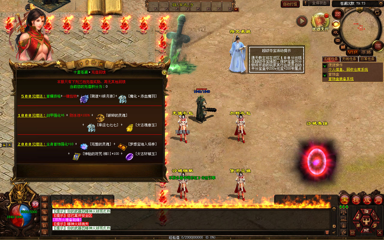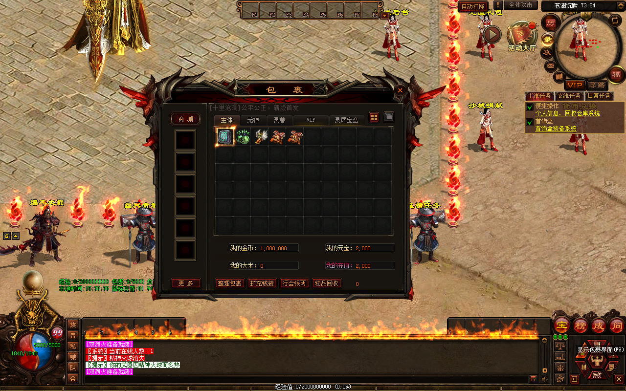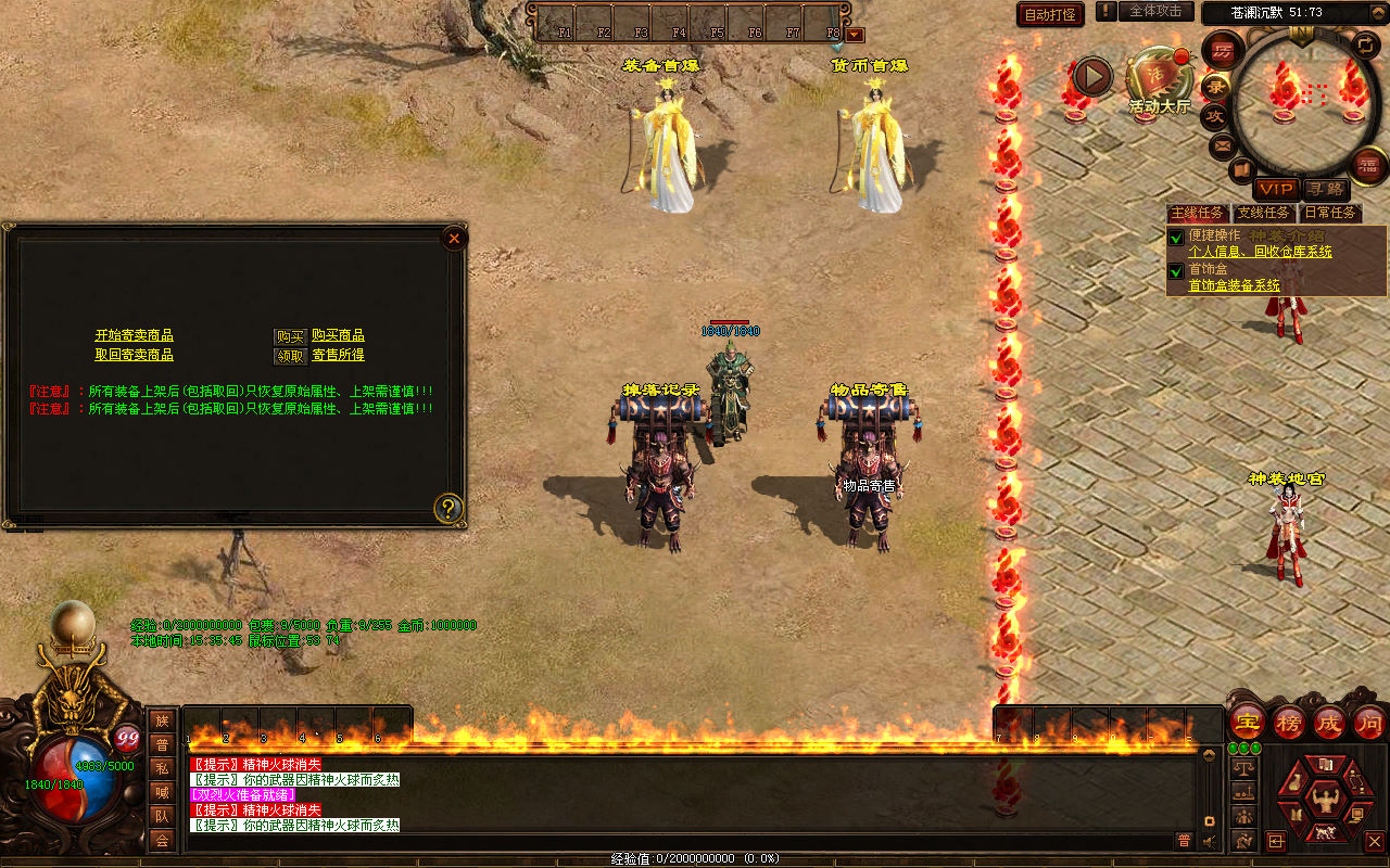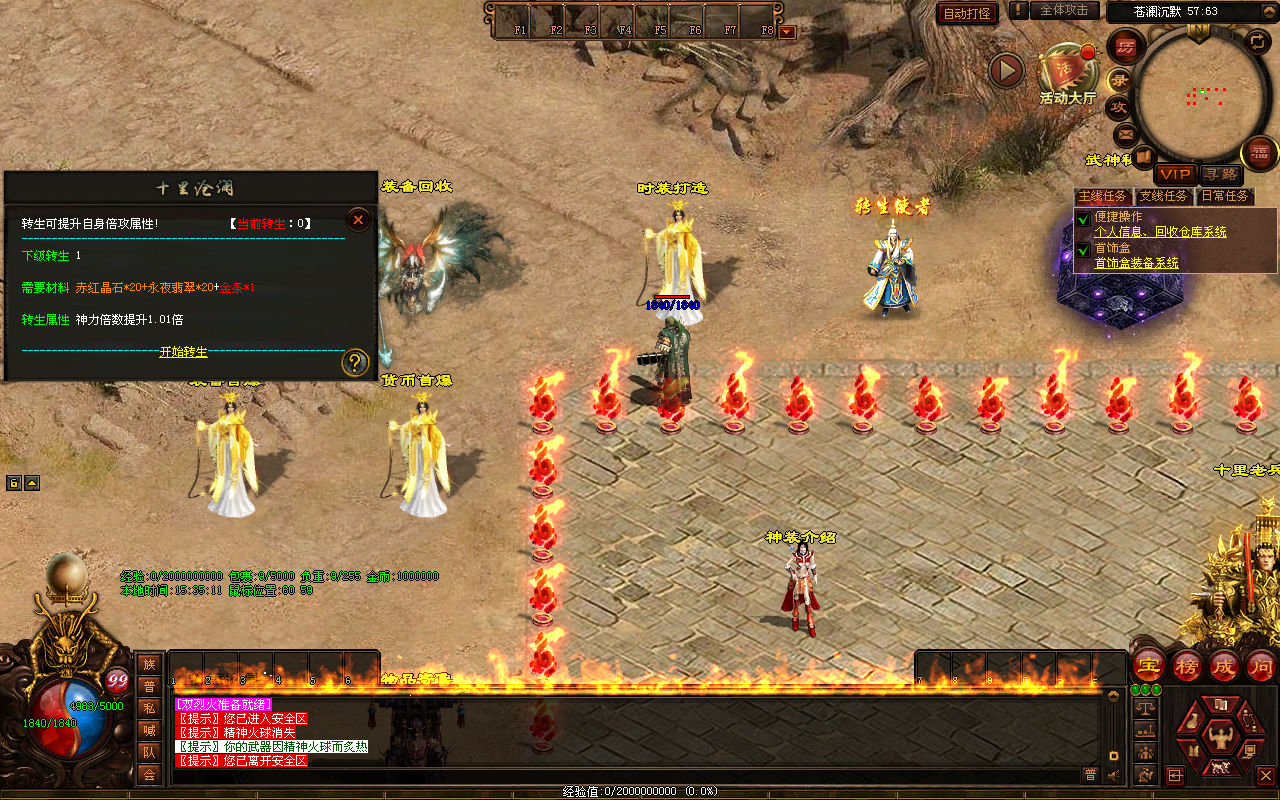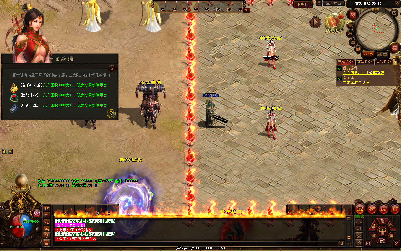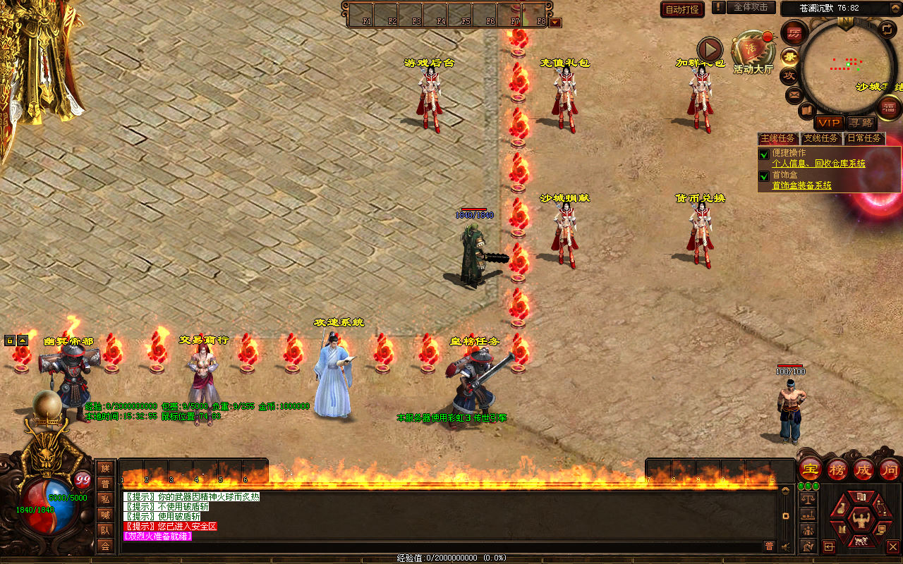 下面我们来测试下游戏里的功能看看。好了,其他功能就自行测试吧。更多的游戏资源可以访问www.MiR6.com下载,我们每款游戏资源均单独制作了独立的视频架设教程,让小白也可以快速上手游戏架设,快来体验自己做GM的乐趣吧!