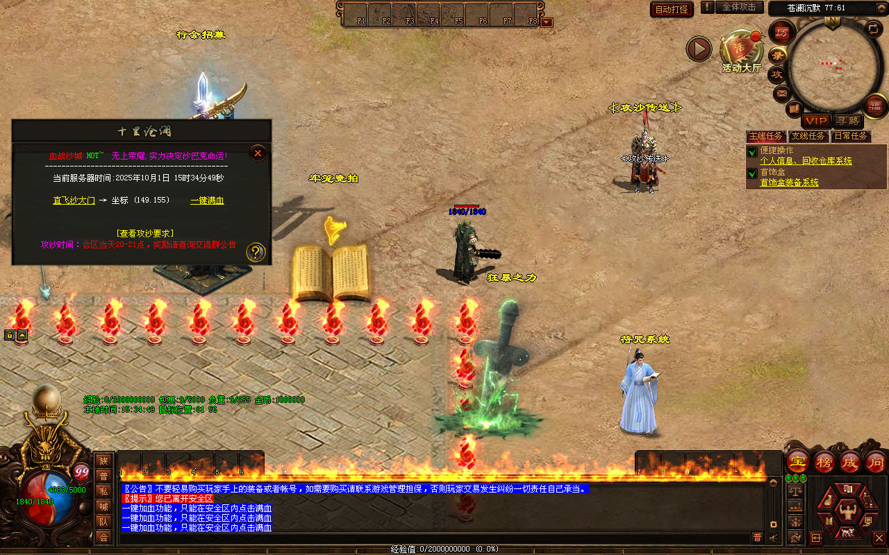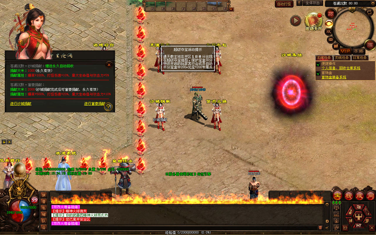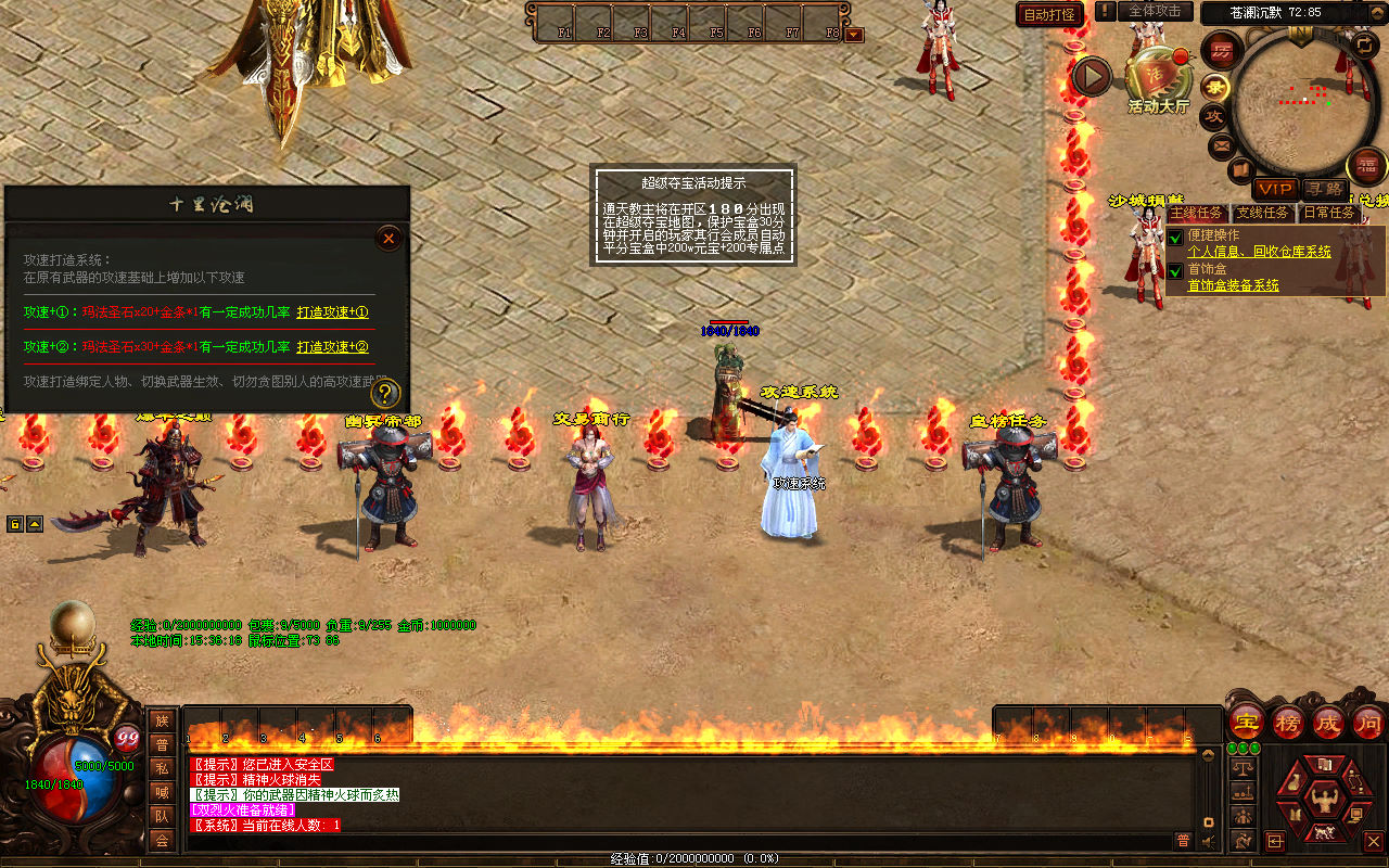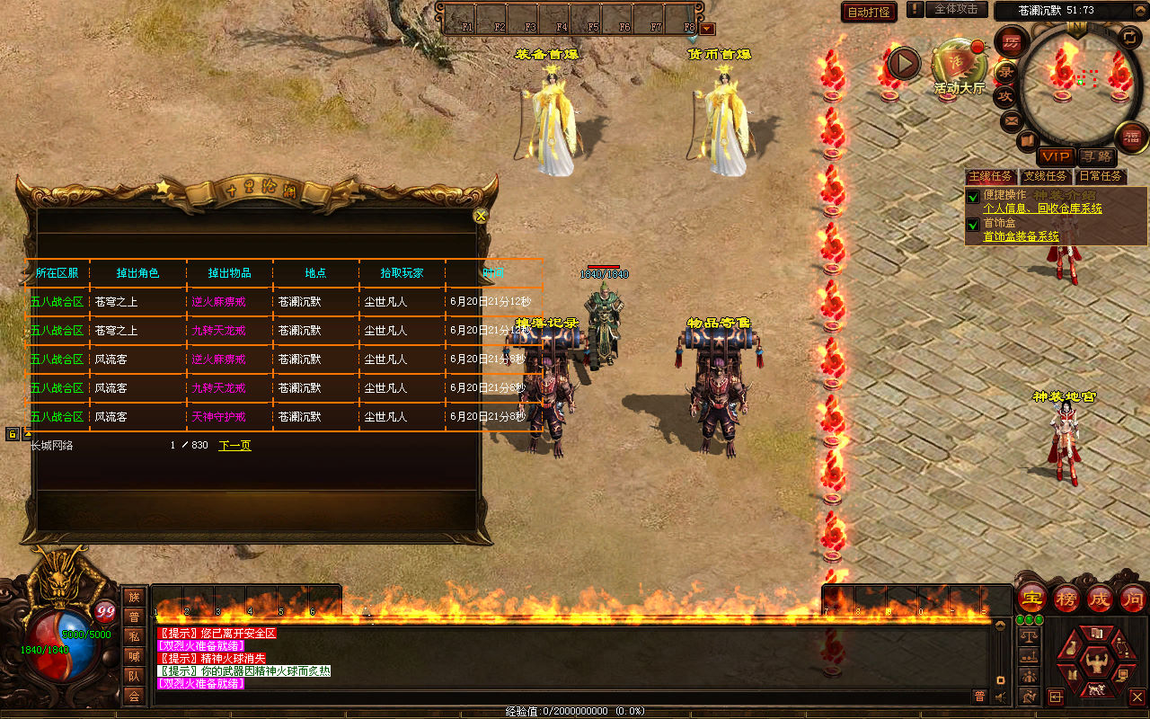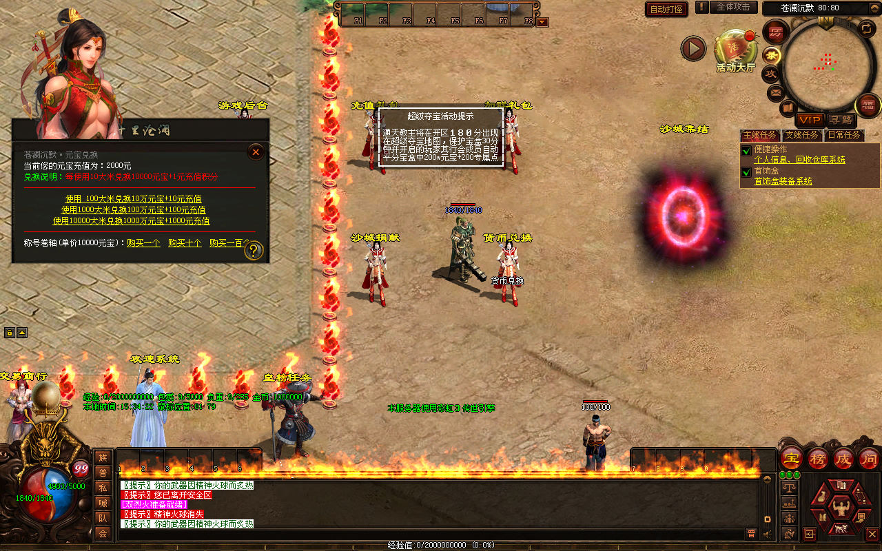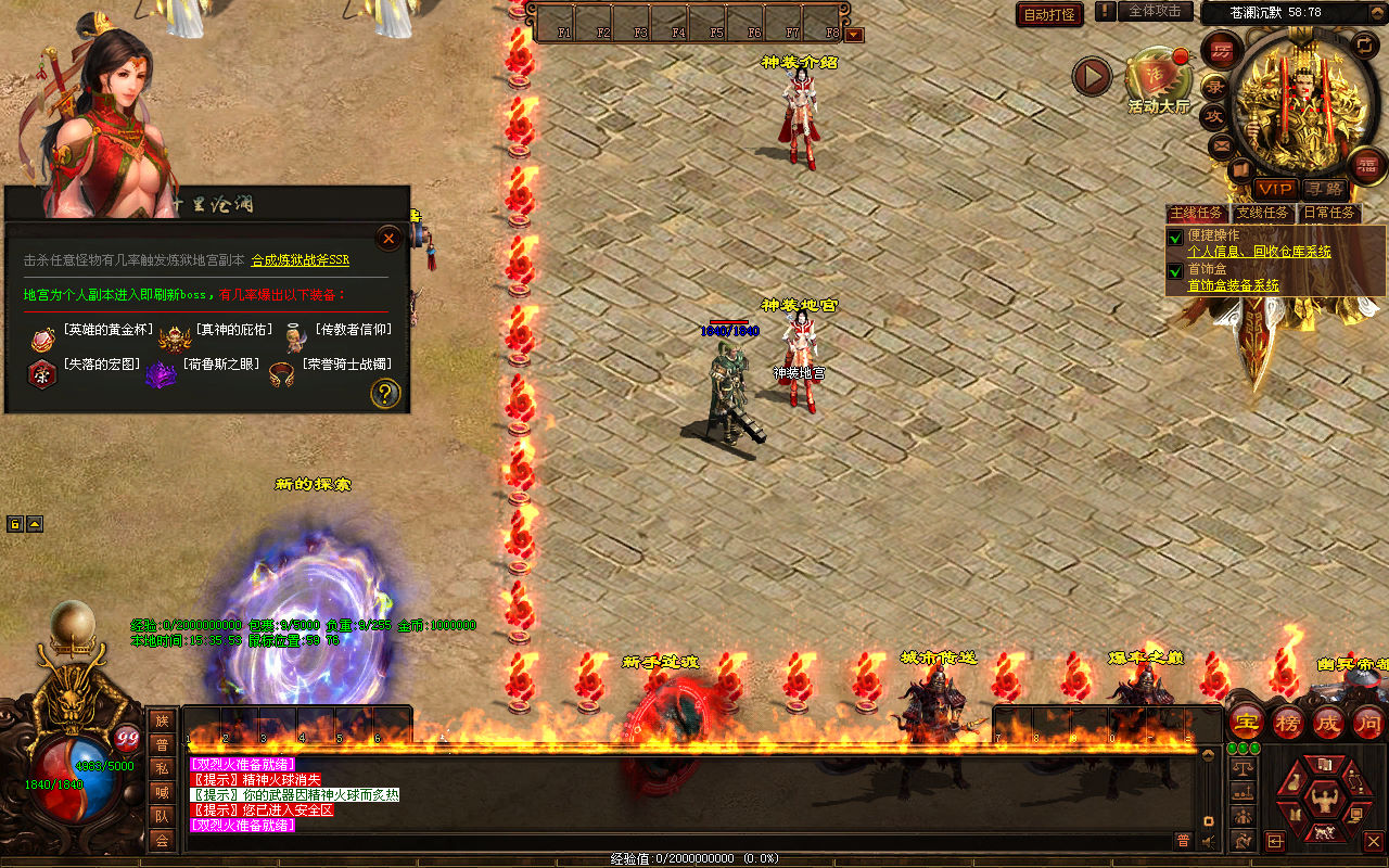 下面我们来测试下游戏里的功能看看。好了,其他功能就自行测试吧。更多的游戏资源可以访问www.MiR6.com下载,我们每款游戏资源均单独制作了独立的视频架设教程,让小白也可以快速上手游戏架设,快来体验自己做GM的乐趣吧!