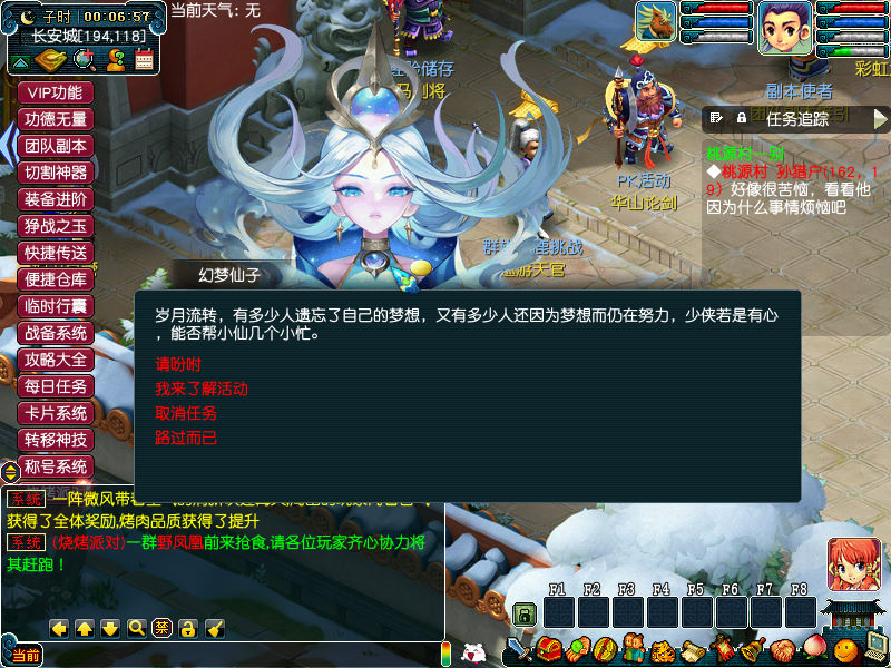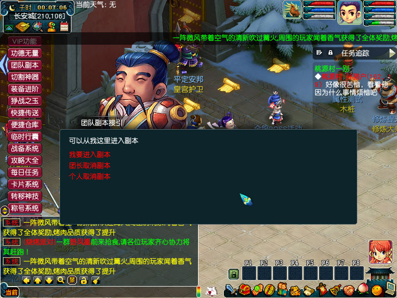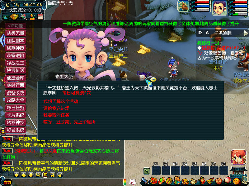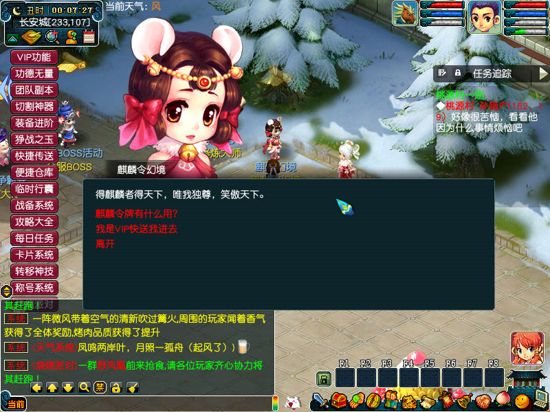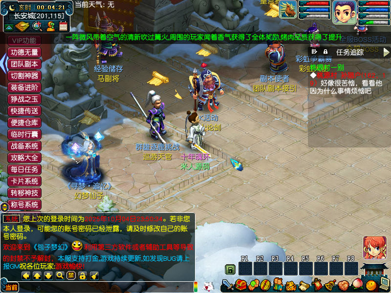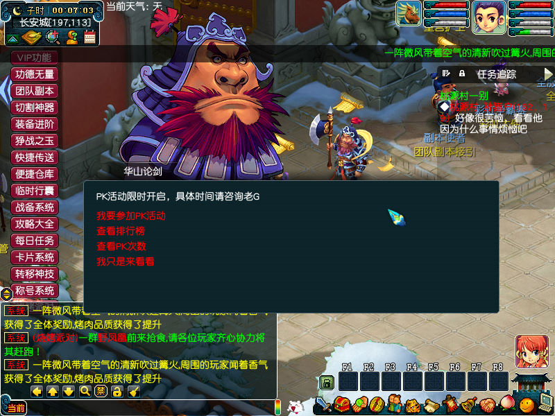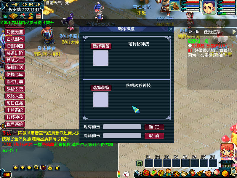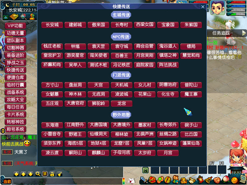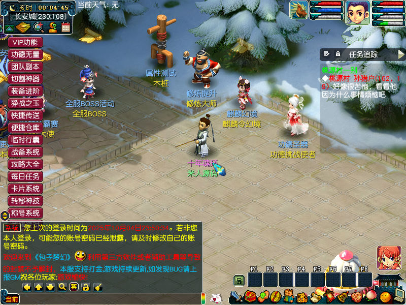 下面我们测试下游戏里的功能看看。进入某些位置会出现老闪退情况(目前测试时在新手村,进入新手任务那一块老是闪退,原因未知,源码里自行调试修复看看吧)好了,其他功能就自行测试吧。