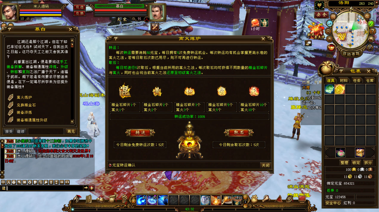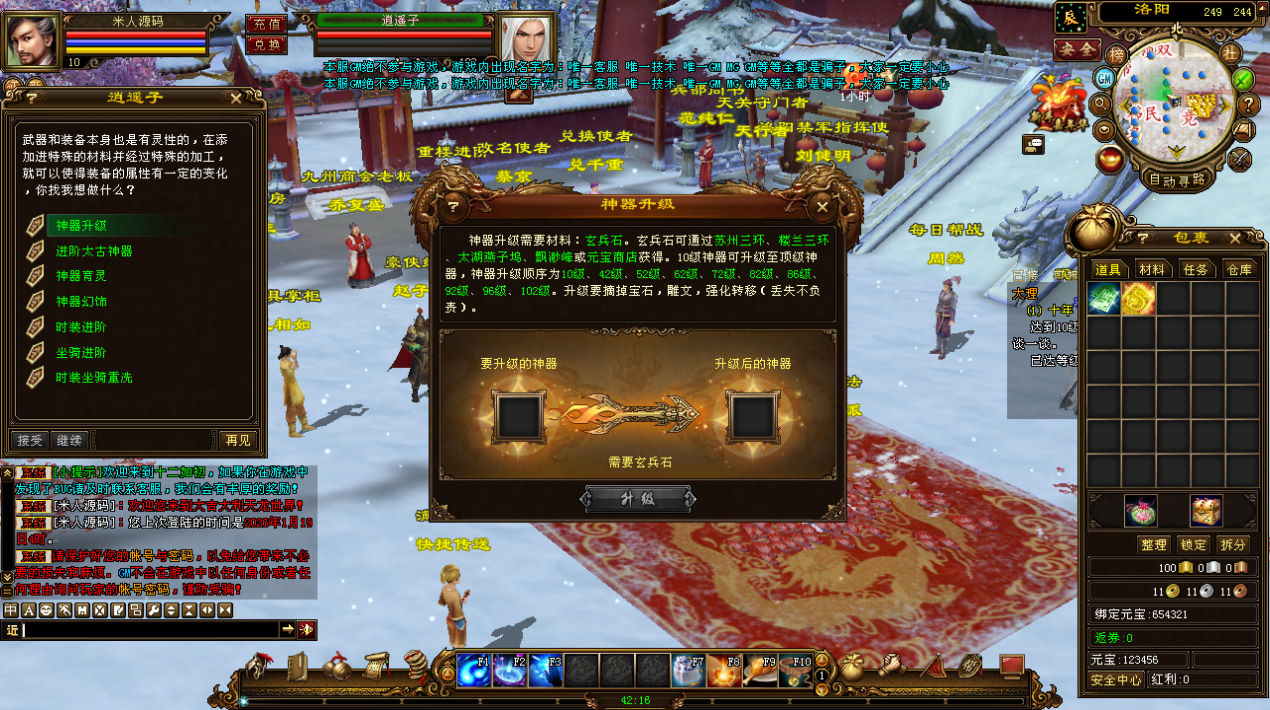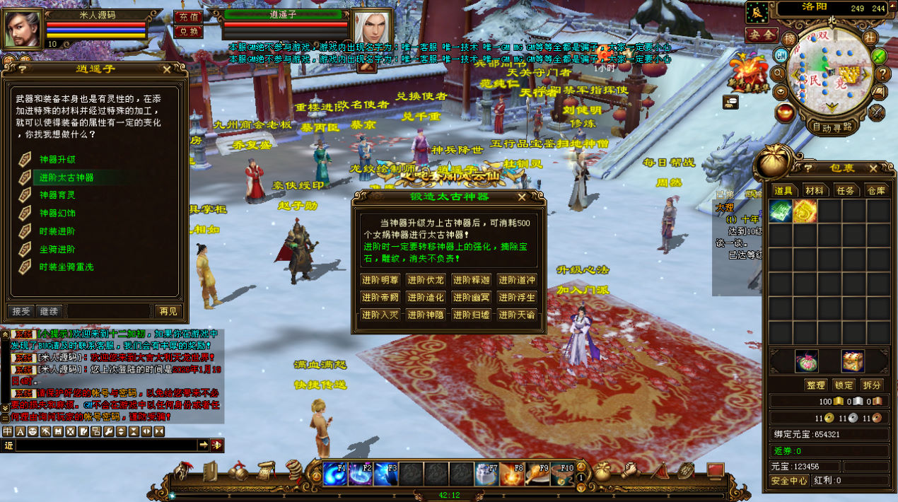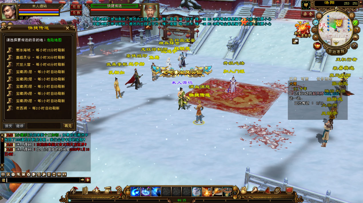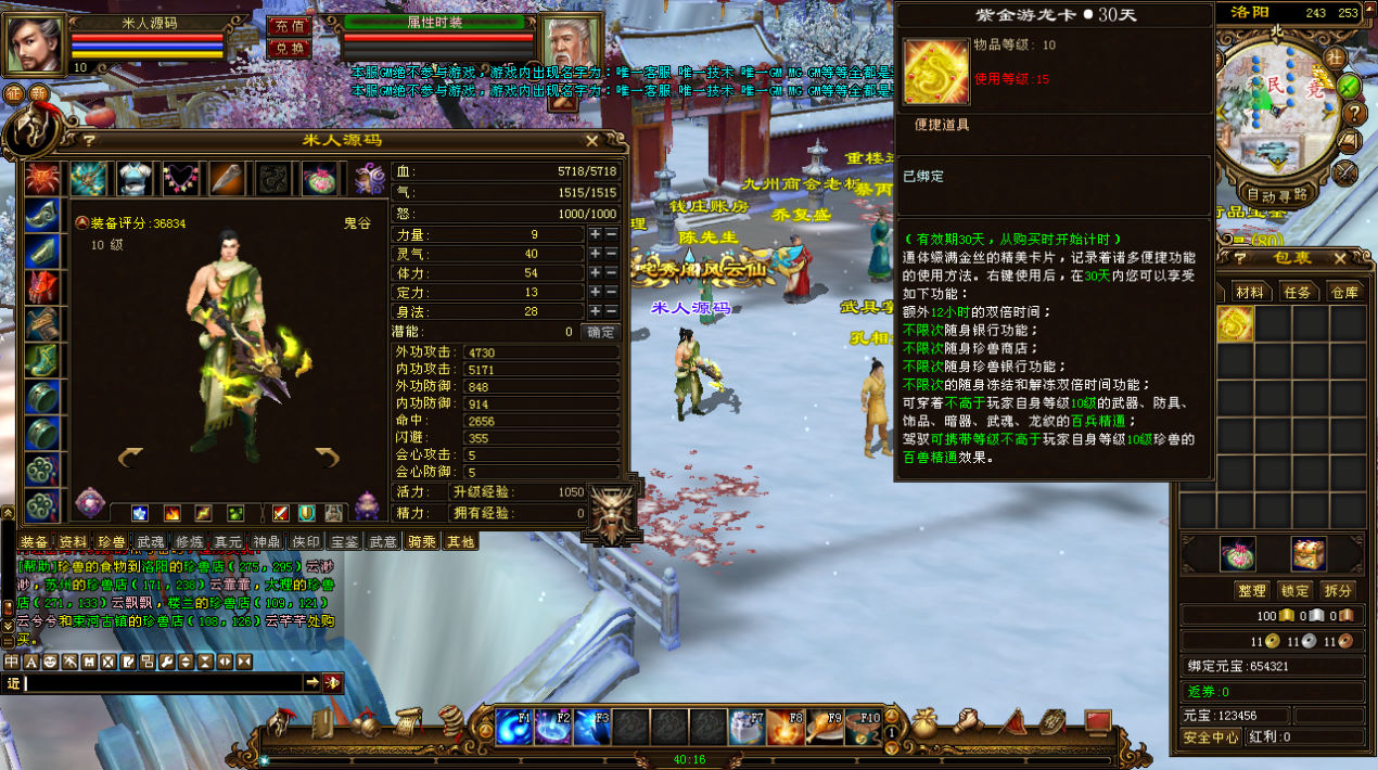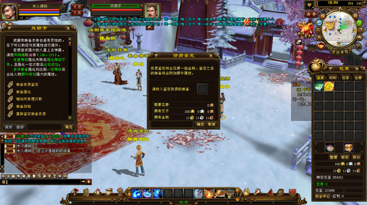 下面我们来测试下游戏里的功能看看。好了,其他功能就自行测试吧。更多的游戏资源可以访问www.MiR6.com下载,我们每款游戏资源均单独制作了独立的视频架设教程,让小白也可以快速上手游戏架设,快来体验自己做GM的乐趣吧!