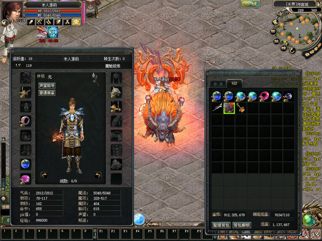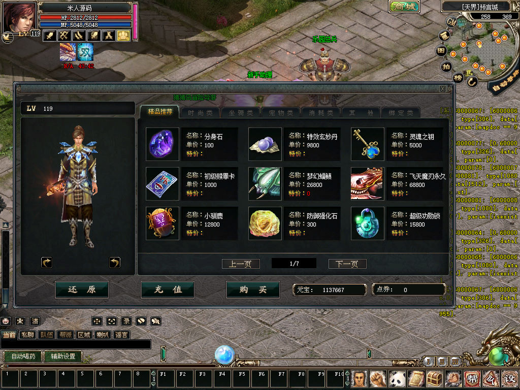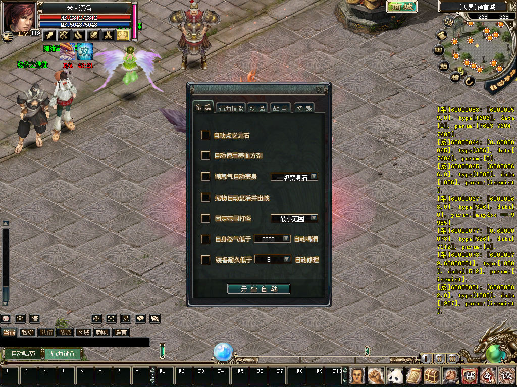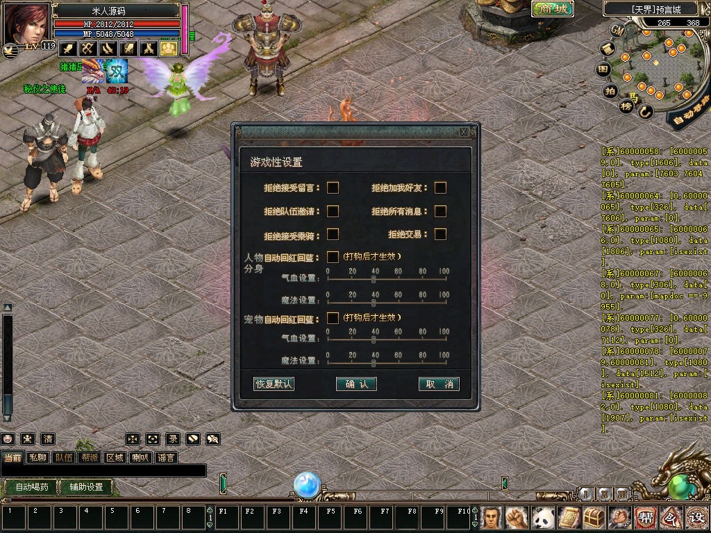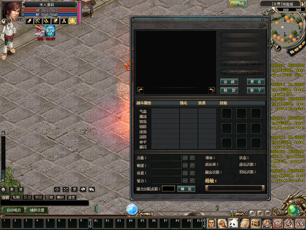 下面我们来测试下游戏里的功能看看。好了,其他功能就自行测试吧。更多的游戏资源可以访问www.MiR6.com下载,我们每款游戏资源均单独制作了独立的视频架设教程,让小白也可以快速上手游戏架设,快来体验自己做GM的乐趣吧!