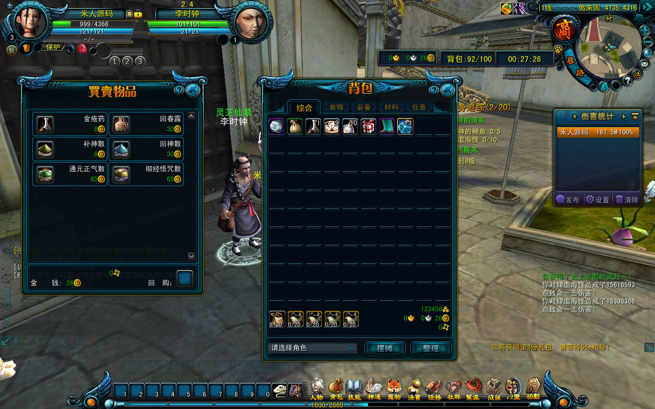 下面我们进去游戏看看游戏里的功能和GM命令使用。^add_item 102 其中102是物品ID。自己通过物品ID去查找物品。