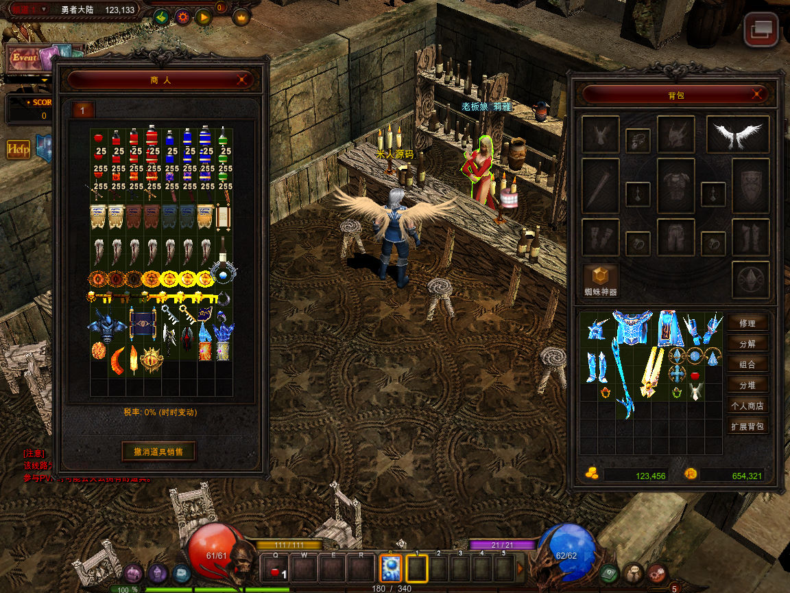 下面我们来测试下游戏里的功能看看。好了,其他功能就自行测试吧。更多的游戏资源可以访问www.MiR6.com下载,我们每款游戏资源均单独制作了独立的视频架设教程,让小白也可以快速上手游戏架设,快来体验自己做GM的乐趣吧!