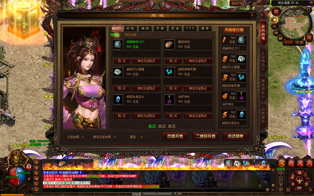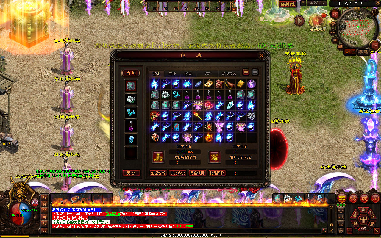 下面我们来测试下游戏里的功能看看。好了,其他功能就自行测试吧。更多的游戏资源可以访问www.MiR6.com下载,我们每款游戏资源均单独制作了独立的视频架设教程,让小白也可以快速上手游戏架设,快来体验自己做GM的乐趣吧!