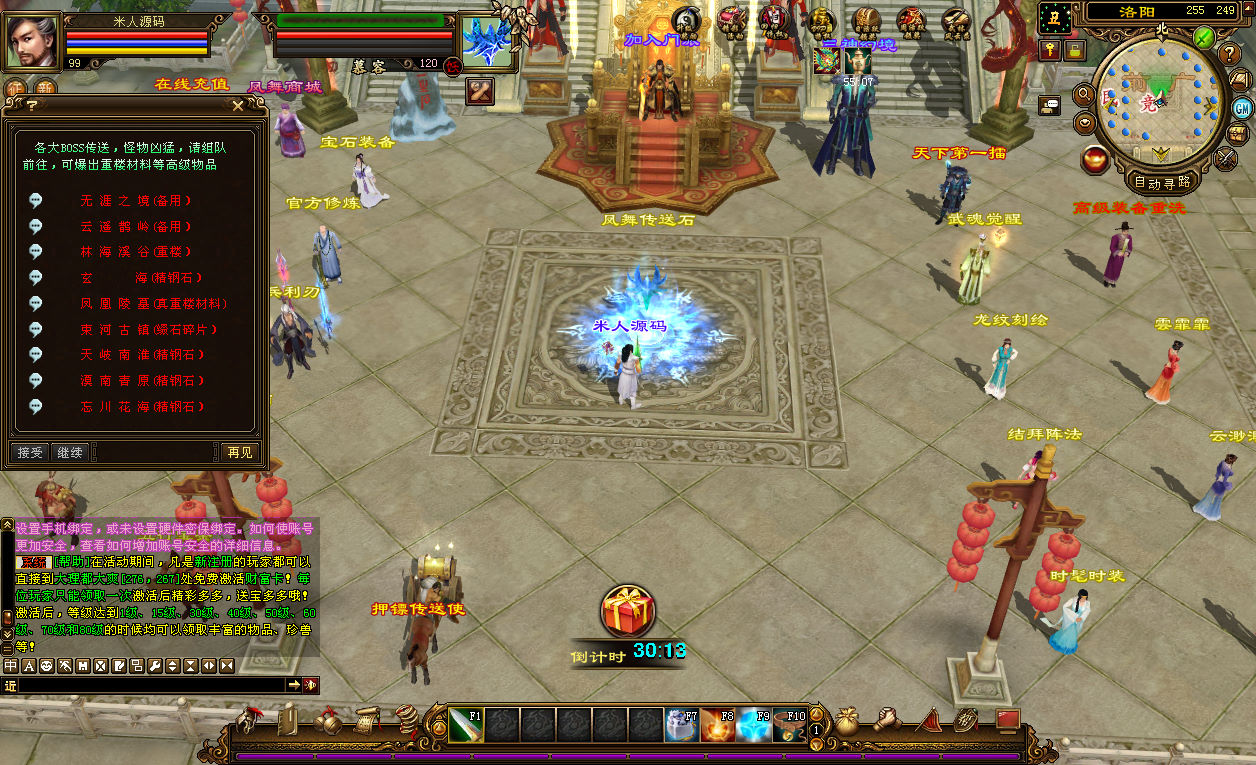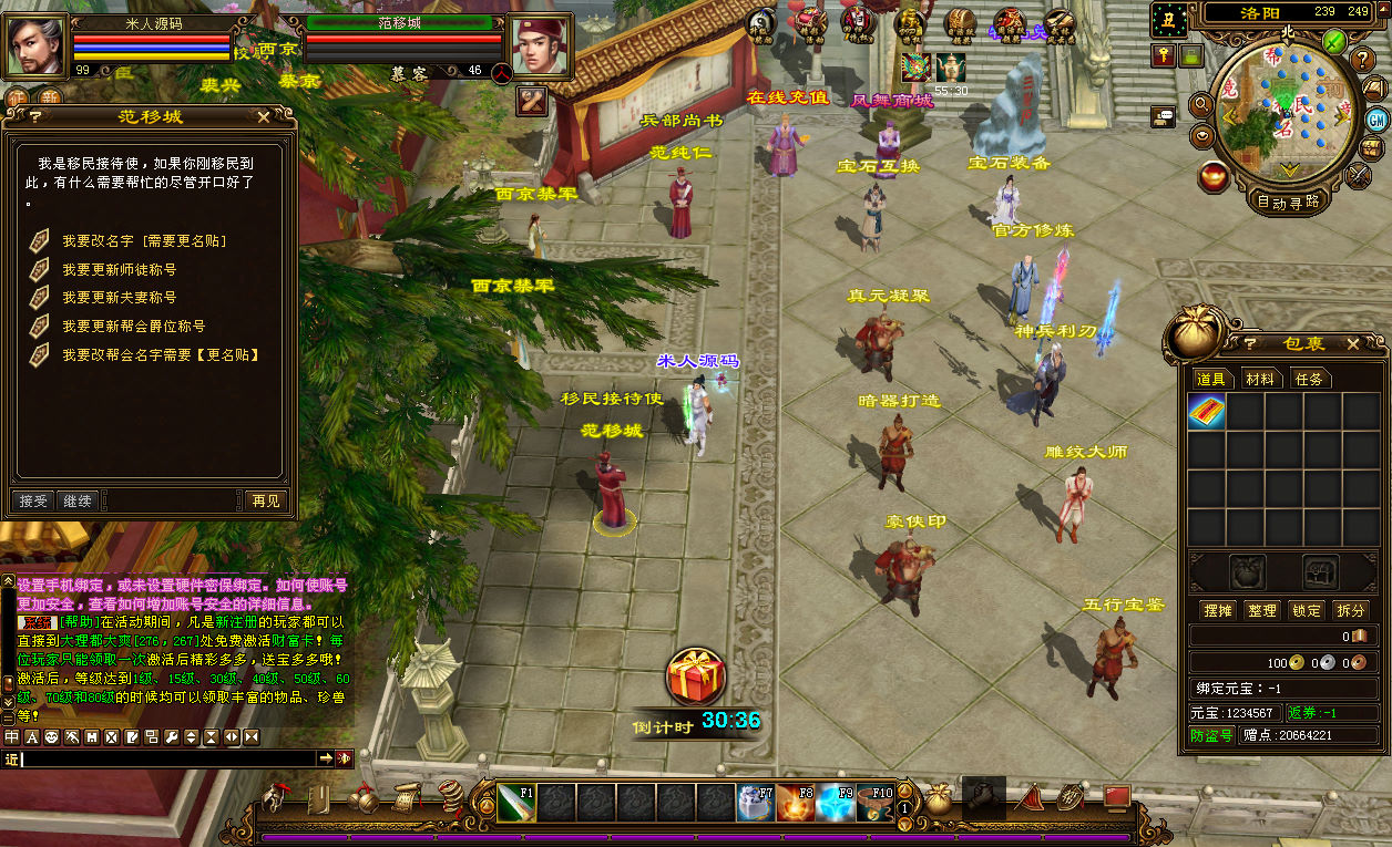 下面我们来测试下游戏里的功能看看。好了,其他功能就自行测试吧。更多的游戏资源可以访问www.MiR6.com下载,我们每款游戏资源均单独制作了独立的视频架设教程,让小白也可以快速上手游戏架设,快来体验自己做GM的乐趣吧!