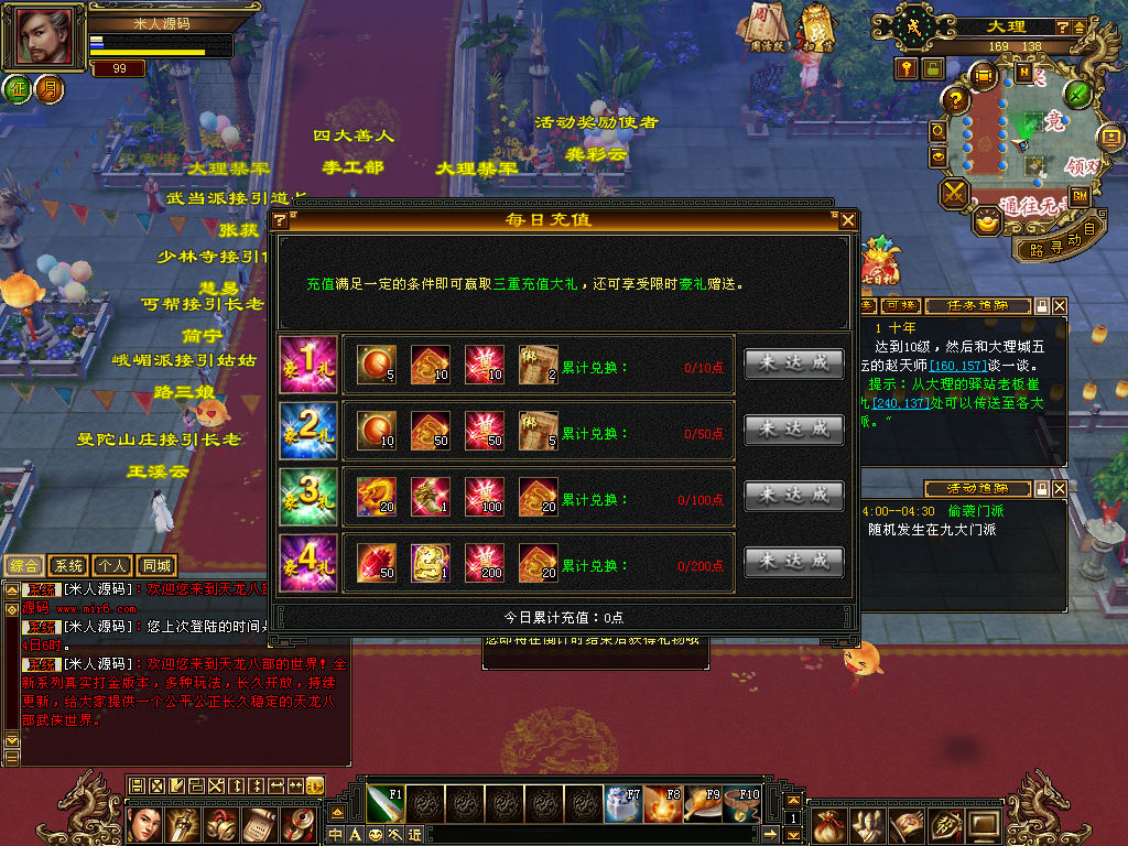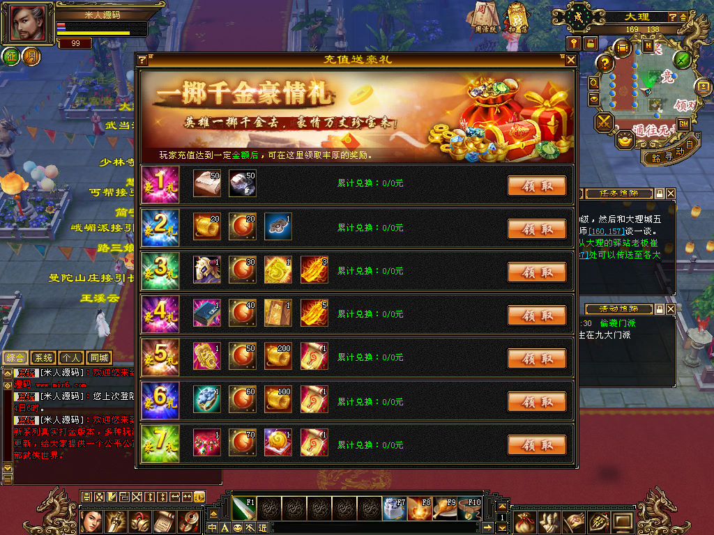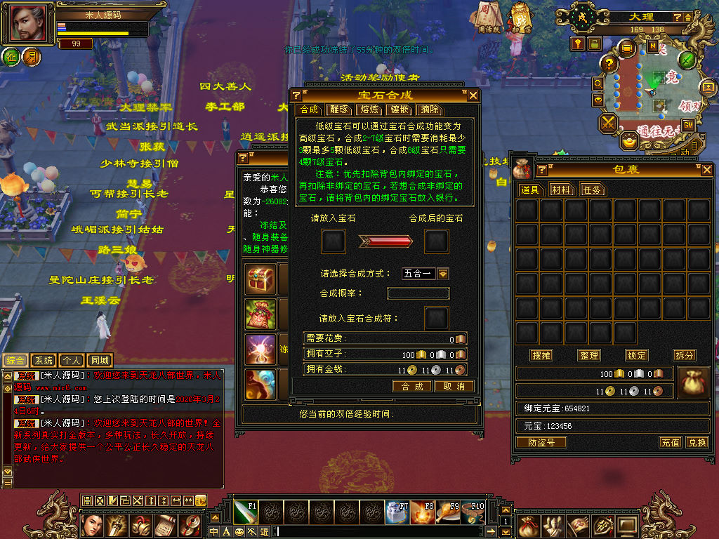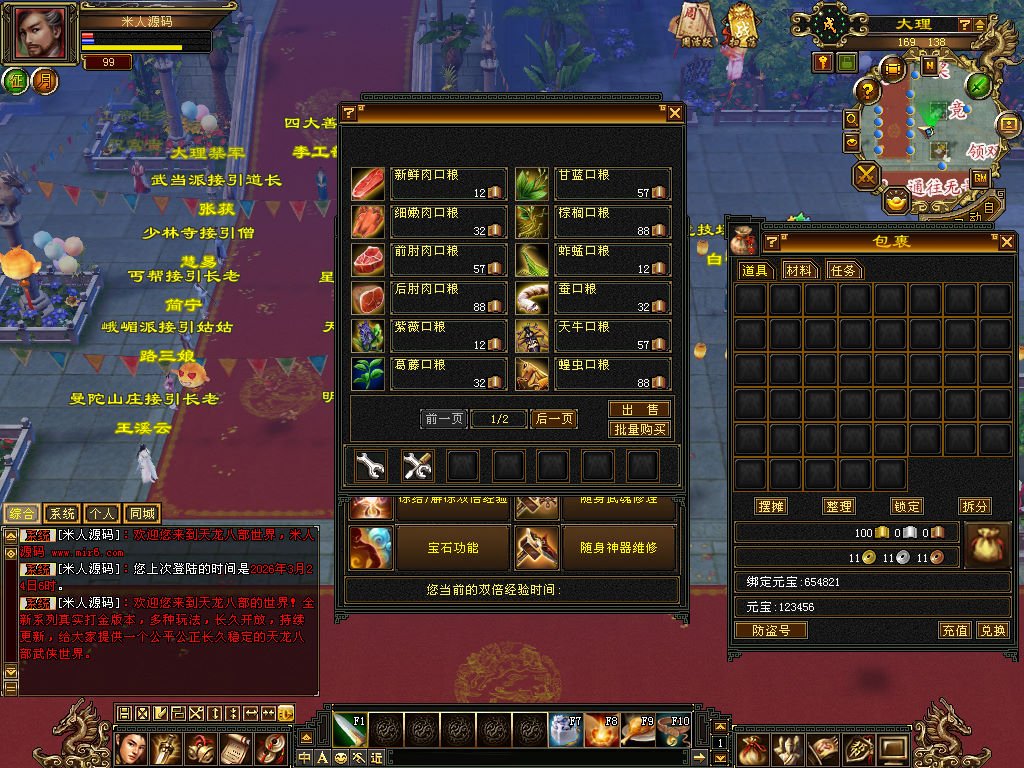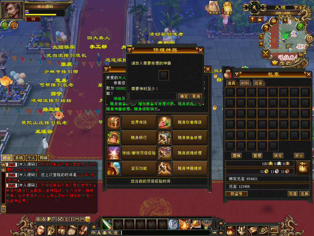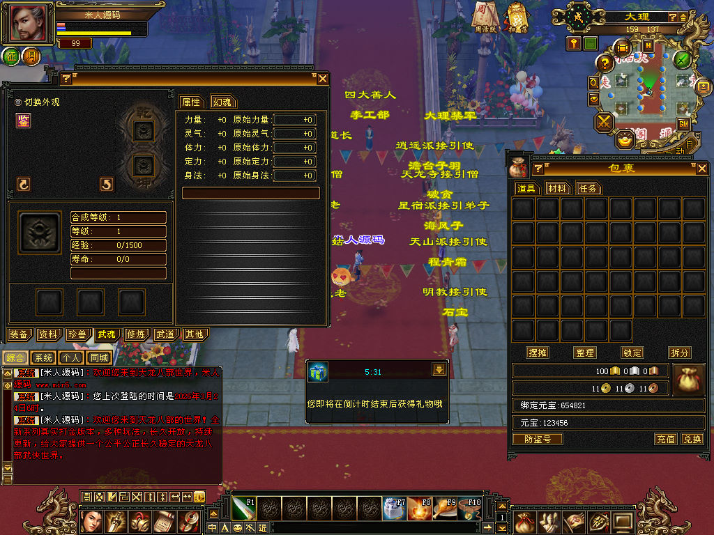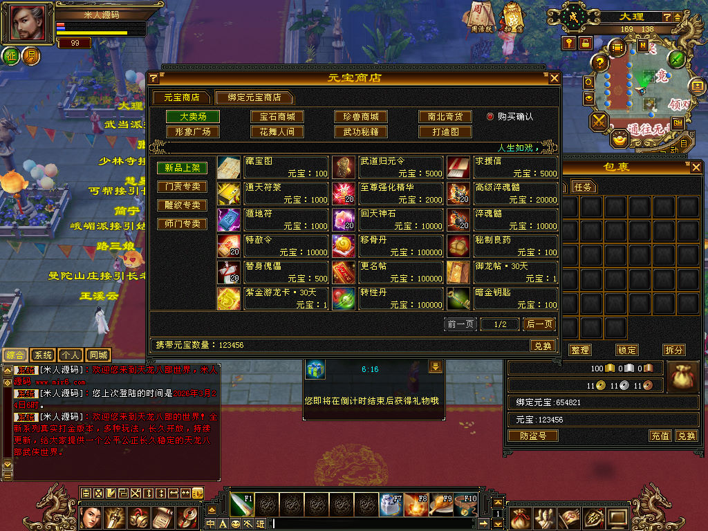 下面我们来测试下游戏里的功能看看。好了,其他功能就自行测试吧。更多的游戏资源可以访问www.MiR6.com下载,我们每款游戏资源均单独制作了独立的视频架设教程,让小白也可以快速上手游戏架设,快来体验自己做GM的乐趣吧!
