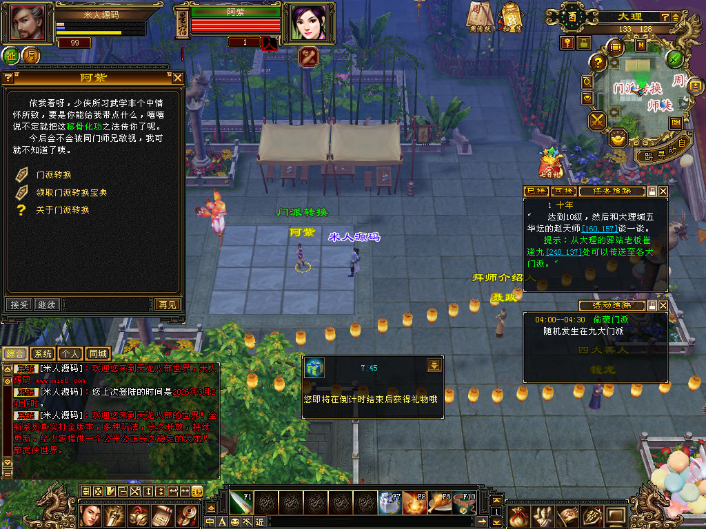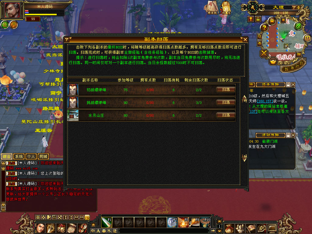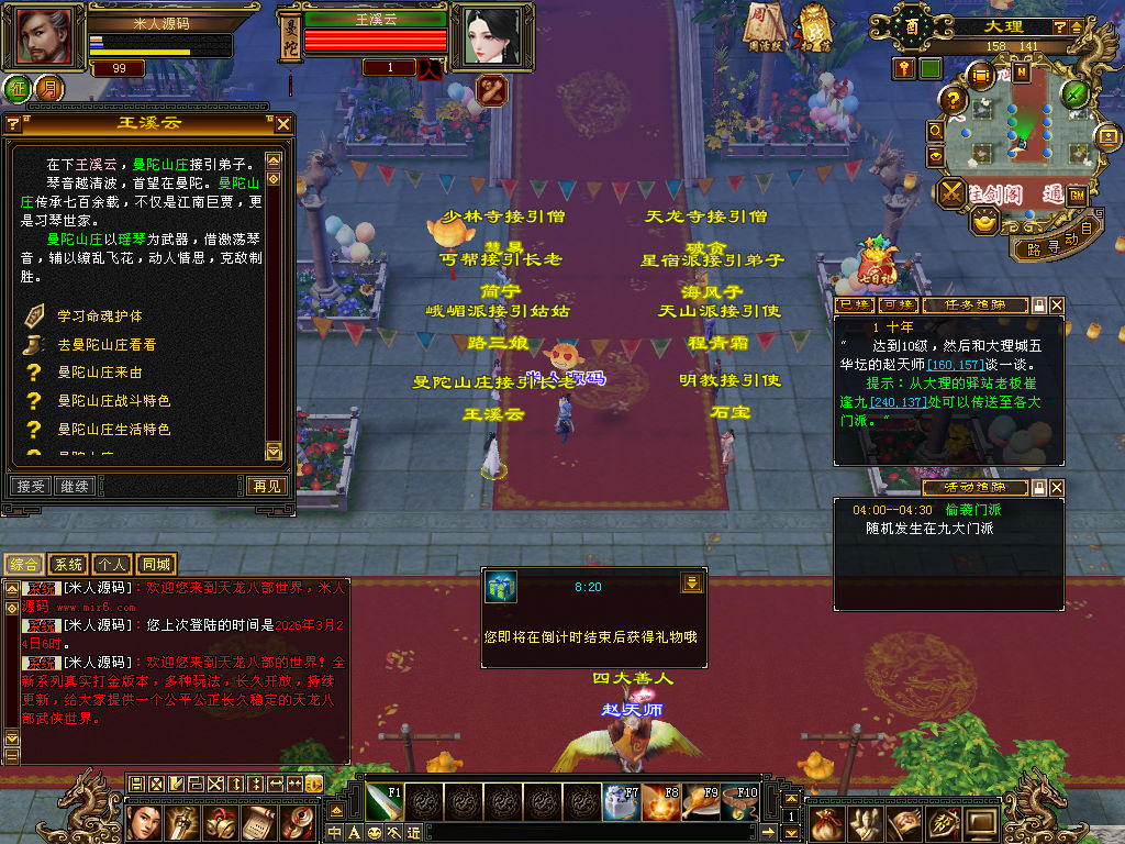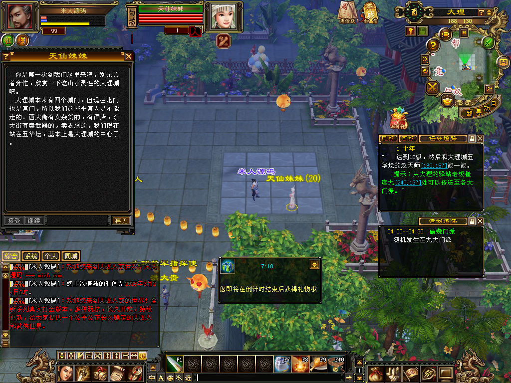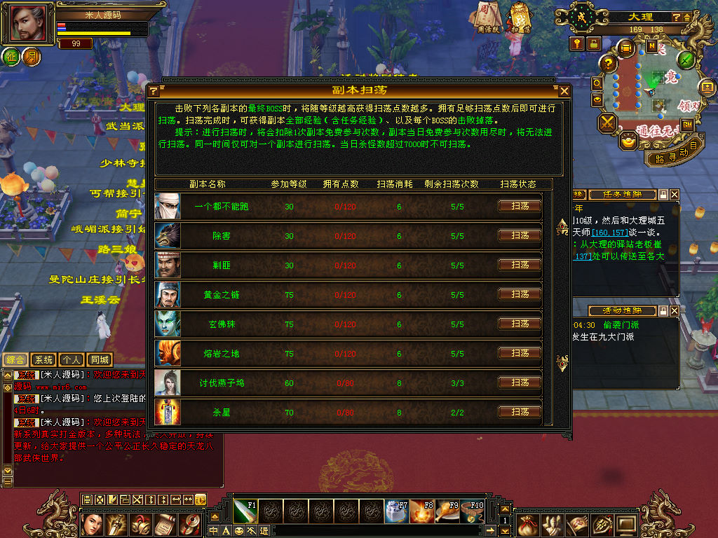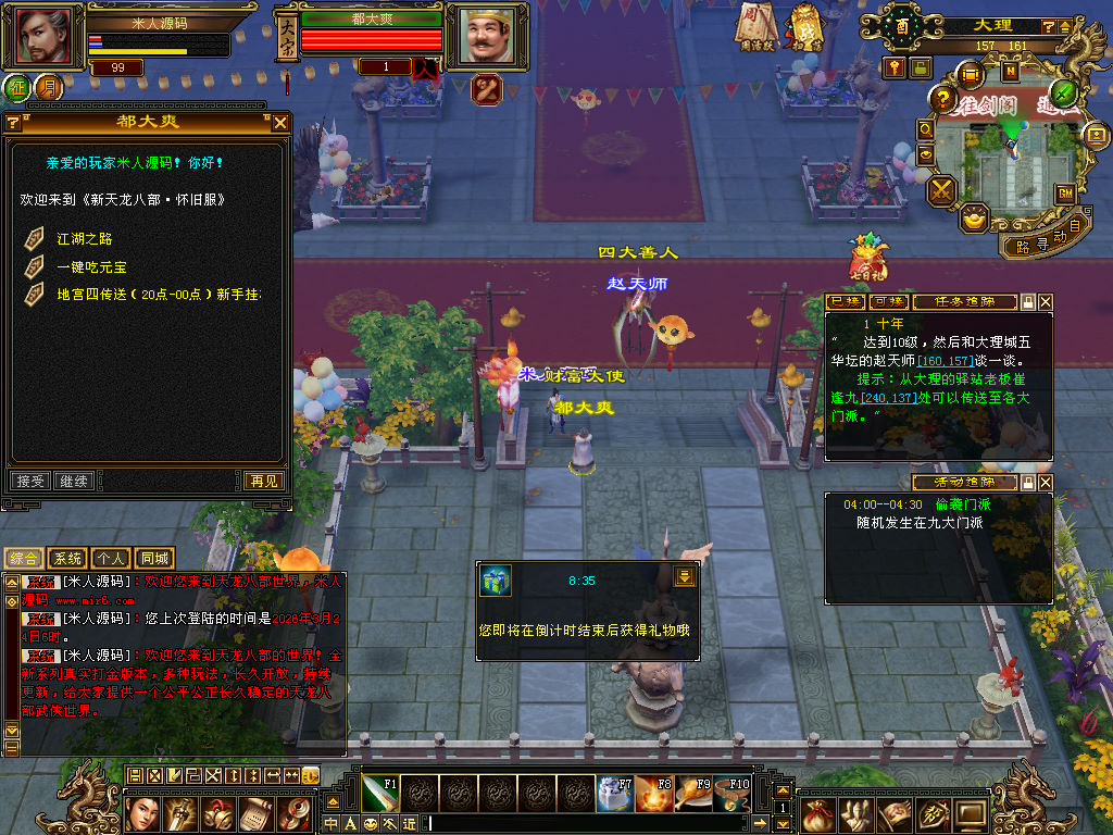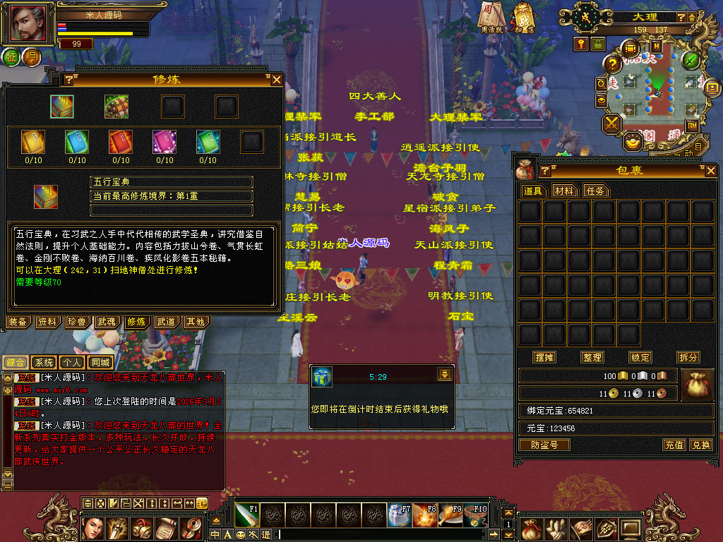下面我们来测试下游戏里的功能看看。好了,其他功能就自行测试吧。更多的游戏资源可以访问www.MiR6.com下载,我们每款游戏资源均单独制作了独立的视频架设教程,让小白也可以快速上手游戏架设,快来体验自己做GM的乐趣吧!