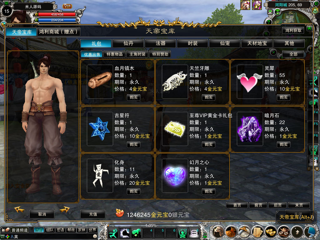我们试试GM工具功能。充值后,大退重新进入游戏即可到账。