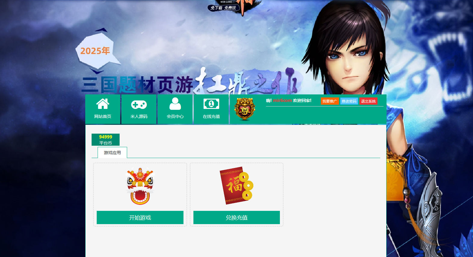 2.网页登陆账号,在开始游戏右侧有一个 【兑换充值】按钮。点击后,先选择分区,在选择自己的角色,在输入需要使用多少平台币来兑换元宝。之后点确认兑换即可。